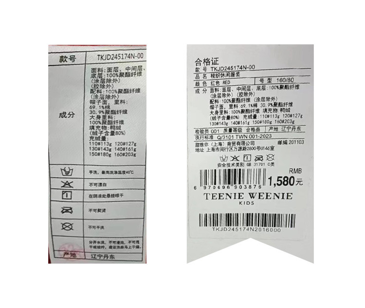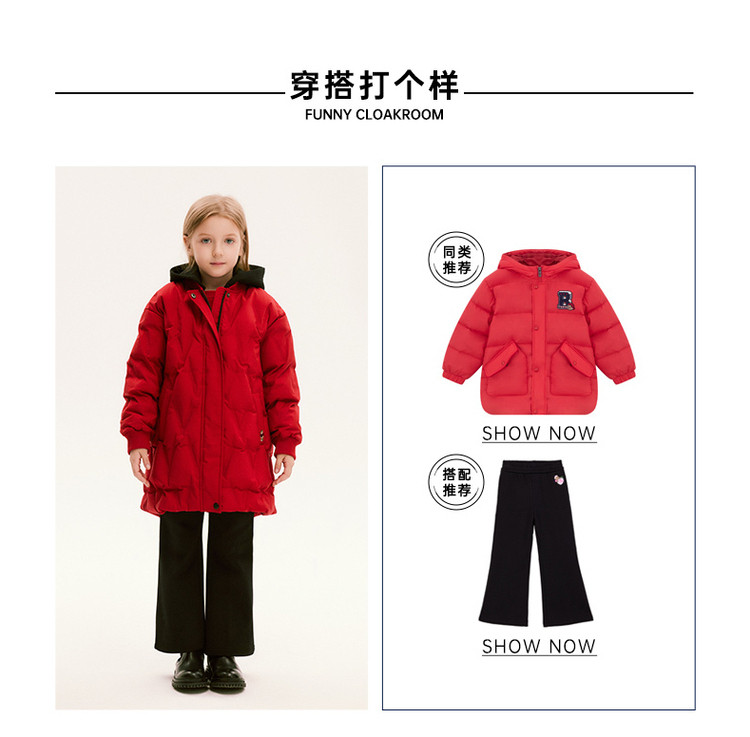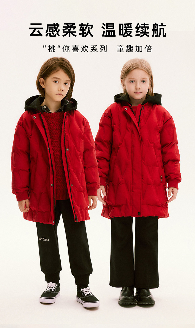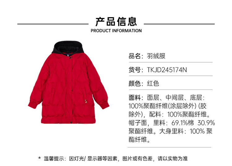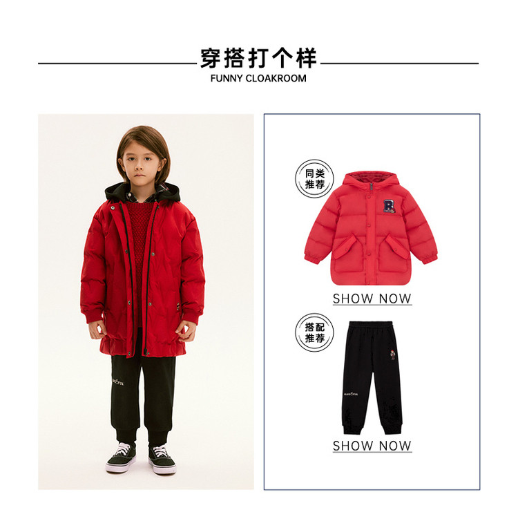 商品名称:【中长款连帽羽绒】小熊童装红色春季款男女童连帽羽绒服 806913