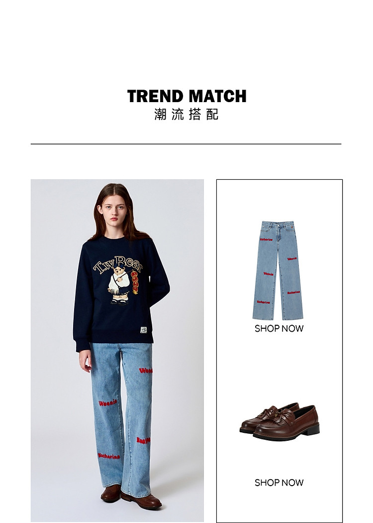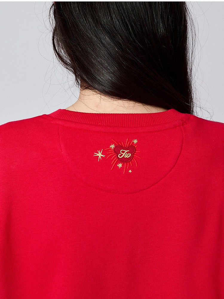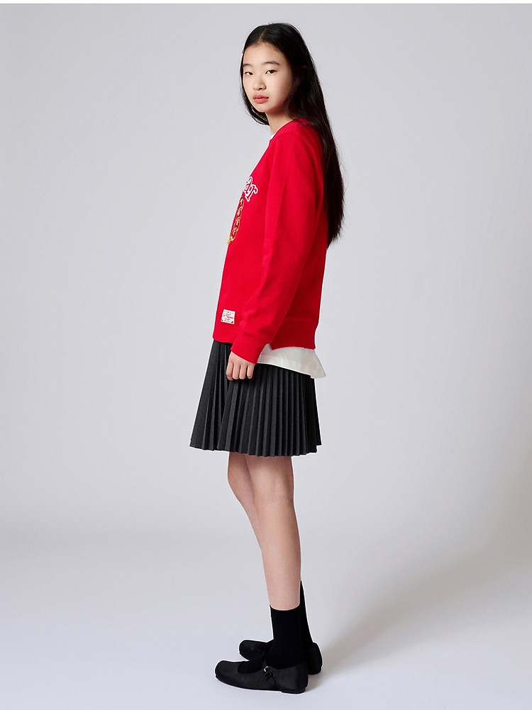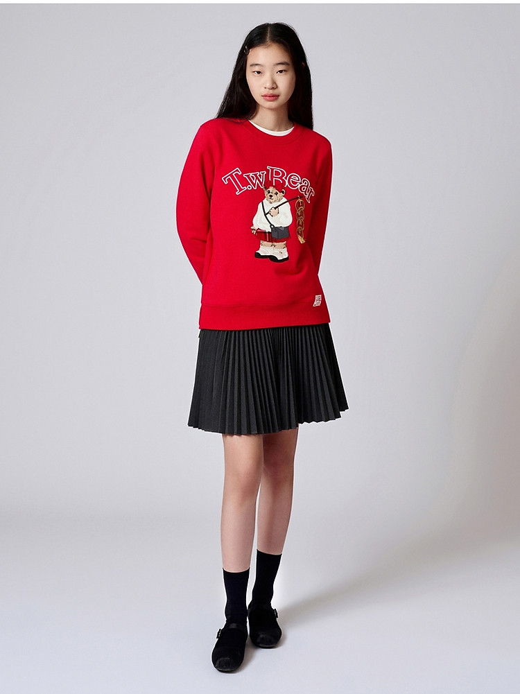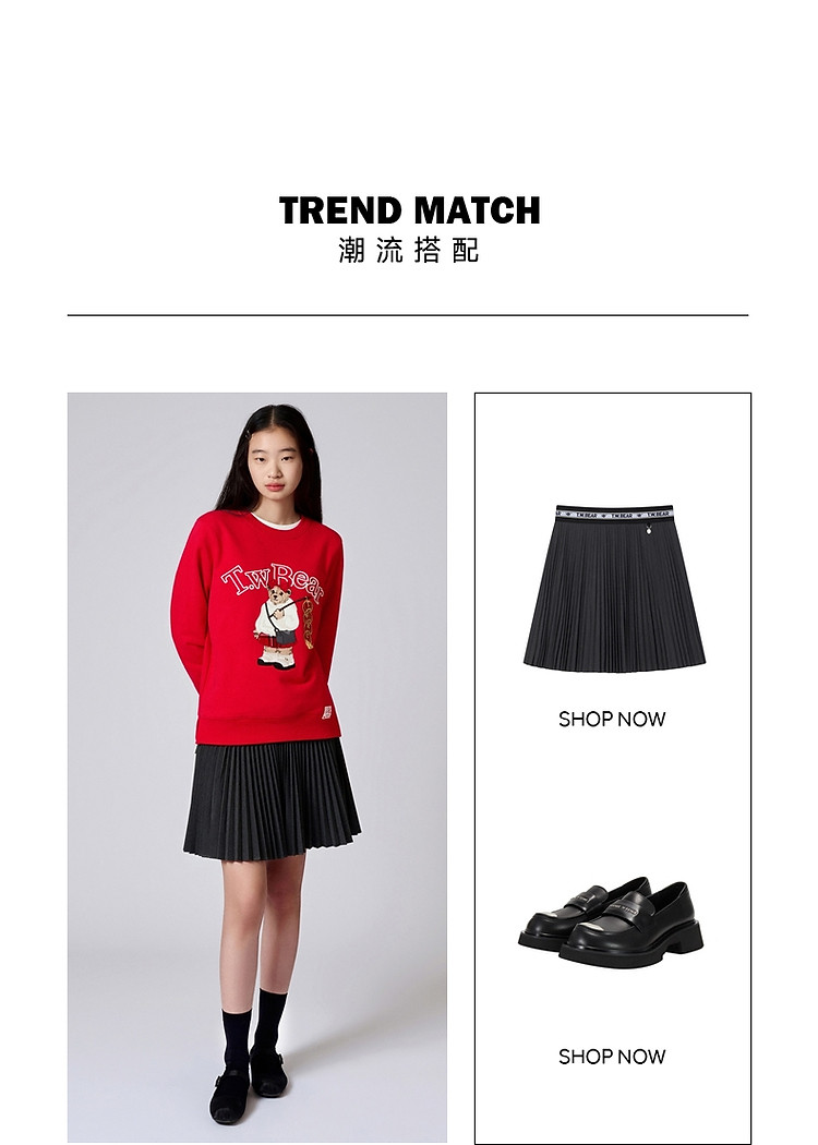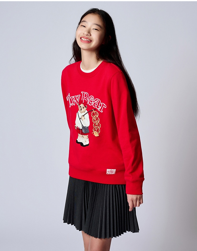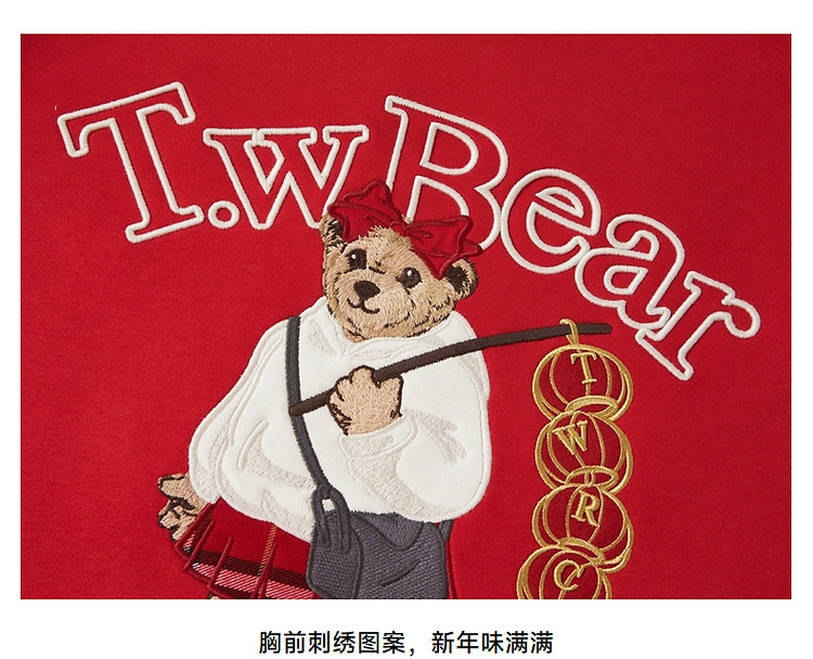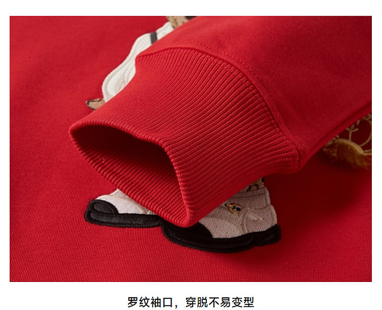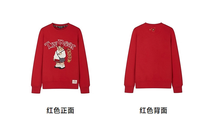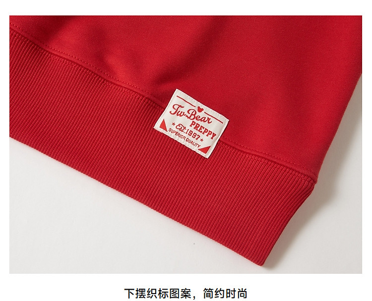 商品名称:小熊春秋款红色圆领套头卫衣宽松韩版上衣女 742401
