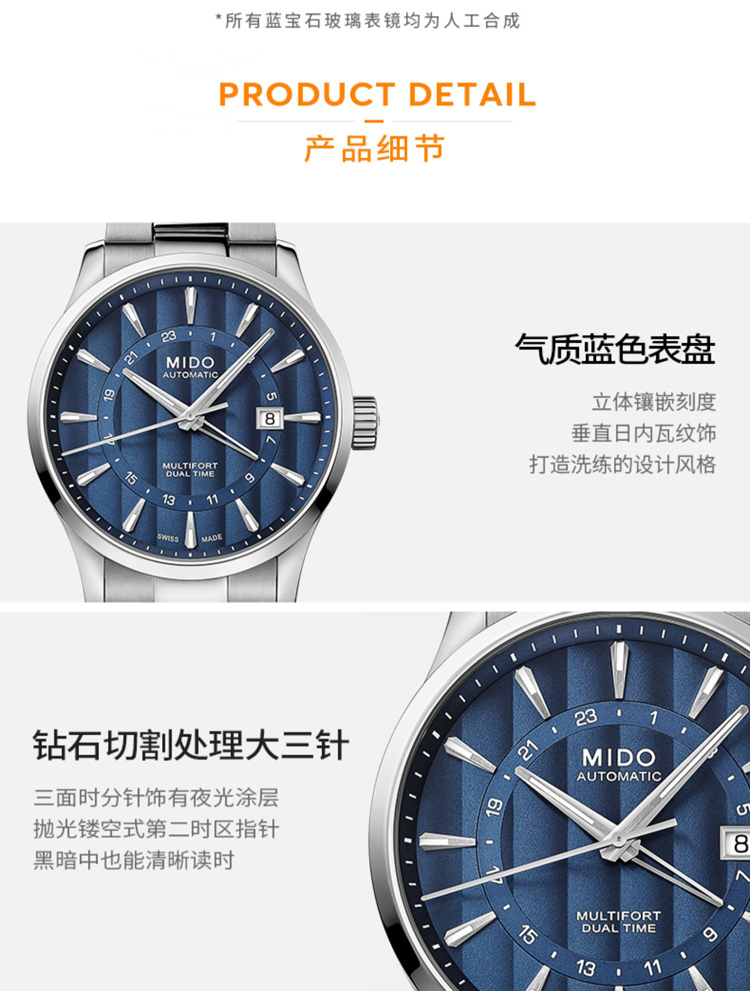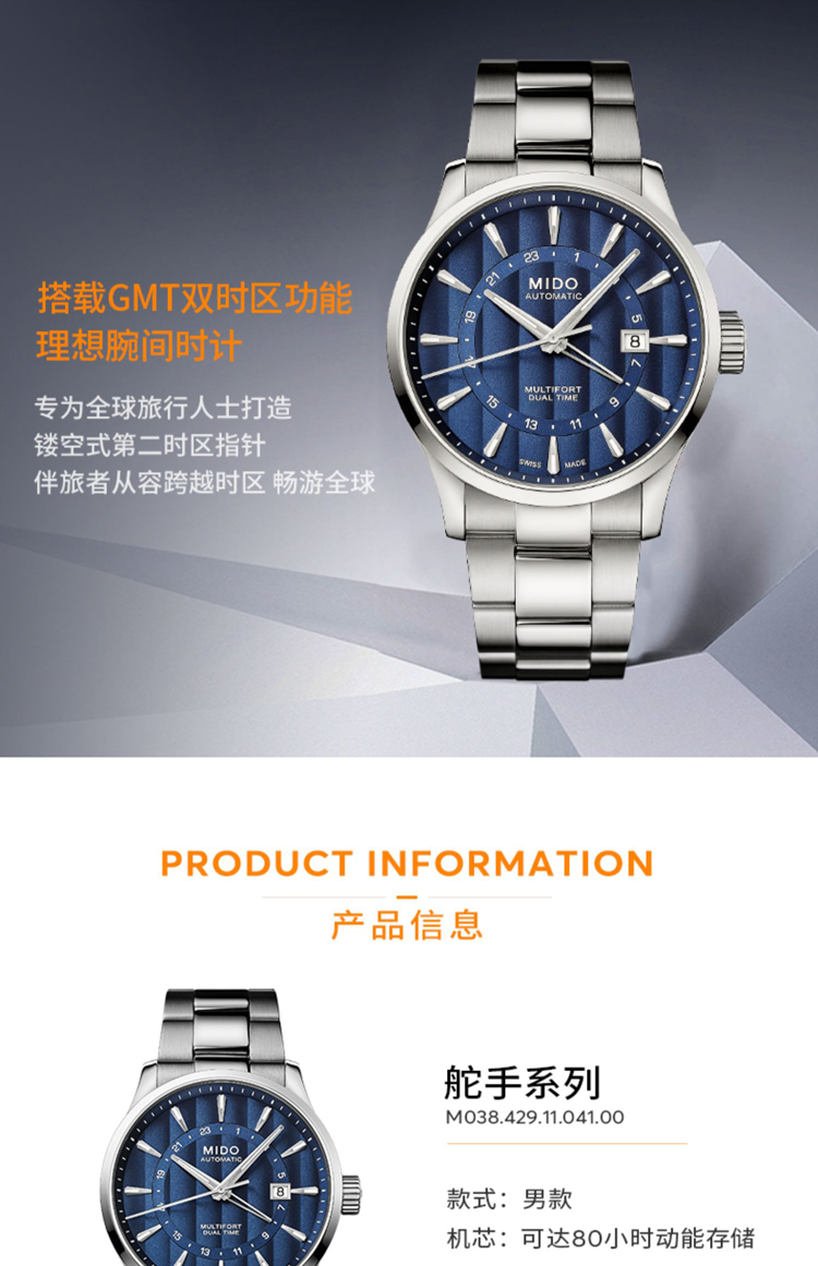 商品名称:MIDO美度 舵手系列GMT双时区全自动机械男士腕表 M038.429.11.041.00