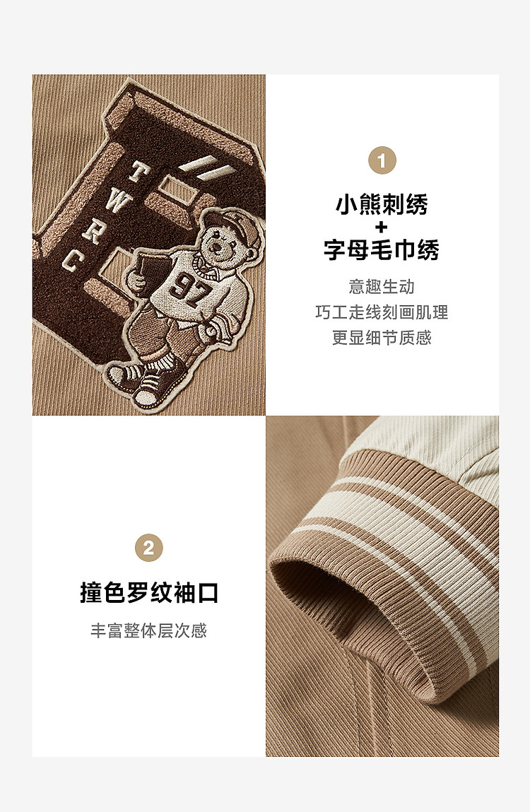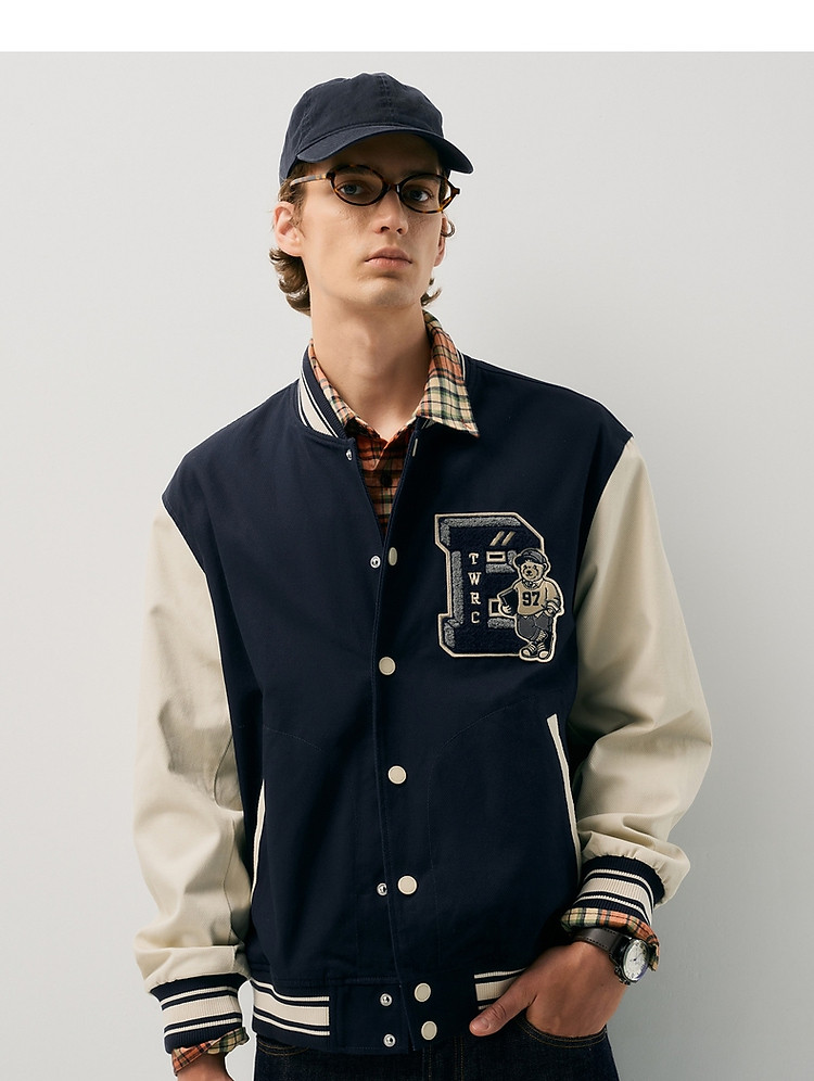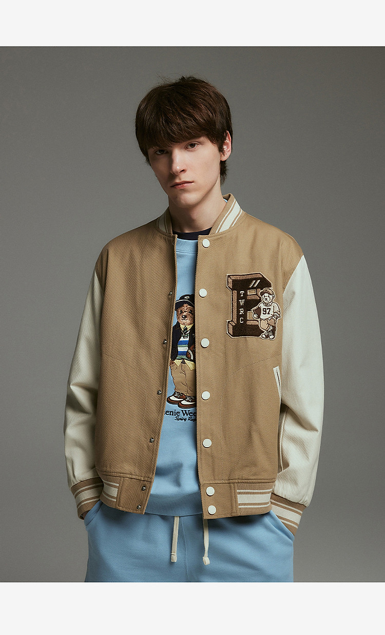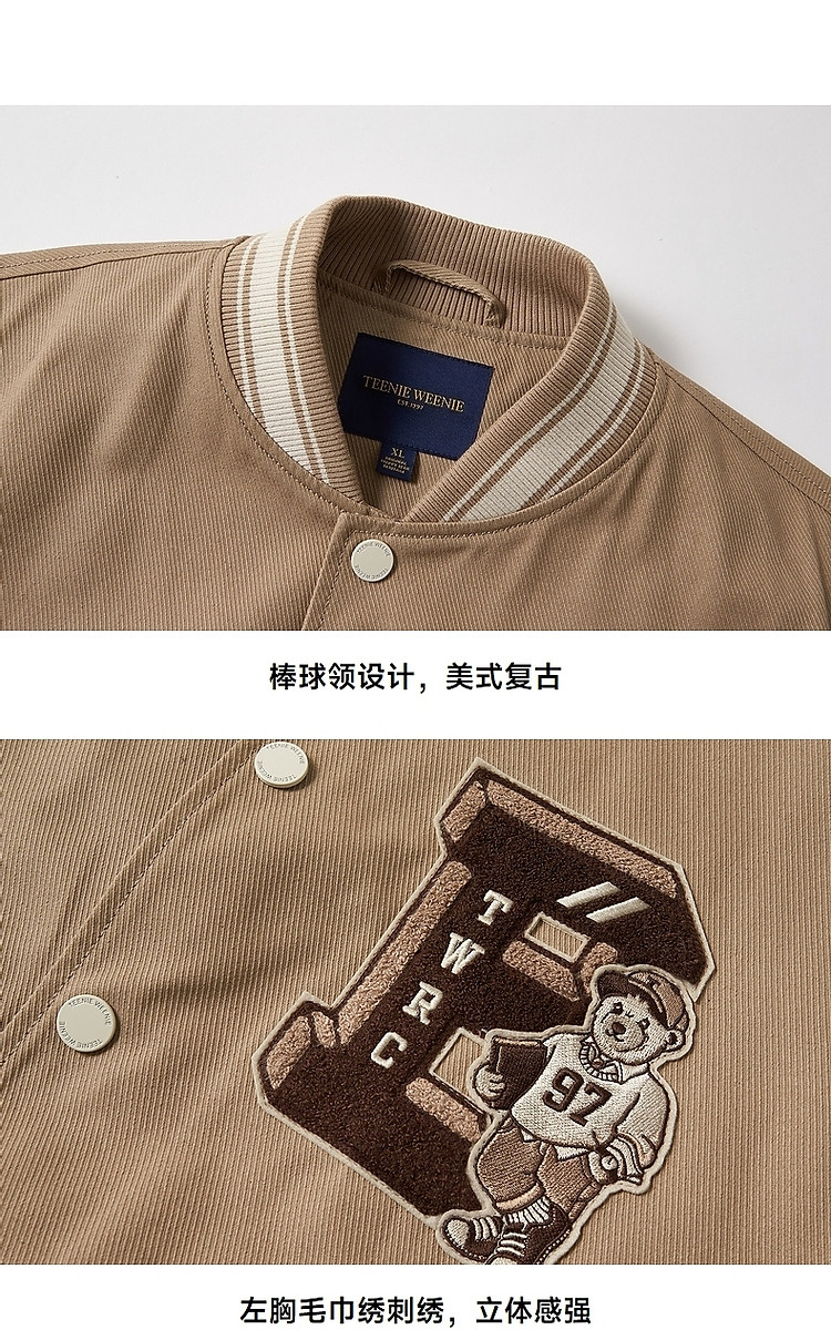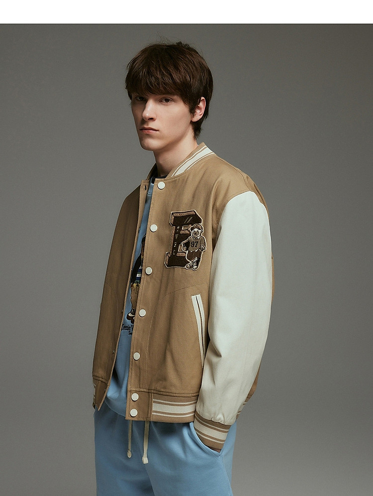 小熊男装简约舒适时尚潮流棒球服秋装美式学院外套休闲夹克男 306177