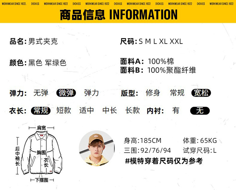 商品名称:Dickies男式抽绳多口袋拼接休闲外套 DK010103 471504