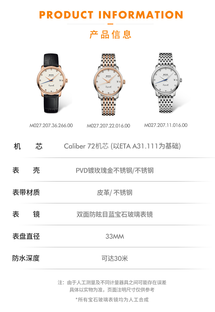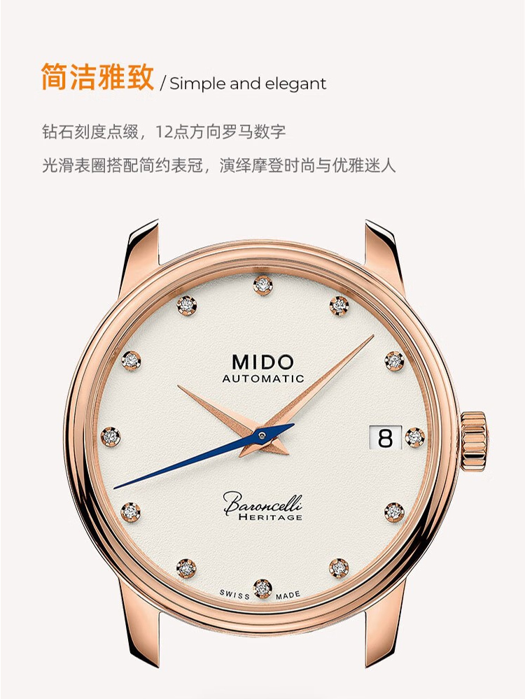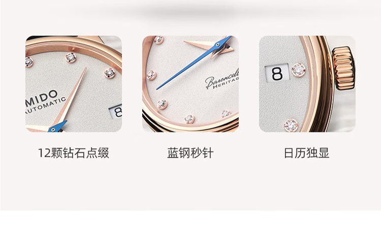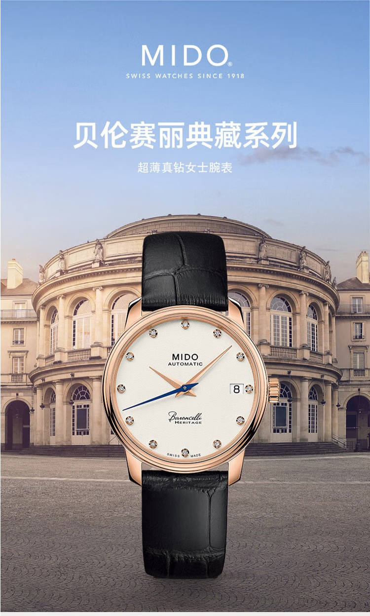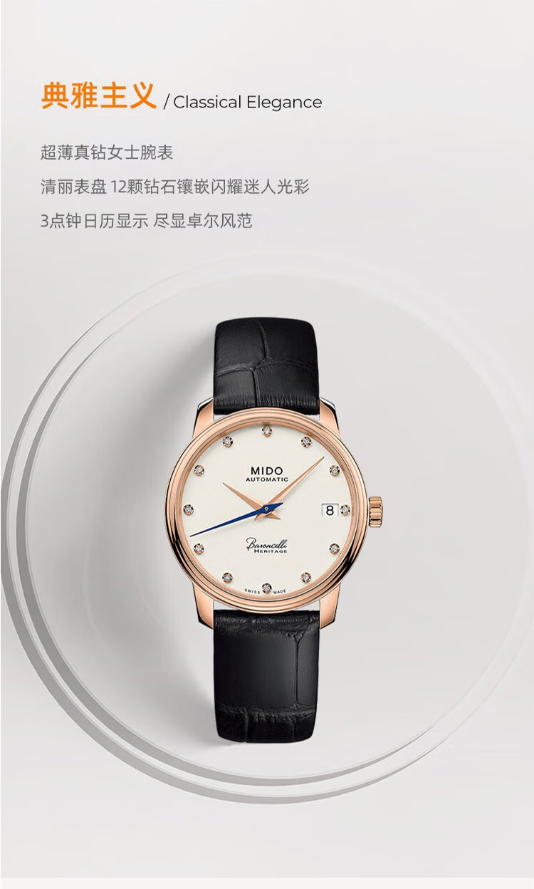 商品名称:MIDO美度 贝伦赛丽典藏系列超薄真钻女士腕表 M027.207.22.016.00