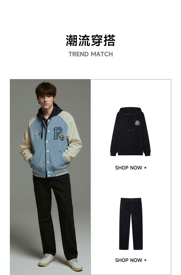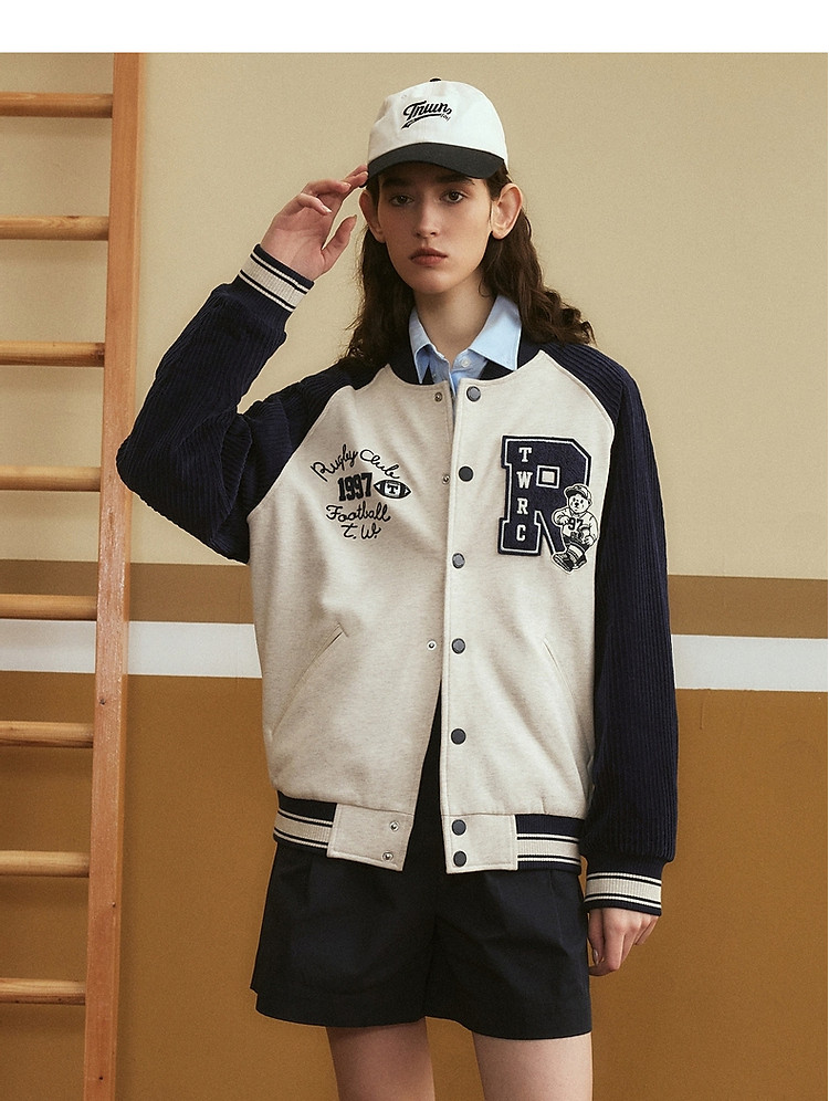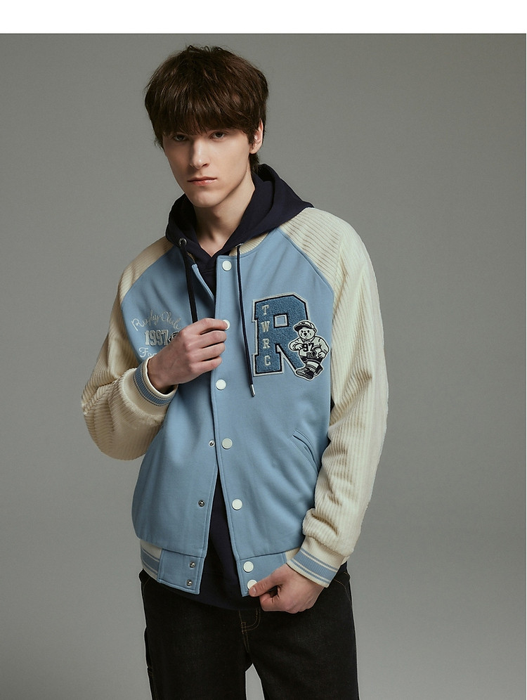 商品名称:小熊男装休闲简约时尚棒球服夹克秋装美式学院灯芯绒棉服外套 414721