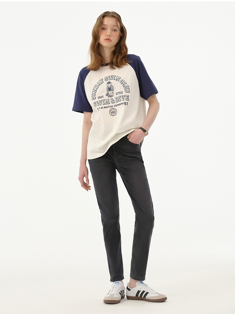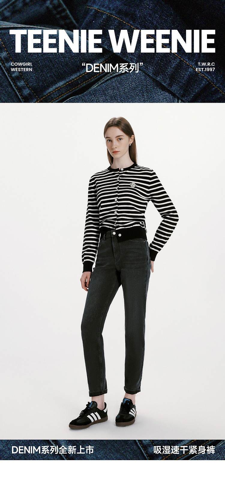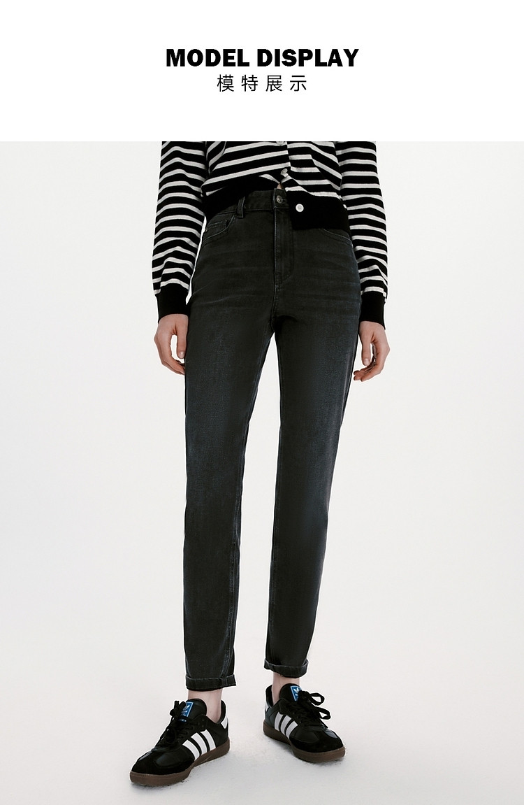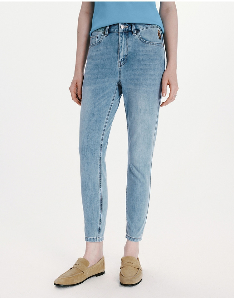 小熊复古水洗修身小脚裤牛仔裤长裤 373249