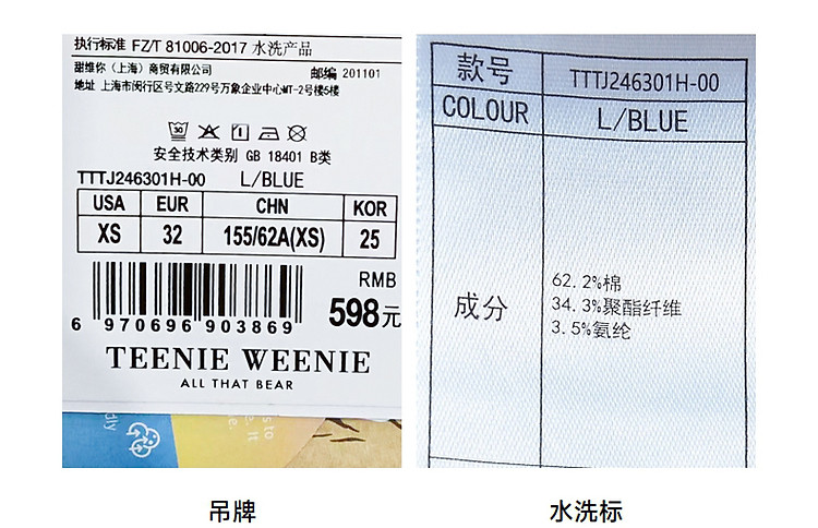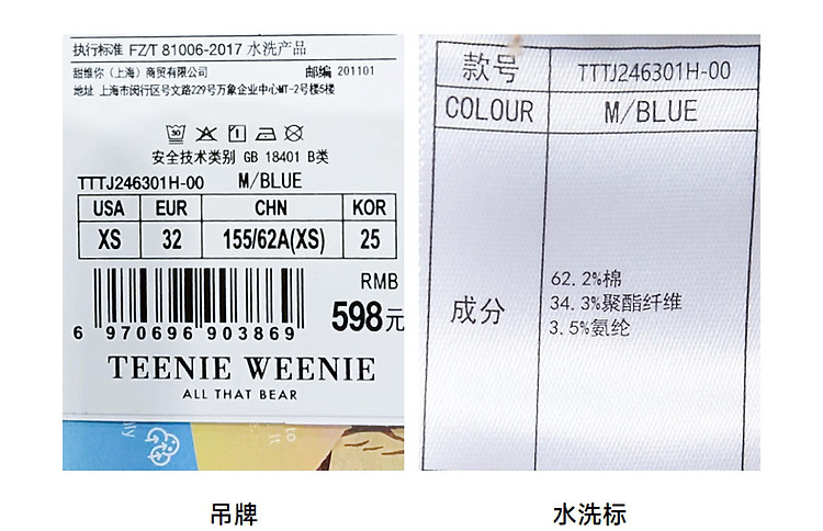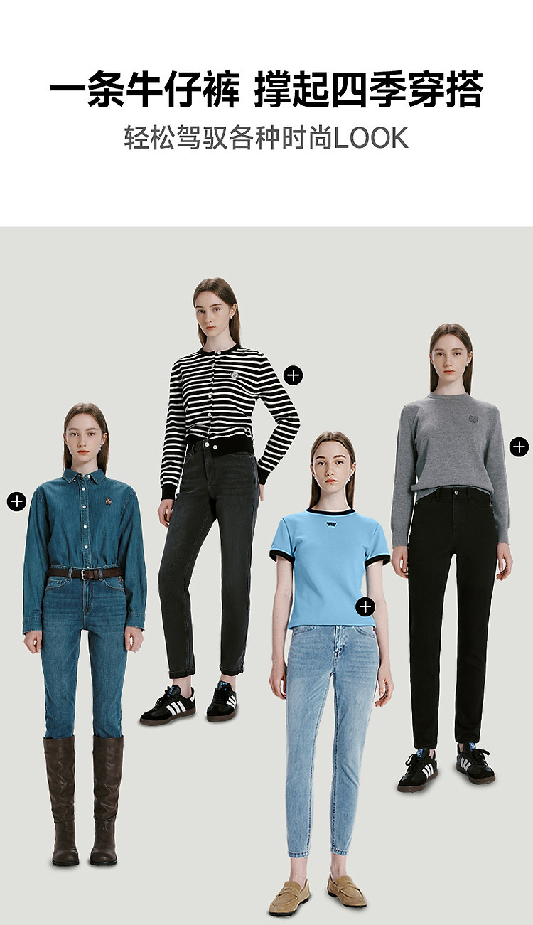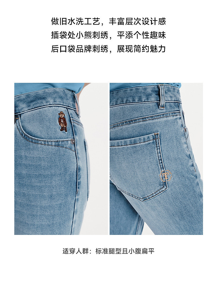 商品名称:小熊复古水洗修身小脚裤牛仔裤长裤 373249