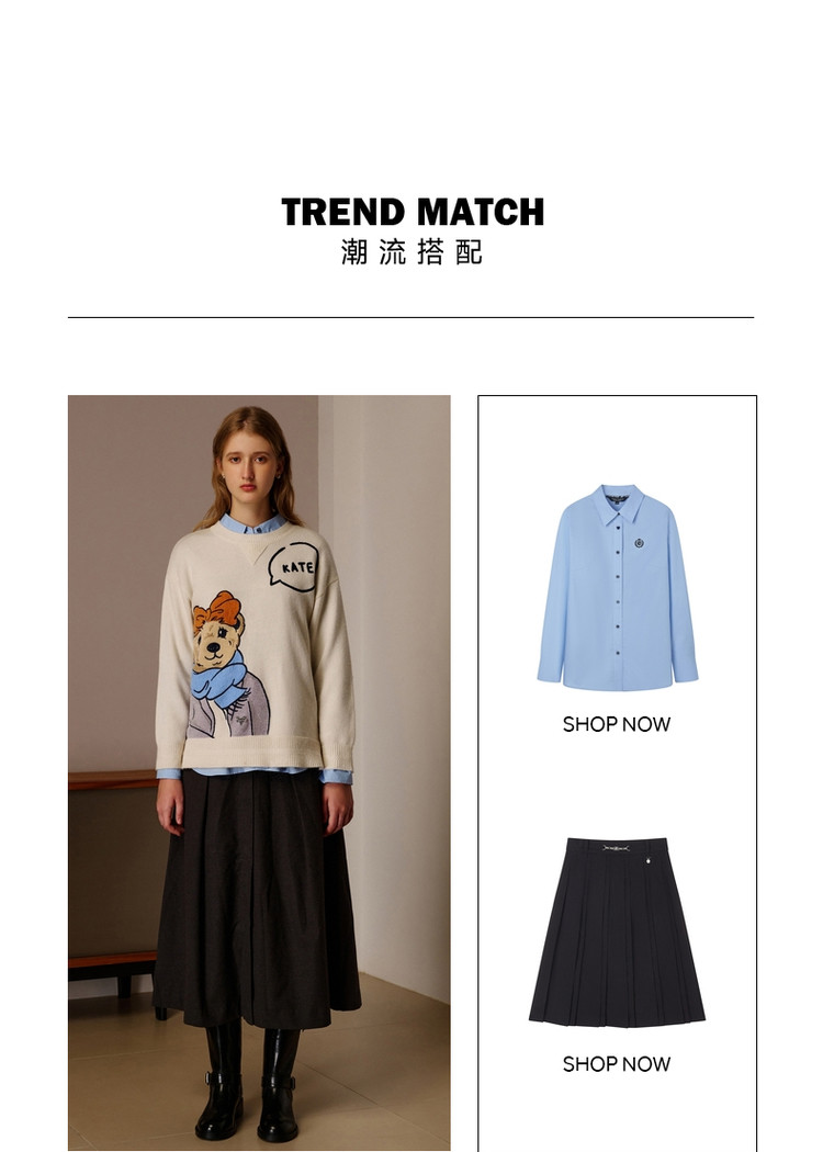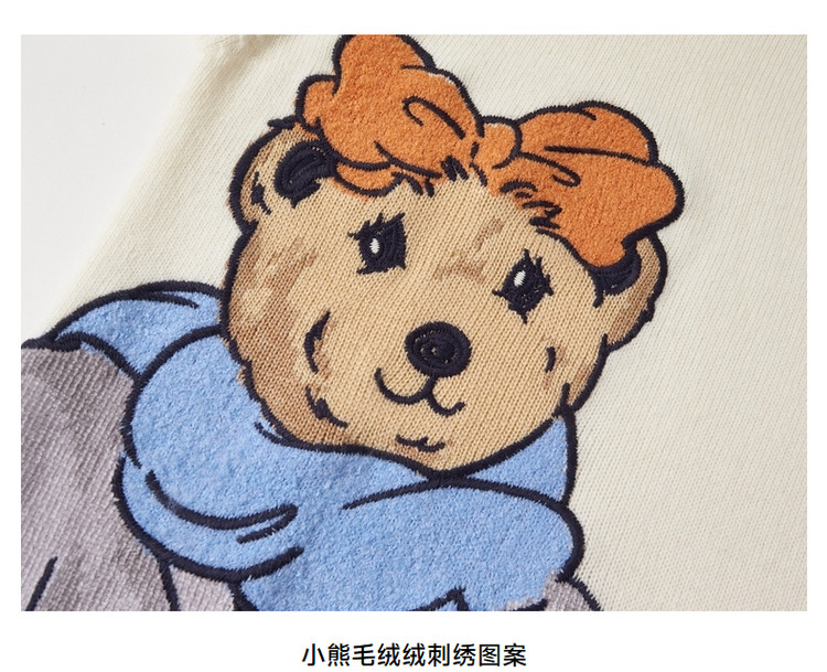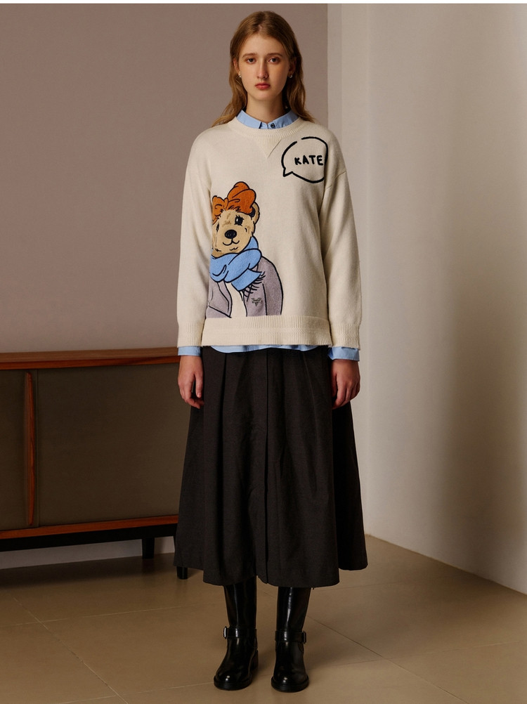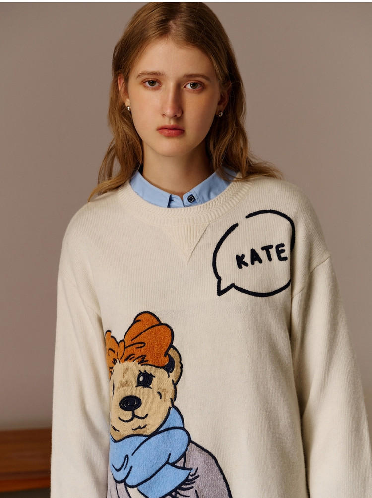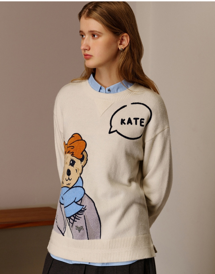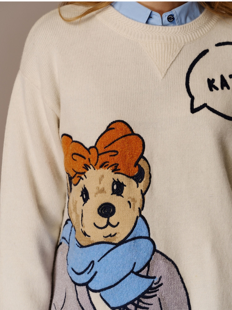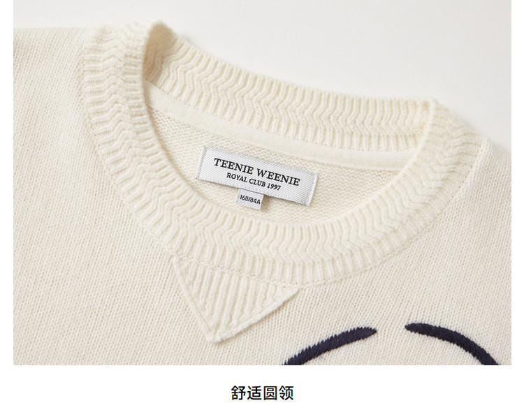 小熊春秋款提花套头白色毛衣针织衫小个子毛衫慵懒风 808897