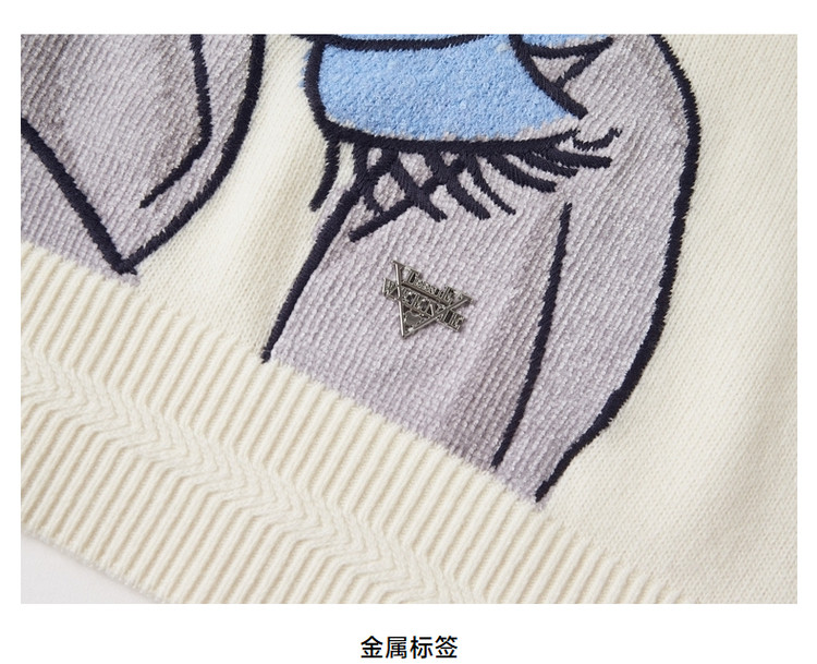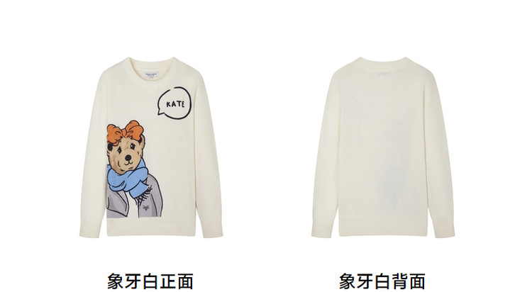 商品名称:小熊春秋款提花套头白色毛衣针织衫小个子毛衫慵懒风 808897