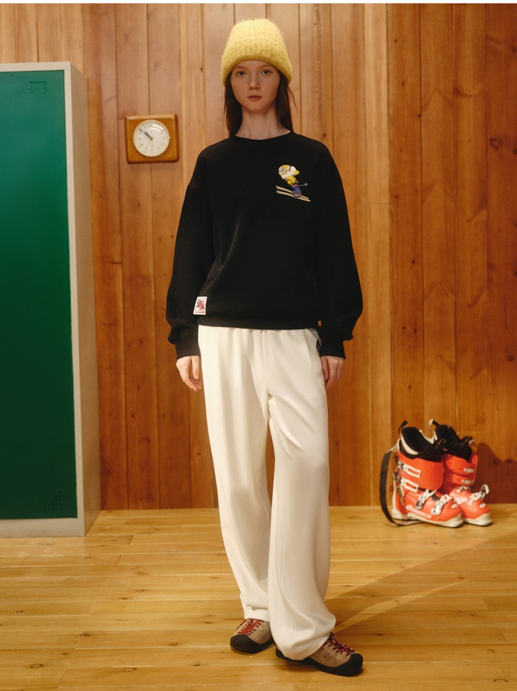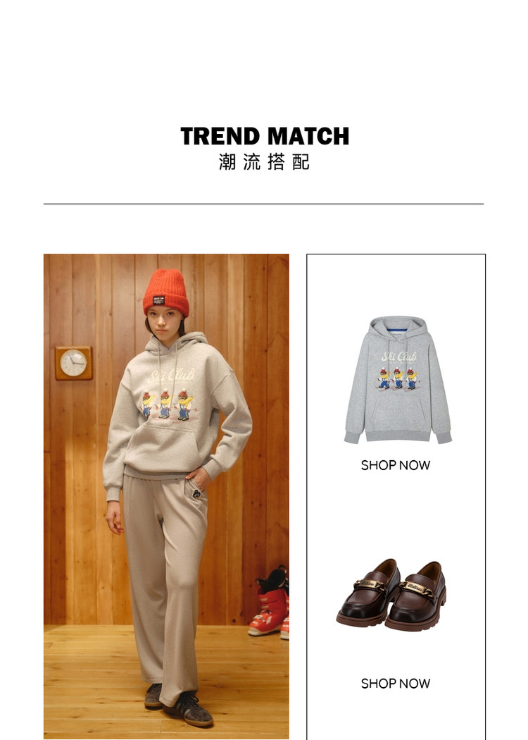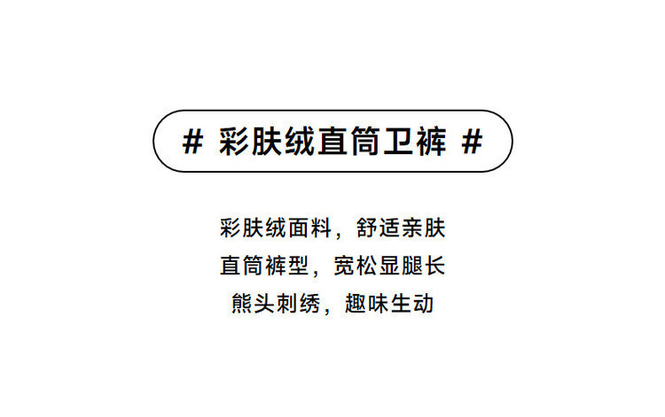 商品名称:小熊春秋款彩肤绒宽松直筒卫裤休闲裤绒感长裤女装保暖舒适 930177