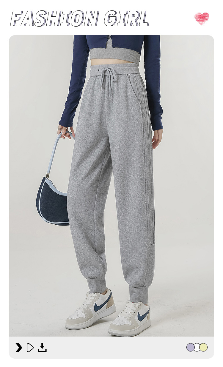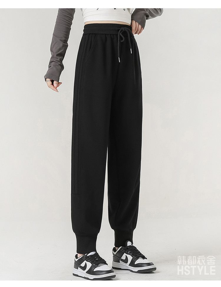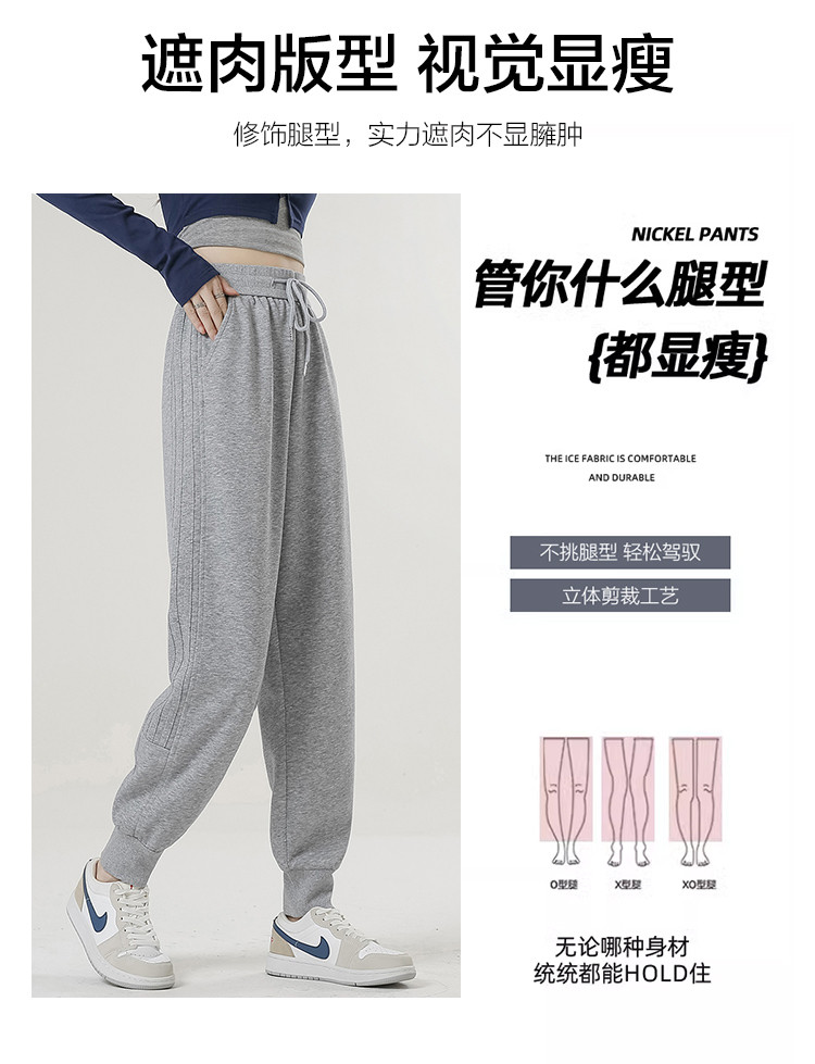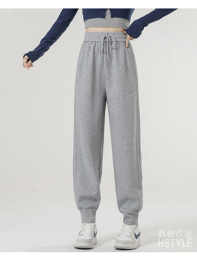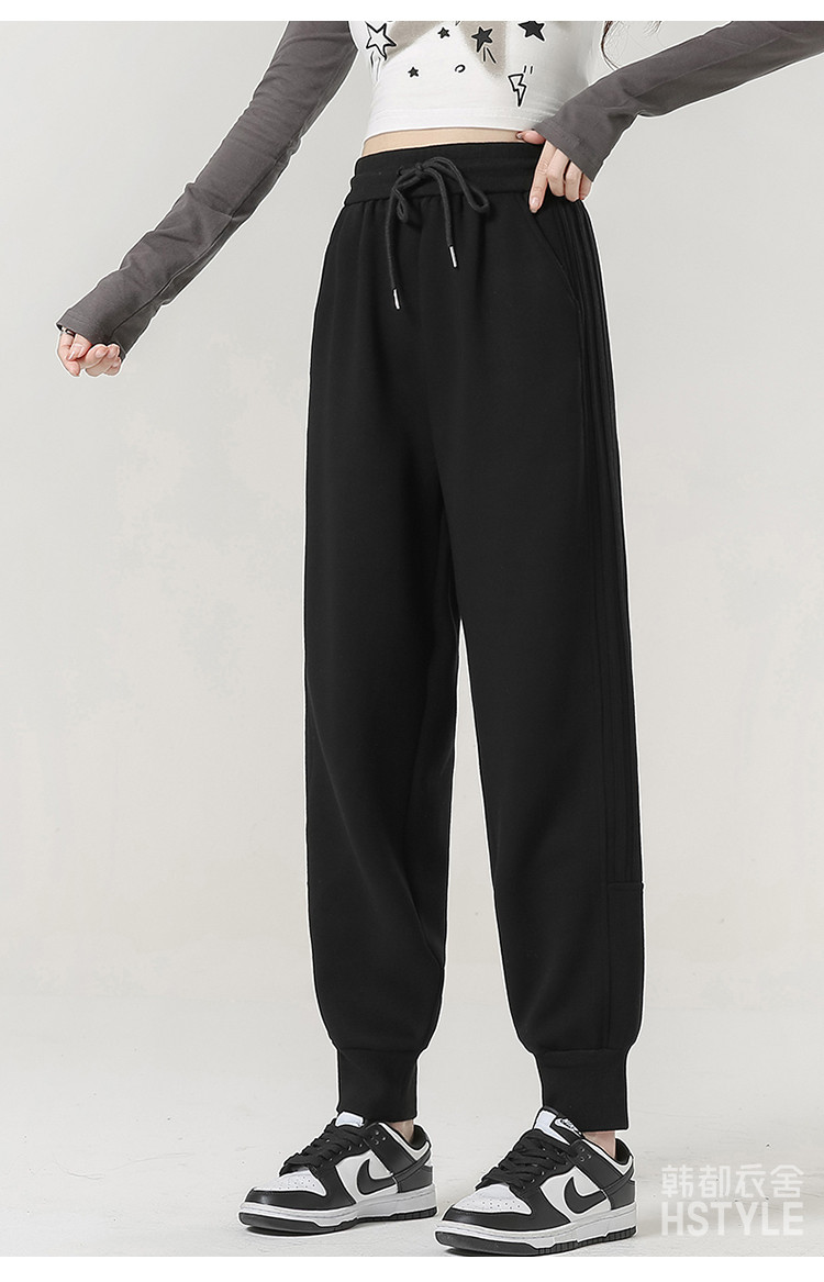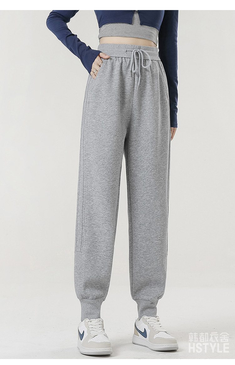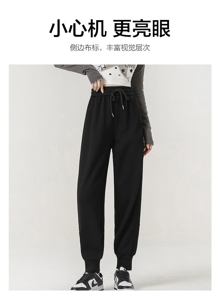 商品名称:春季款束脚裤女运动休闲裤抽绳设计松紧腰通勤显瘦侧拼卫裤女 056011