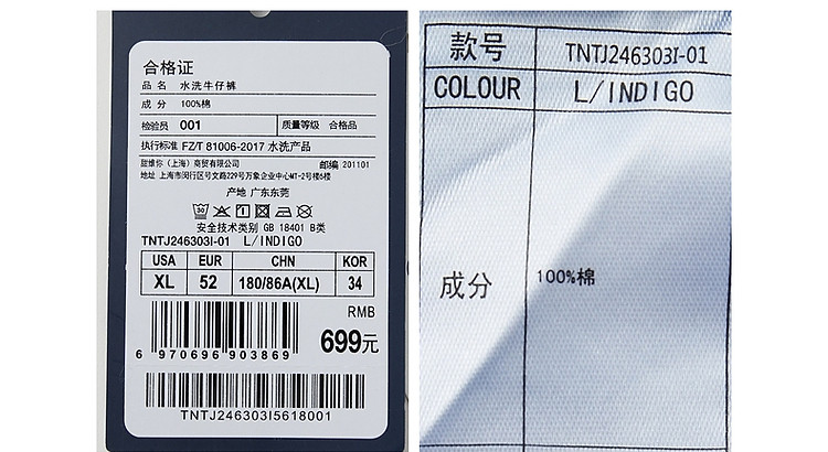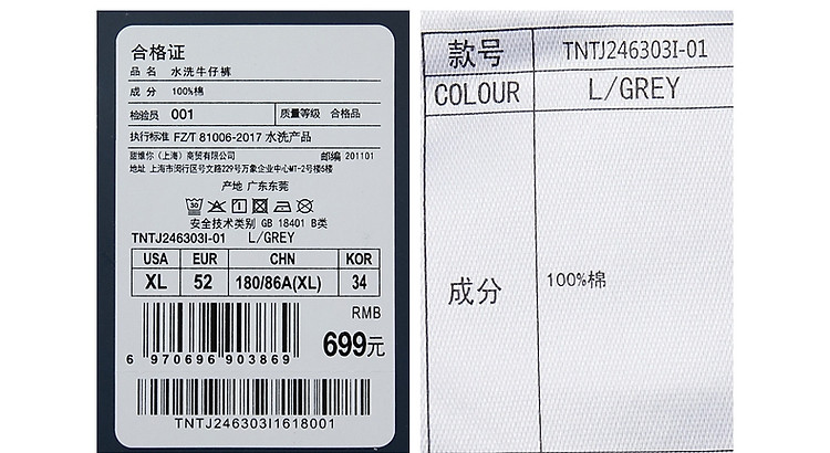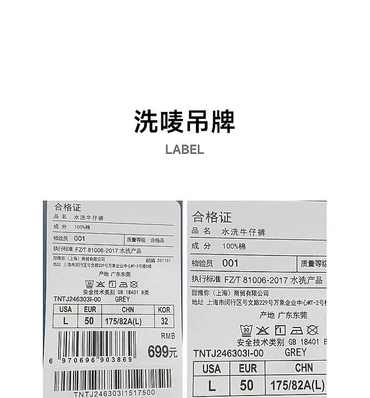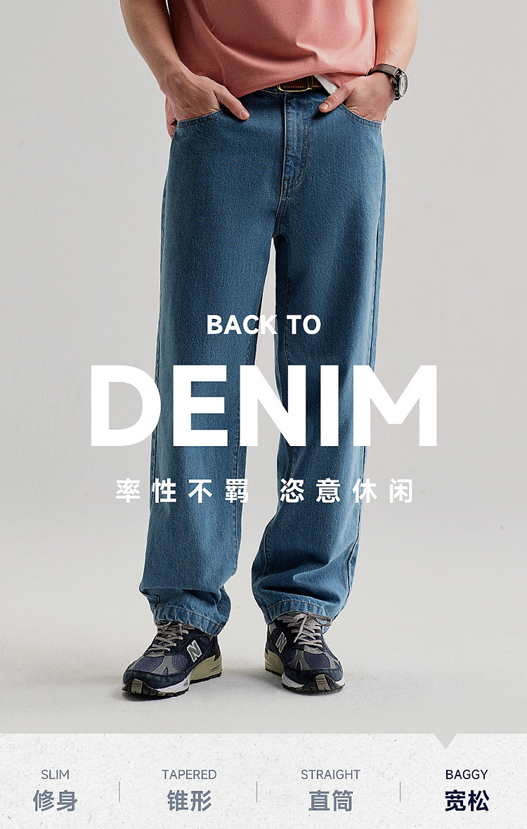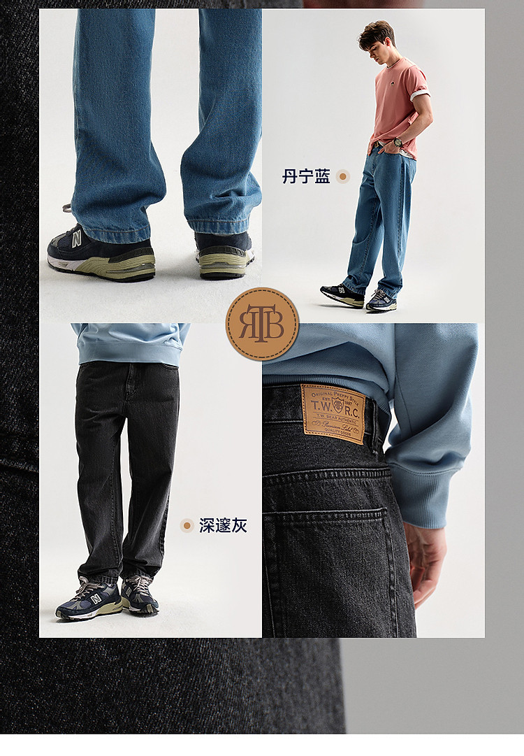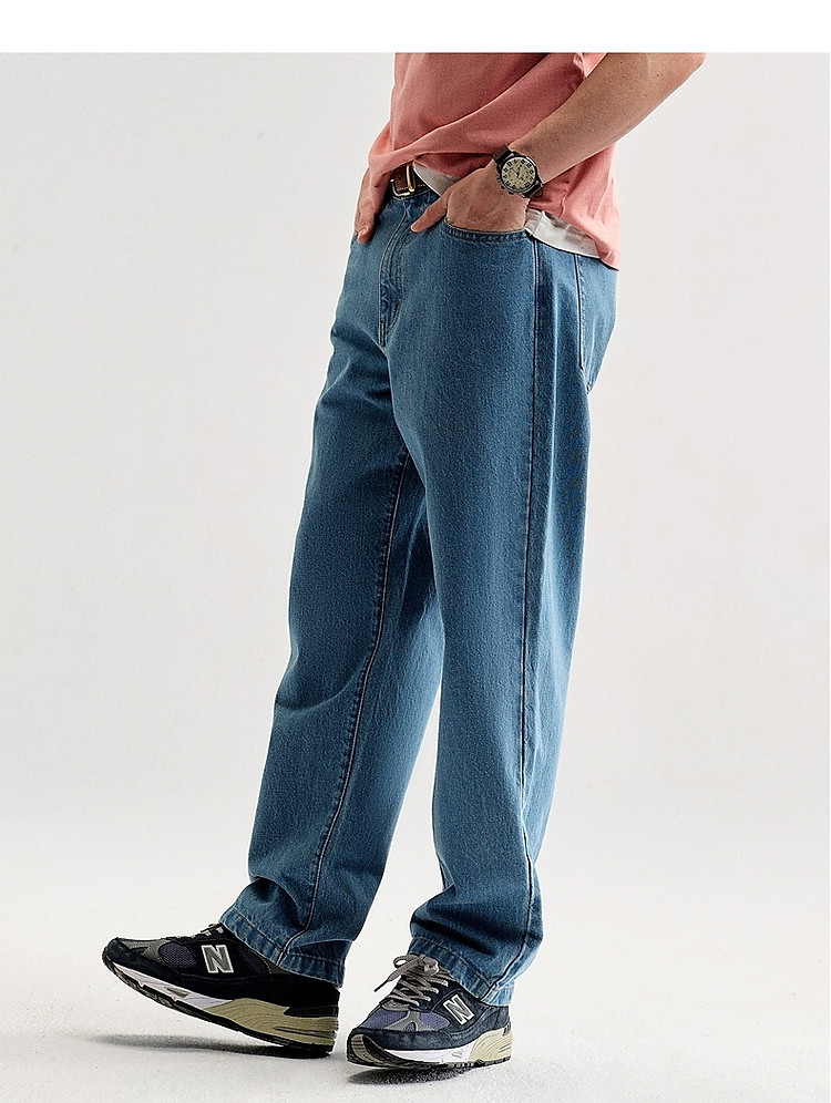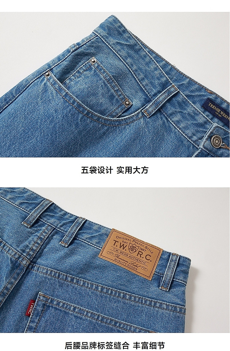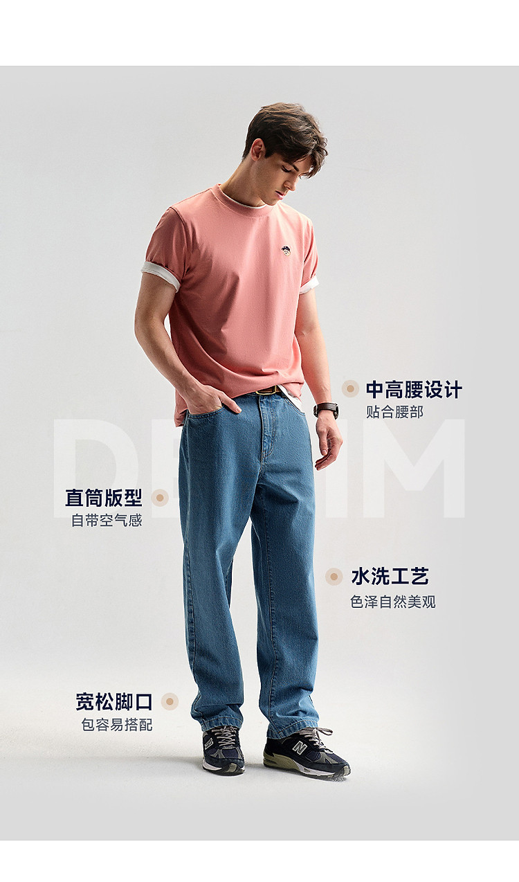 商品名称:小熊男装休闲简约时尚潮流直筒牛仔裤男春季美式复古宽松裤子 552769