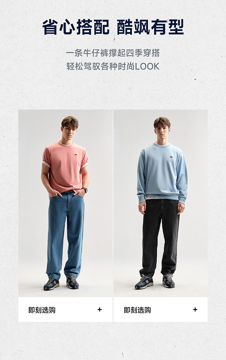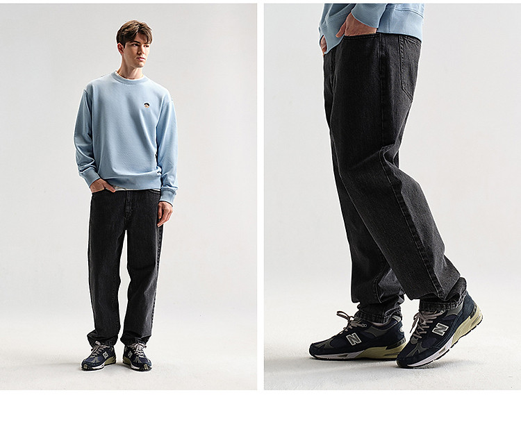 小熊男装休闲简约时尚潮流直筒牛仔裤男春季美式复古宽松裤子 552769