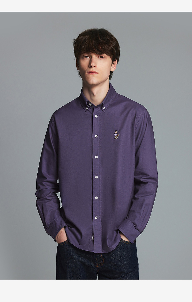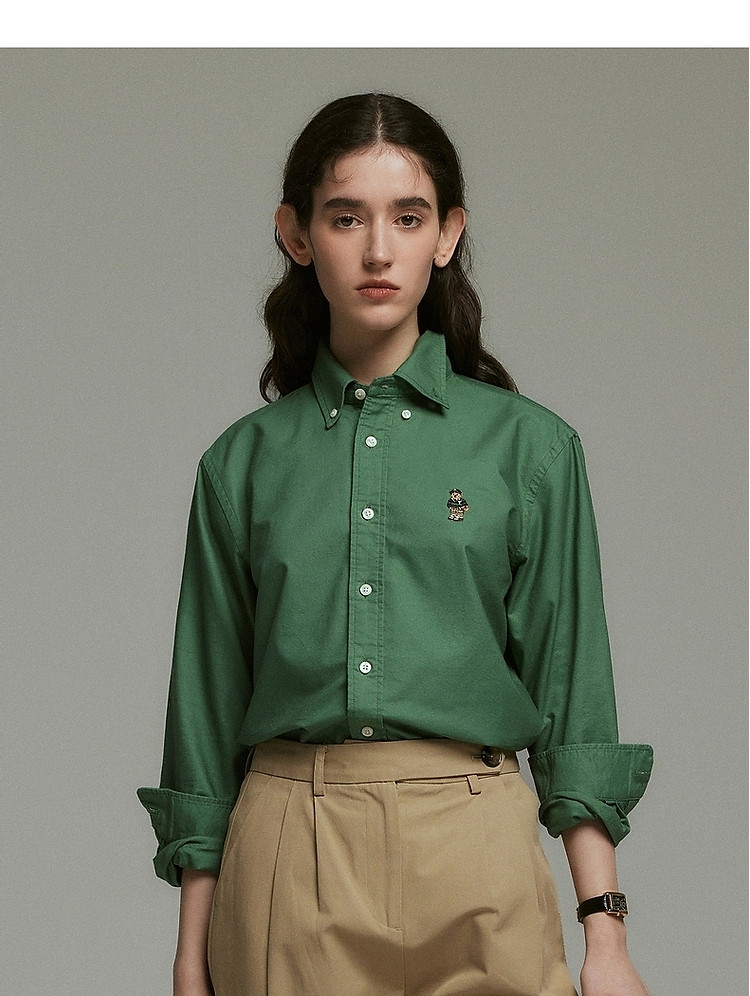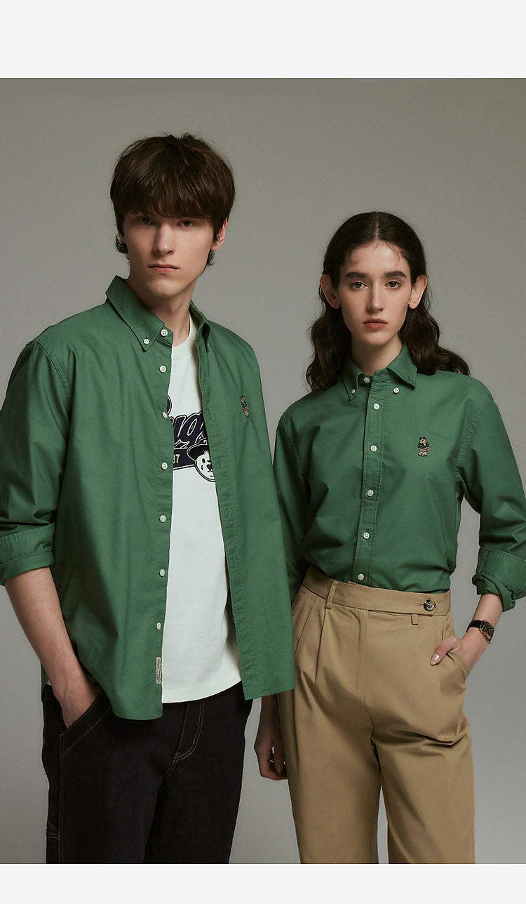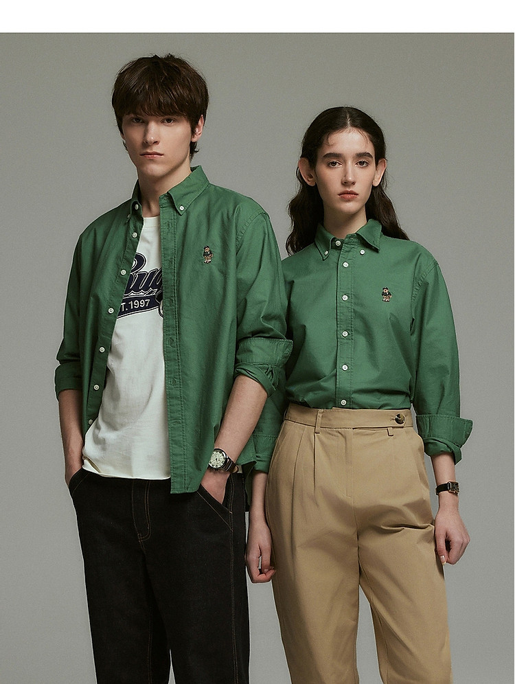 【牛津纺】小熊男装衬衫男长袖春季纯色男女同款衬衣男式衬衫 311105