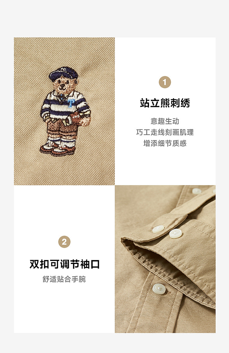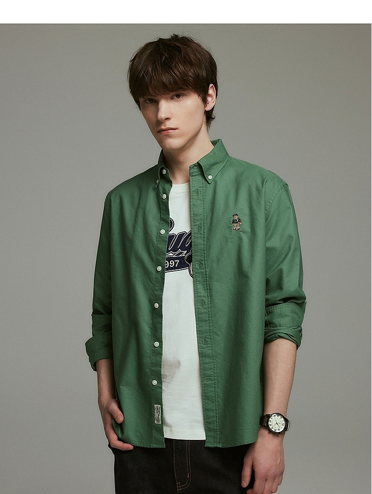商品名称:【牛津纺】小熊男装衬衫男长袖春季纯色男女同款衬衣男式衬衫 311105