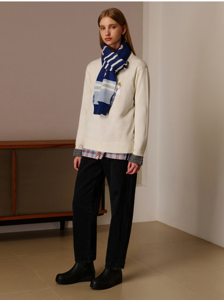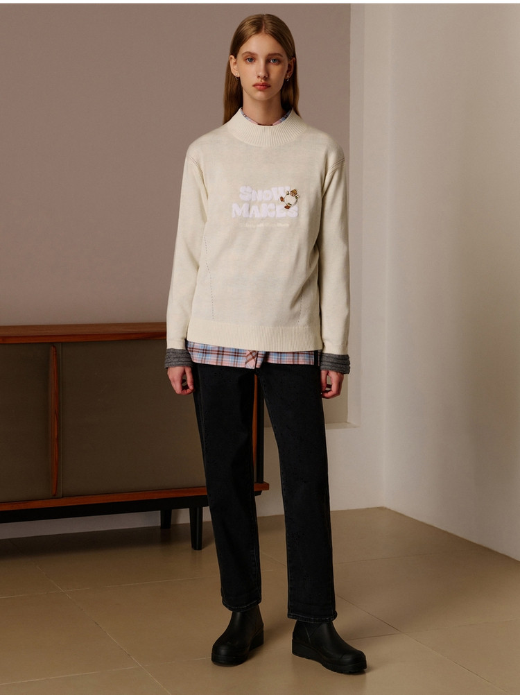 小熊春秋款简约中领套头毛衣针织衫女装韩版 342273