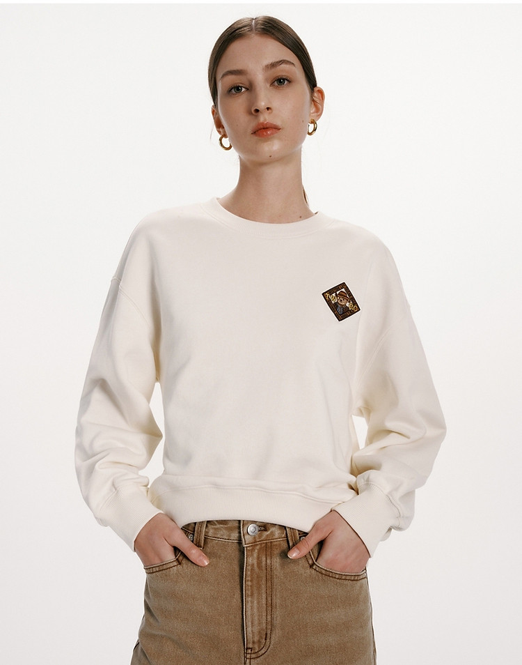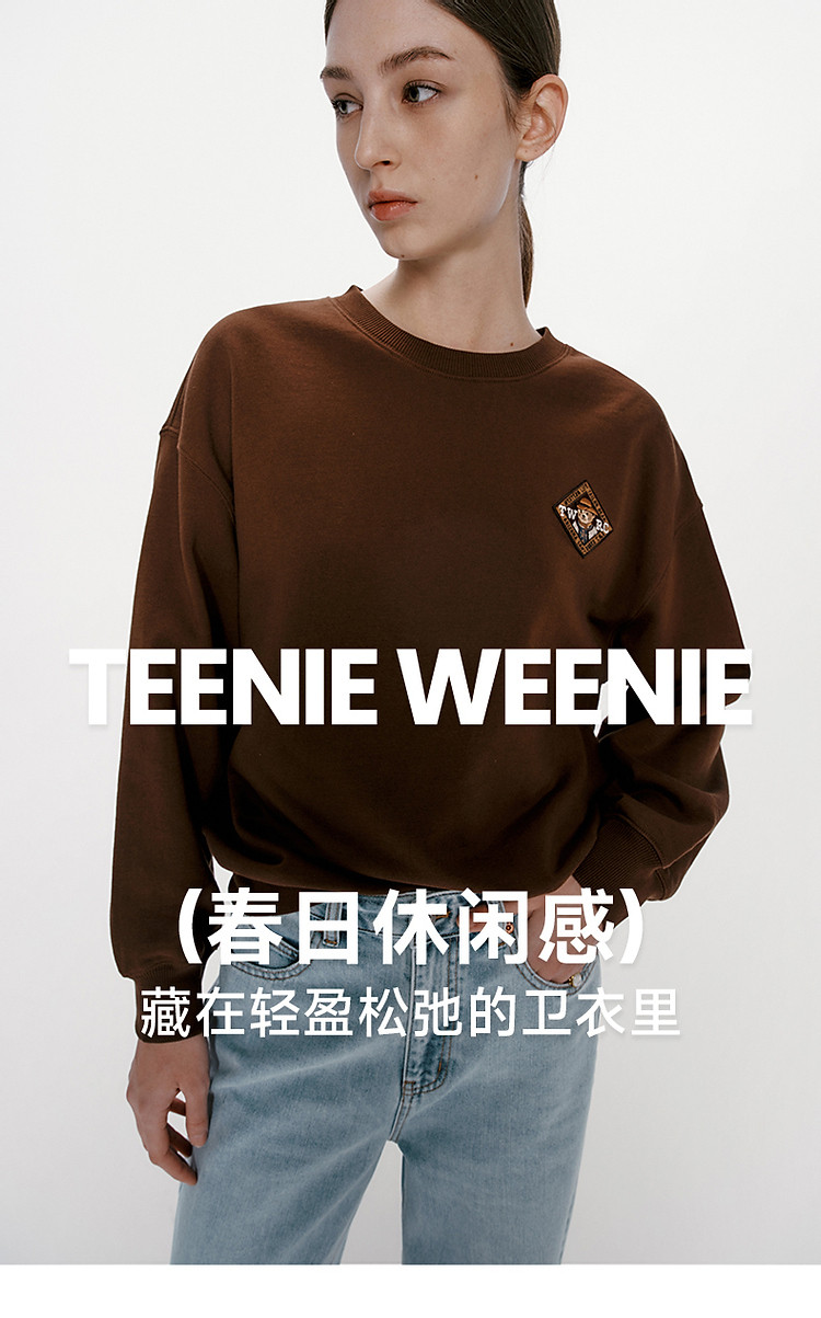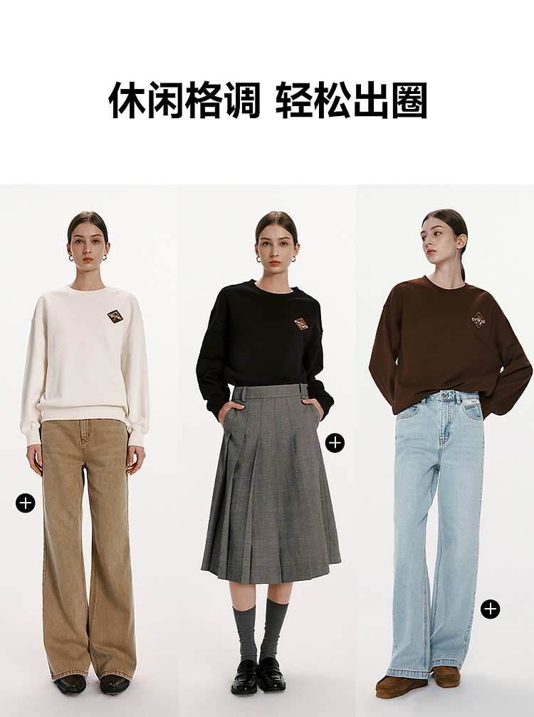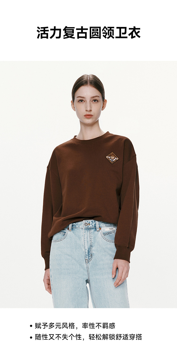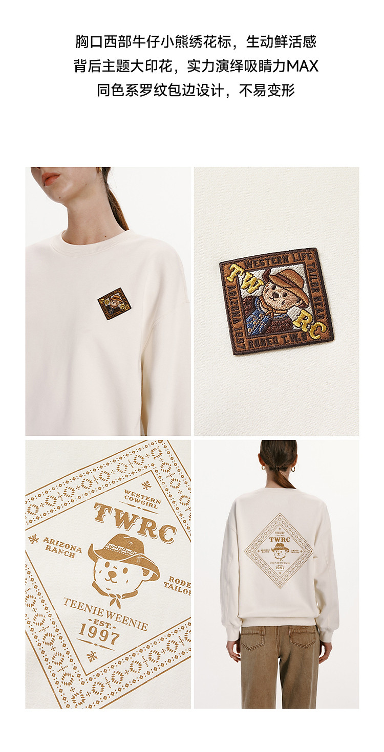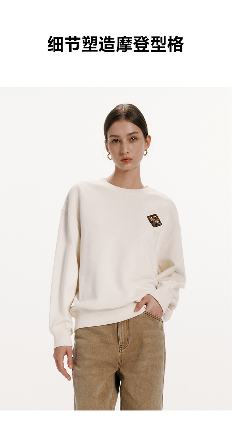 商品名称:小熊女装春秋款复古慵懒风圆领印花套头卫衣女 422657