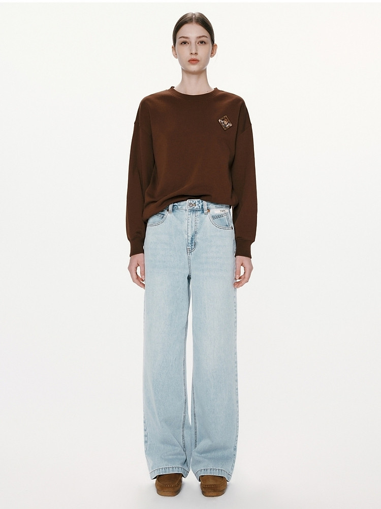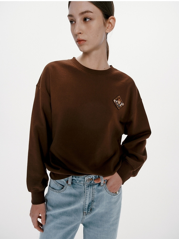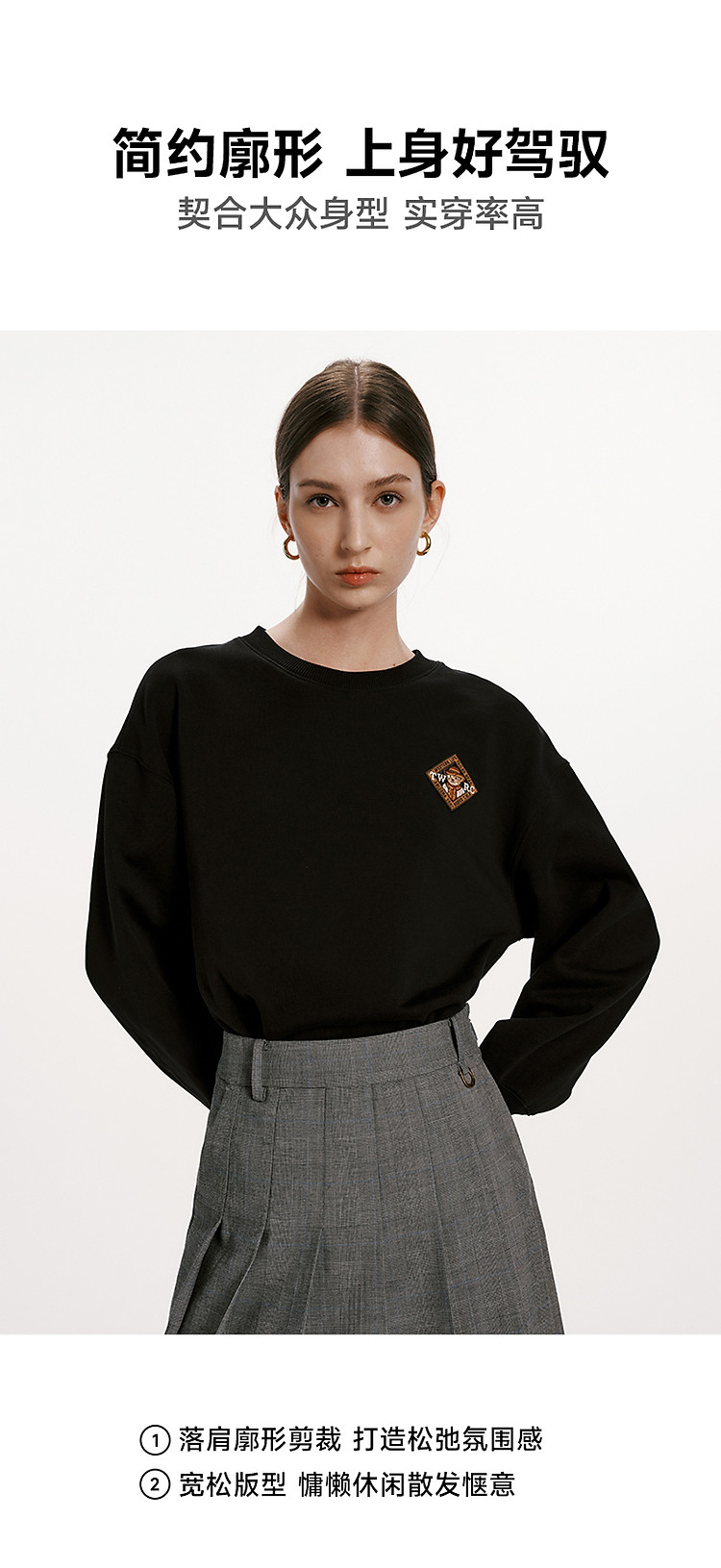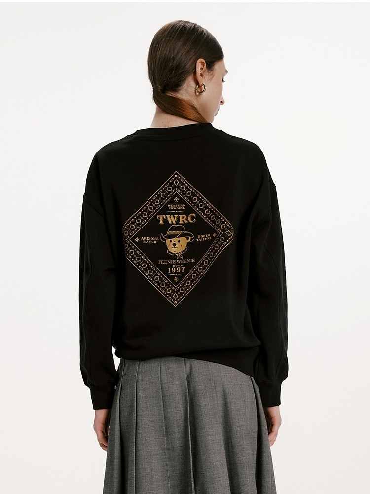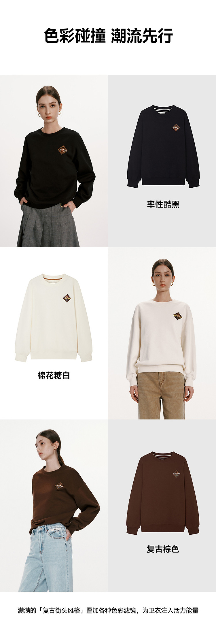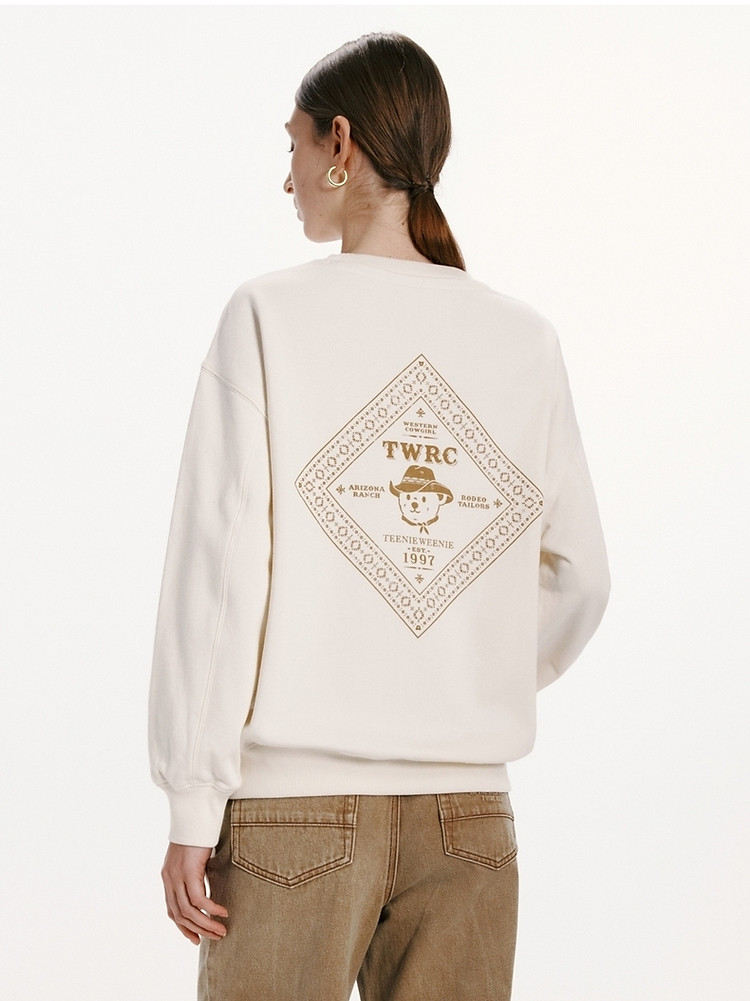 商品名称:小熊女装春秋款复古慵懒风圆领印花套头卫衣女 422657
