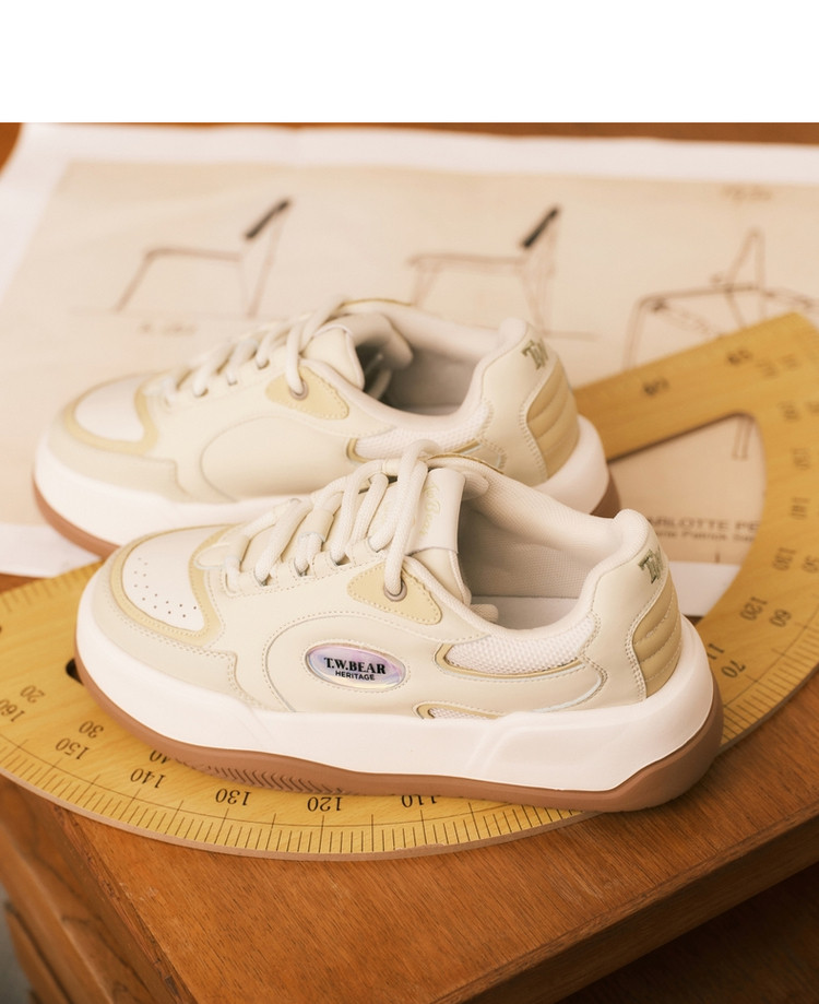 小熊春季时尚拼色低帮休闲厚底板鞋女鞋 166529