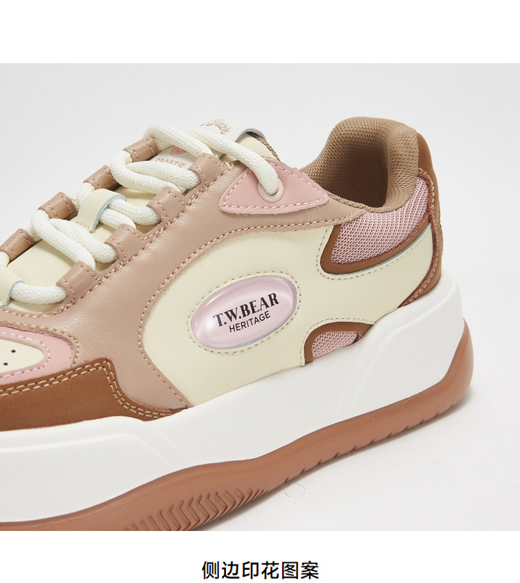 商品名称:小熊春季时尚拼色低帮休闲厚底板鞋女鞋 166529