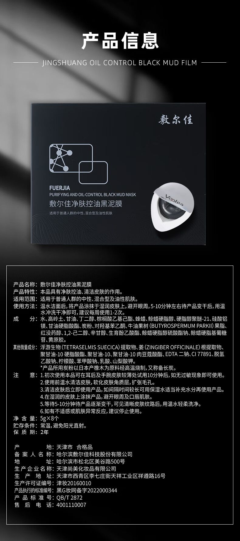 商品名称:敷尔佳 净爽控油黑泥膜 5g*8颗/盒