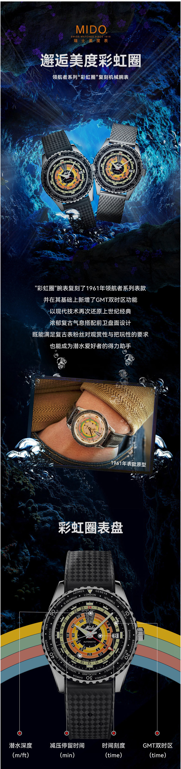 商品名称:美度领航者系列彩虹圈机械男士腕表特别款 (额外配1根可替换表带)M026.829.17.051.00