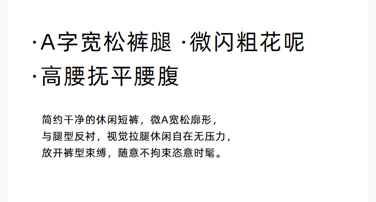 商品名称:【春季款】含亚麻多巴胺穿搭通勤款商务显瘦阔腿休闲短裤 239963