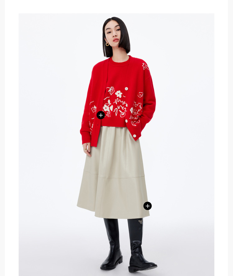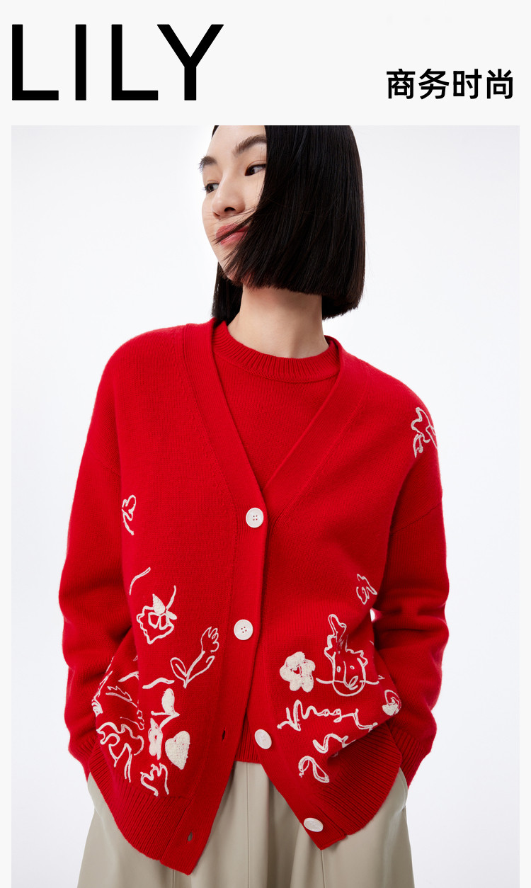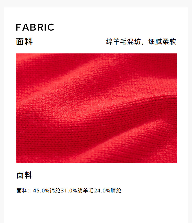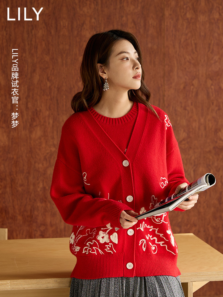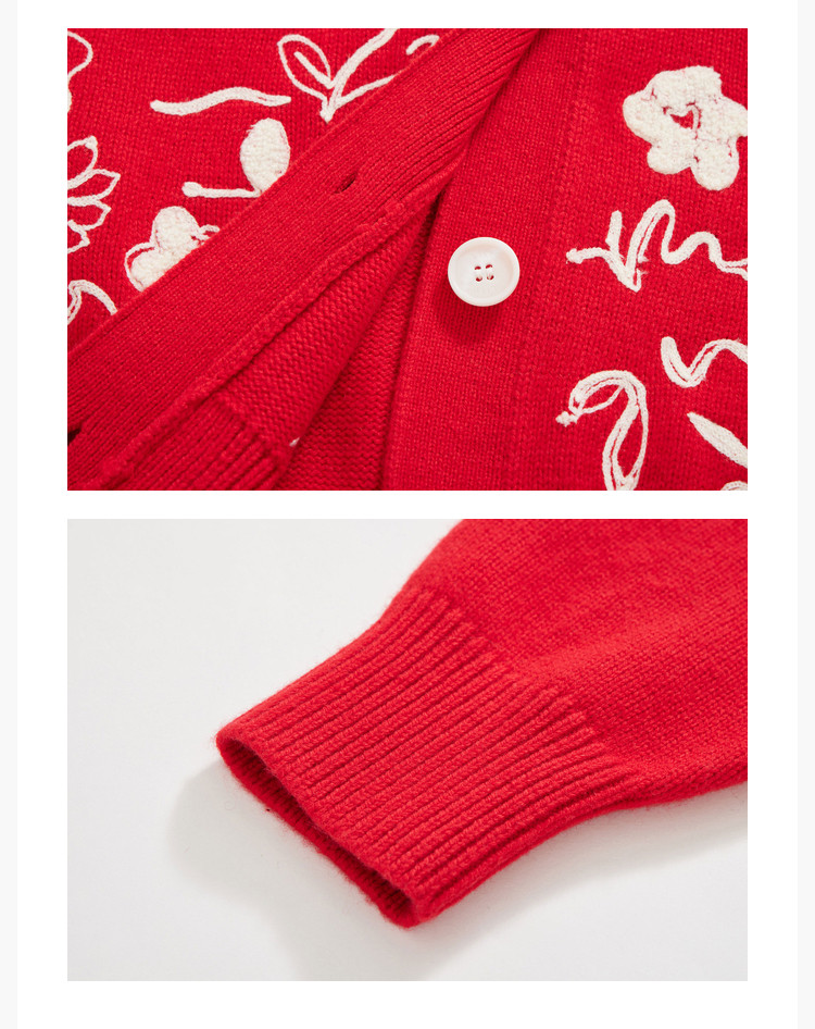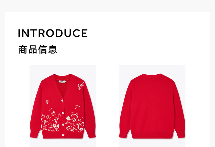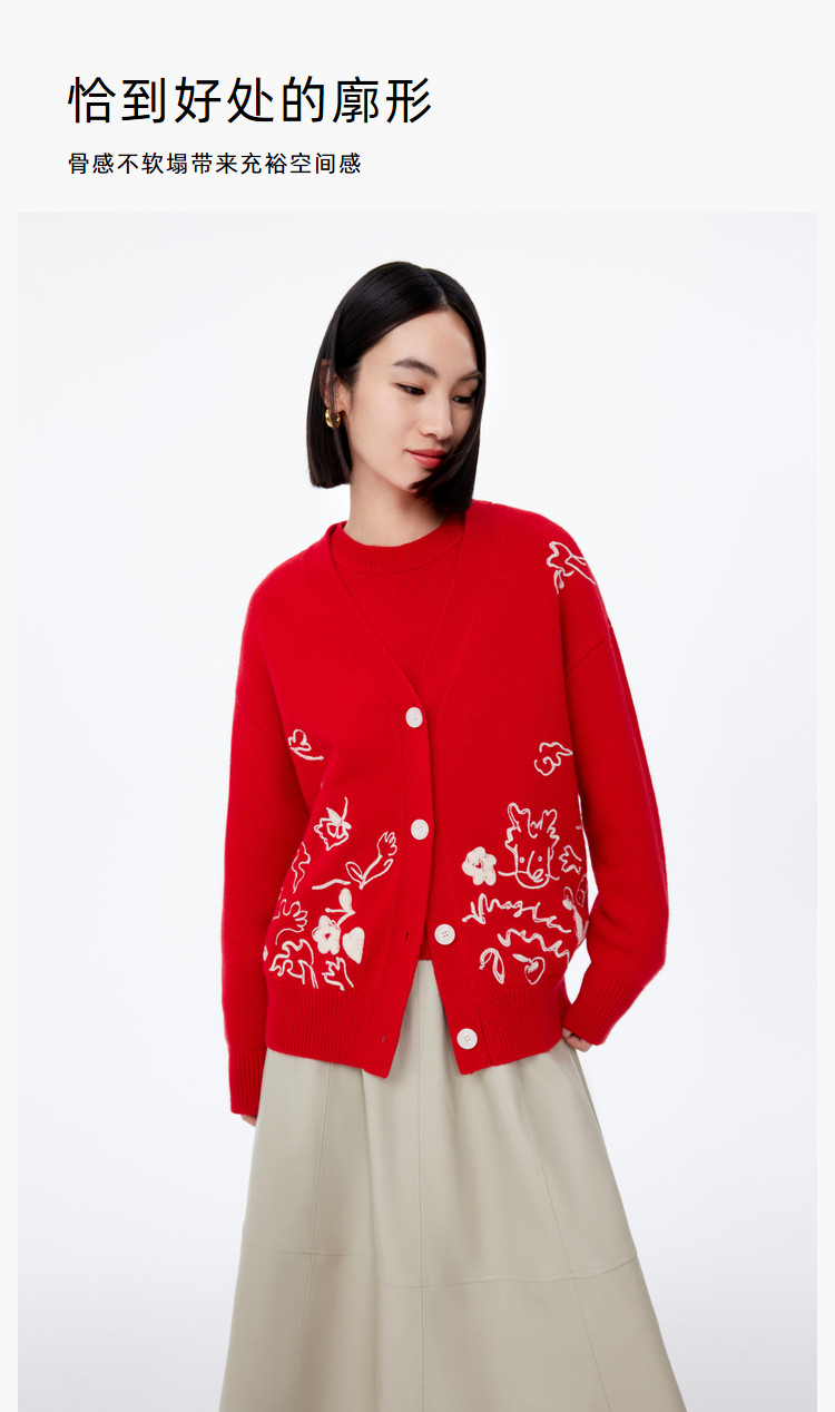 商品名称:【龙年衣】春季款外套拜年红色绵羊毛趣味v领针织开衫外套女 526747