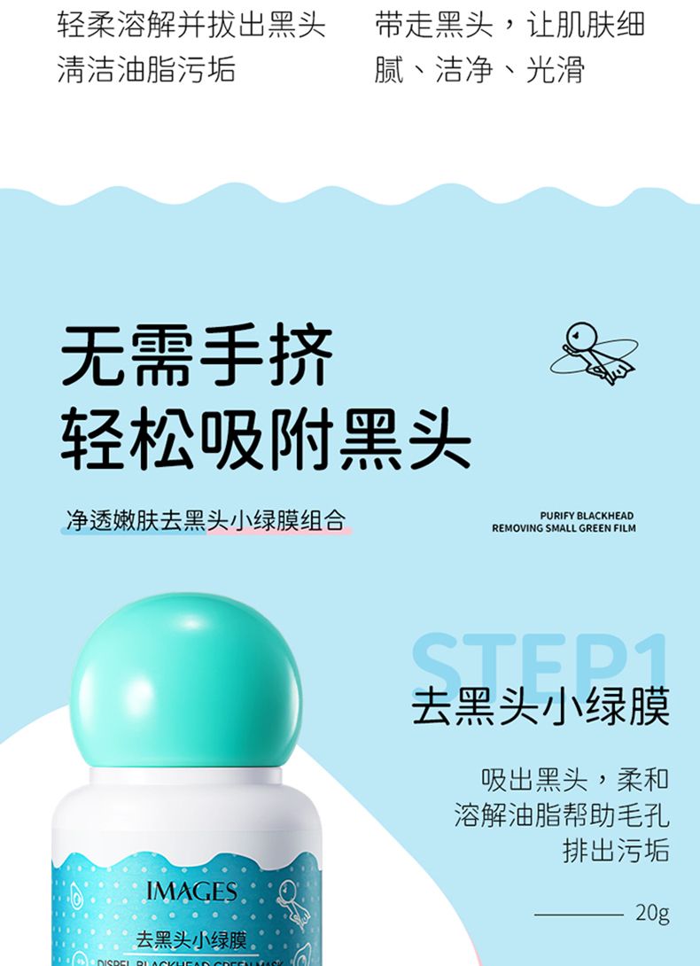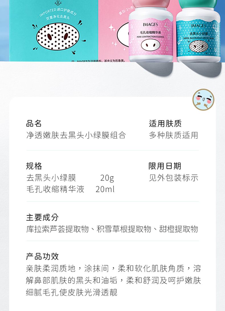 形象美净透嫩肤去黑头小绿膜组合 20g+20ml 保湿清洁毛孔面部脸部