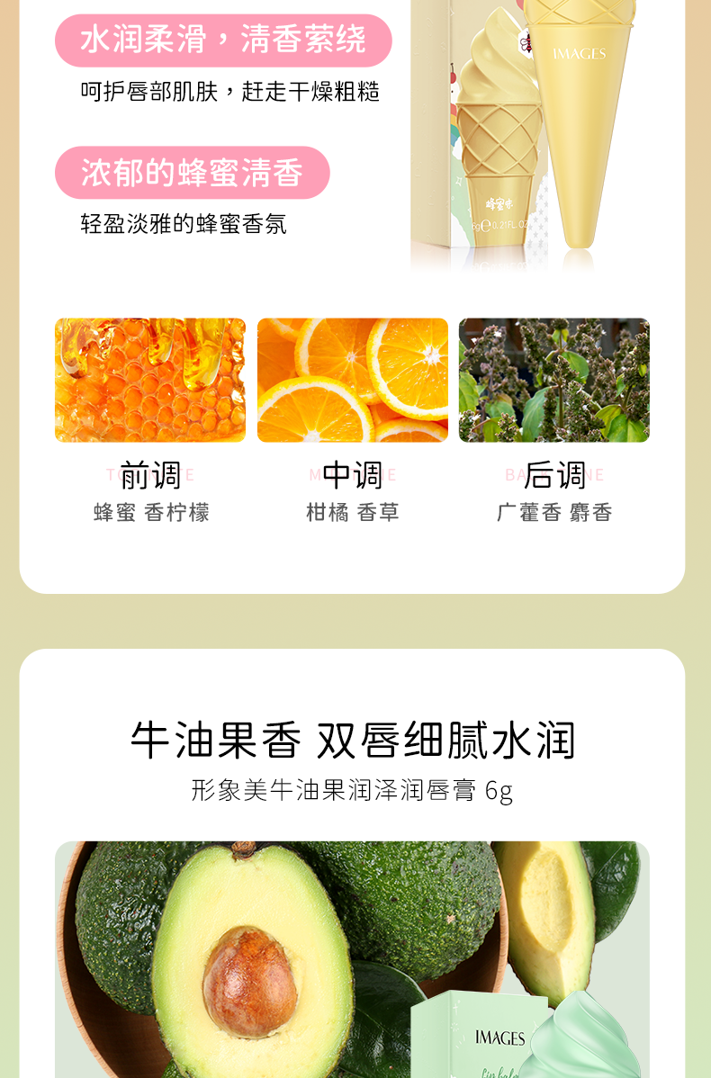 形象美保湿滋润润唇膏6g草莓蜂蜜牛油果水蜜桃4款可选秋冬季秋冬天唇部护理