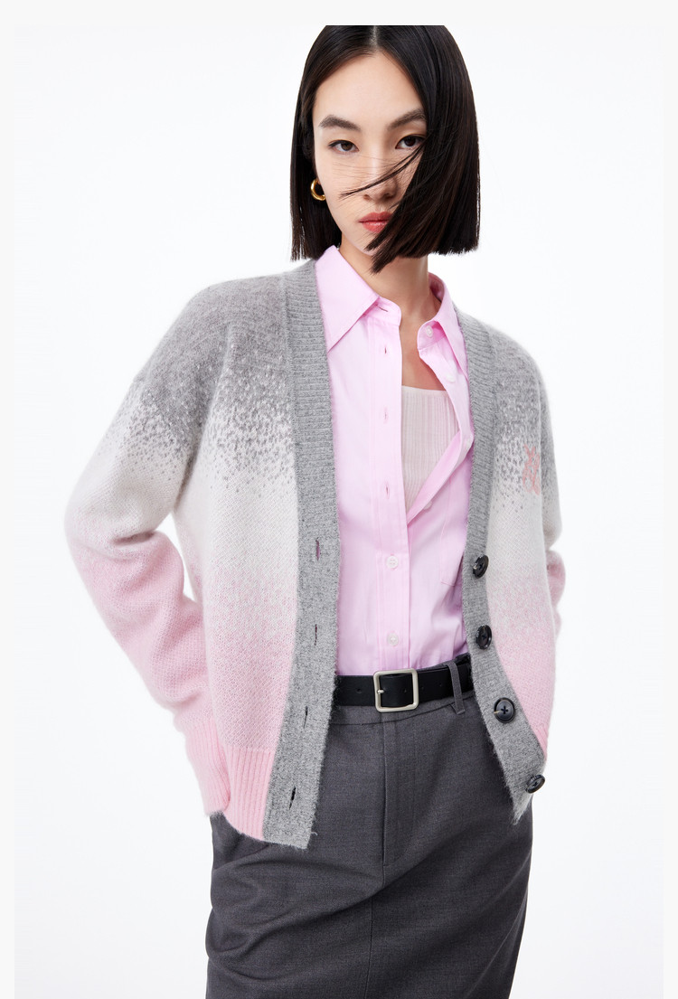 冬款多巴胺穿搭绵羊毛含马海毛针织开衫外套女 559515