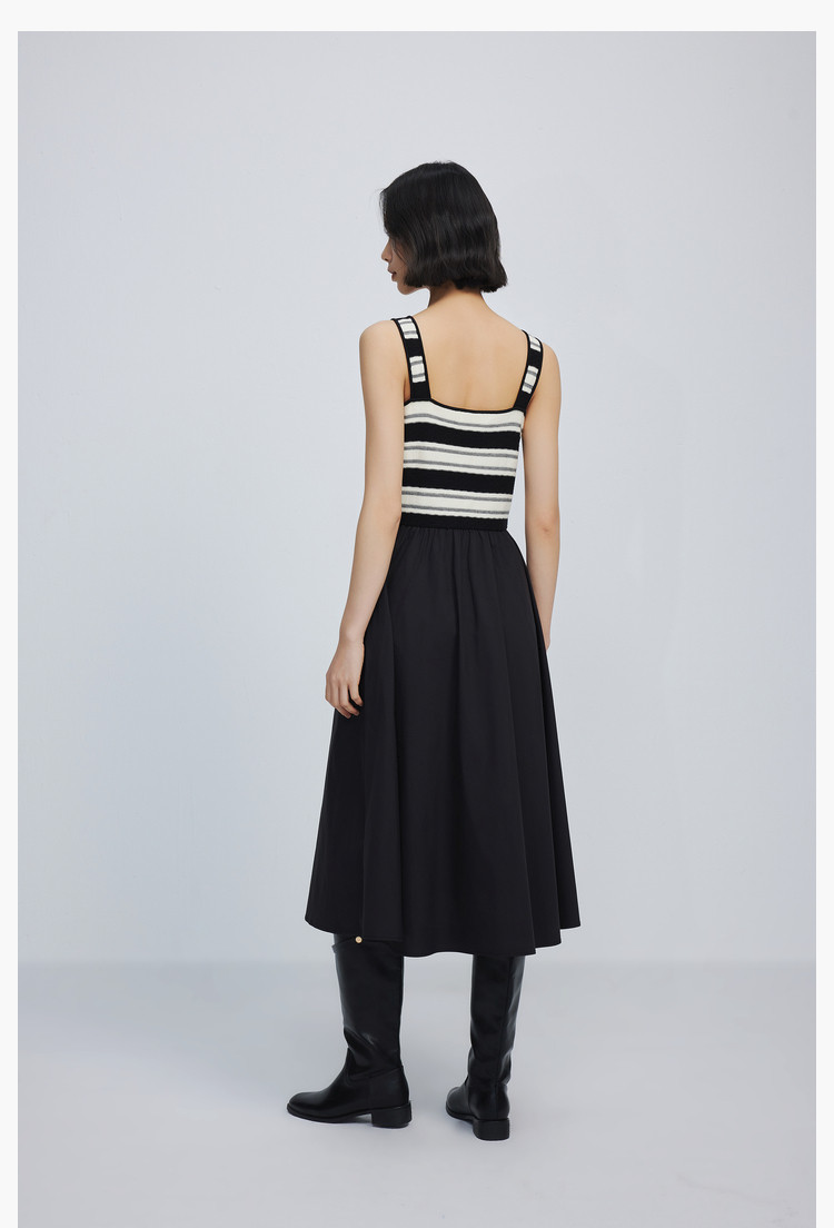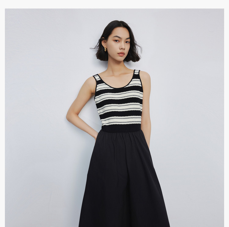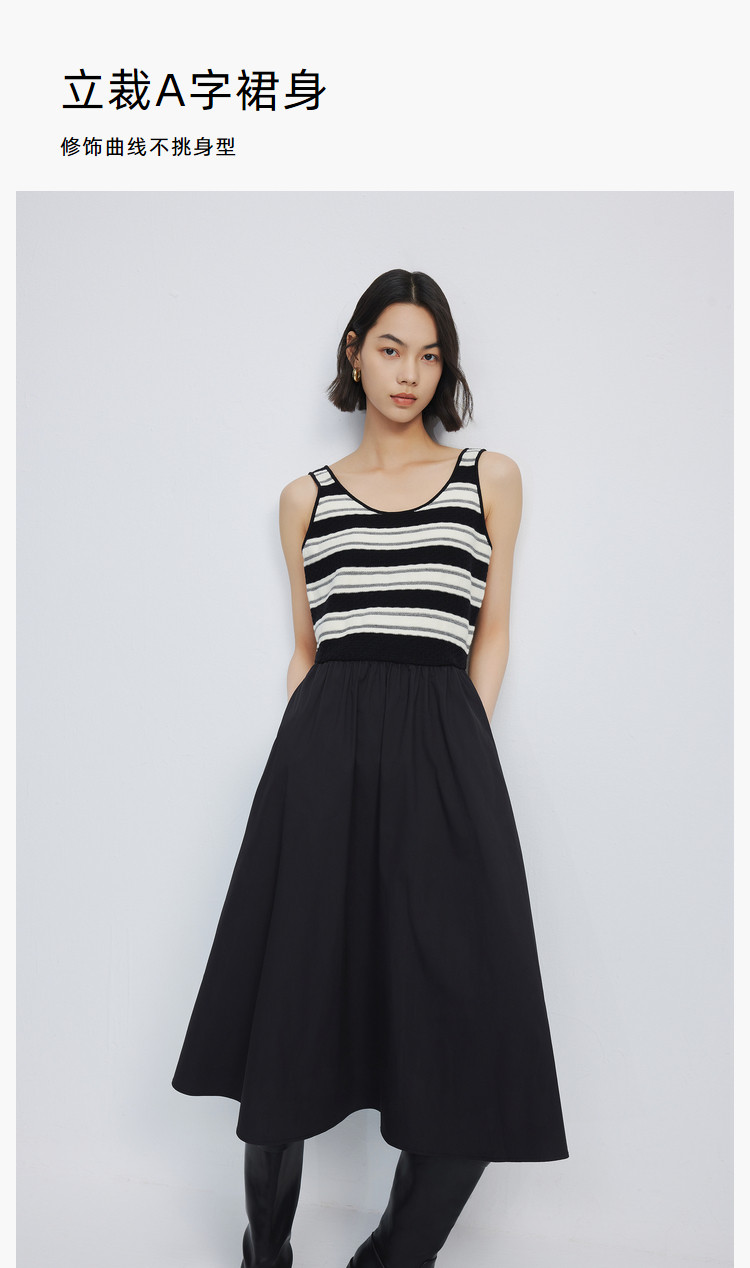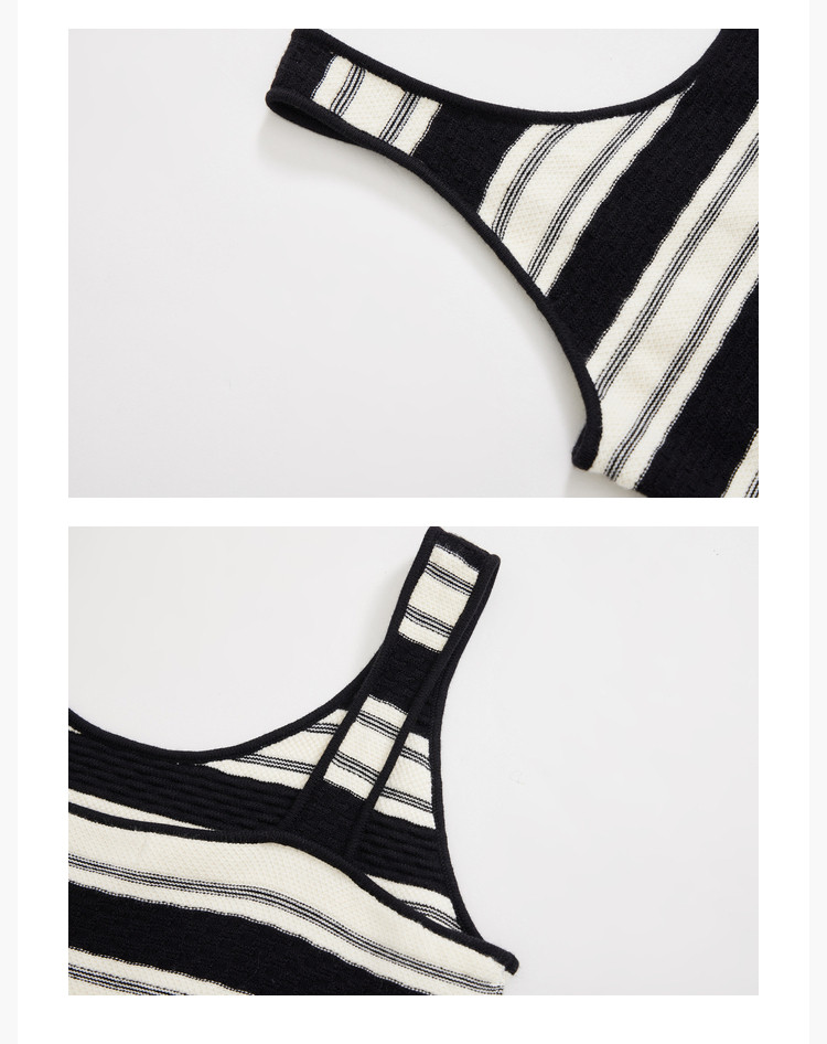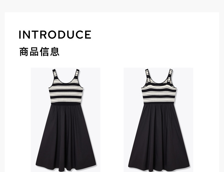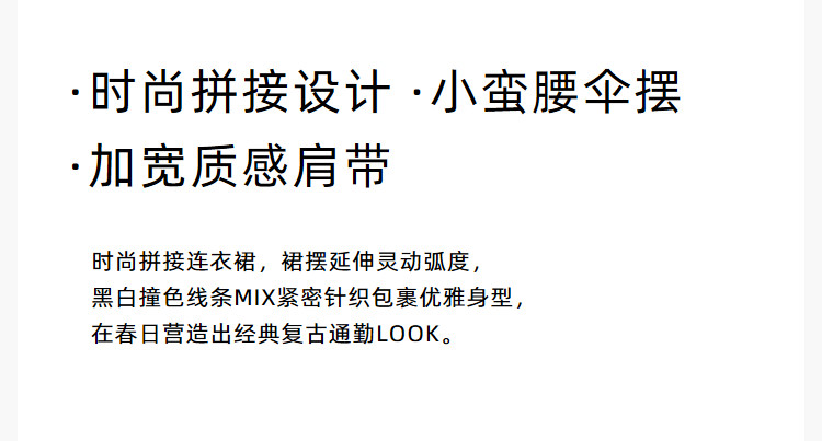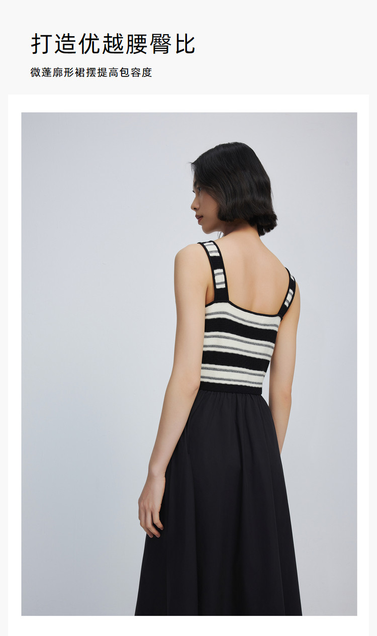 商品名称:春季复古拼接条纹时尚通勤款加宽肩带优雅针织连衣裙小黑裙 438939