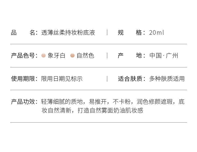 商品名称:形象美透薄丝柔持妆粉底液20ml