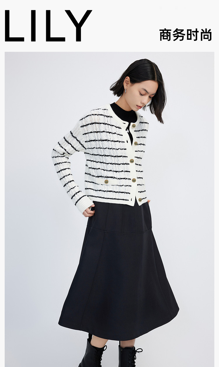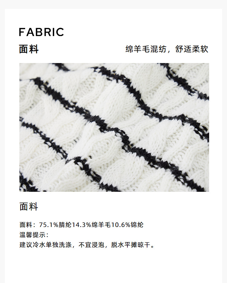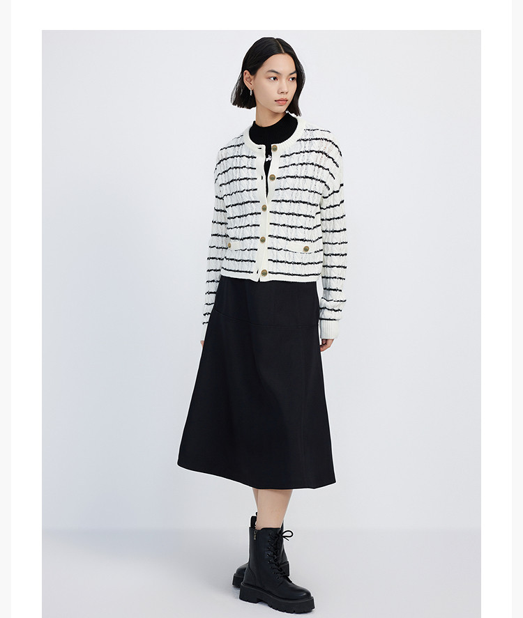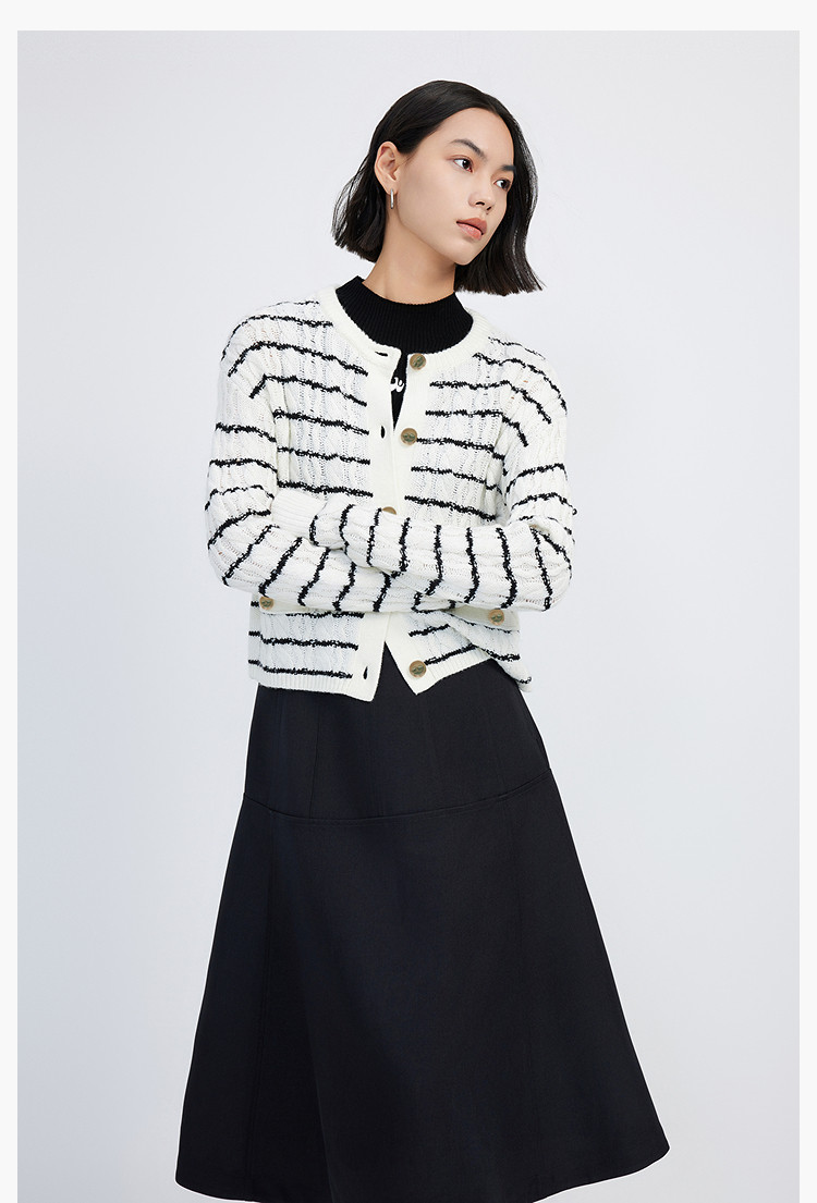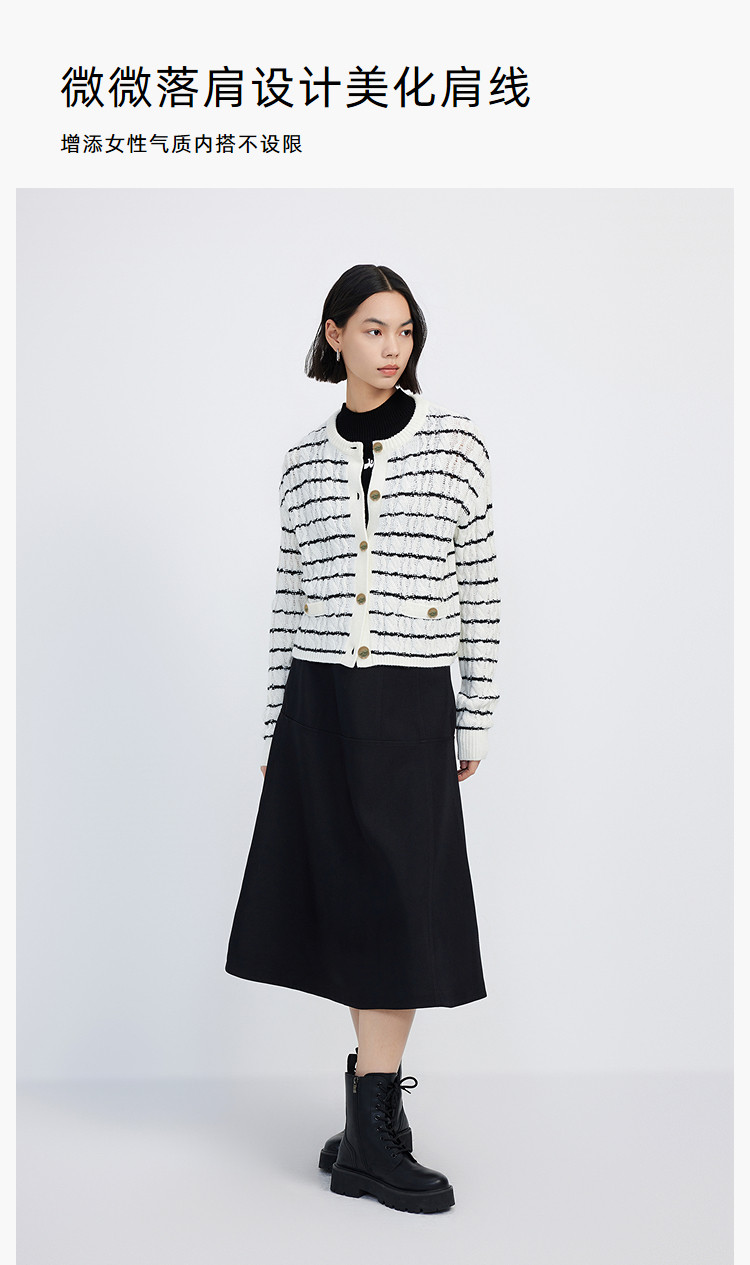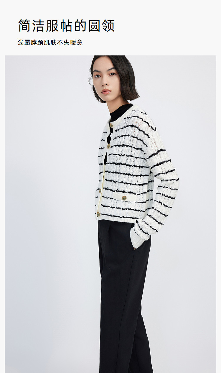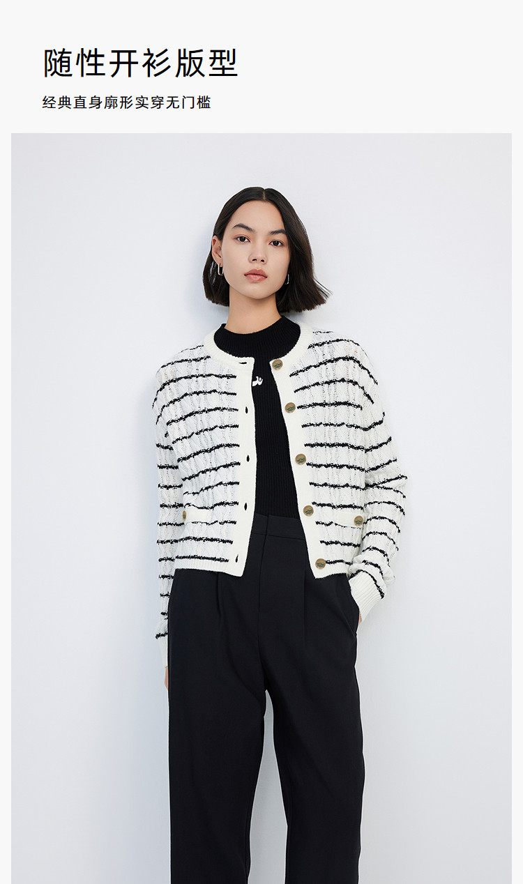 商品名称:【春季款】含绵羊毛复古条纹优雅小香风修身短款针织开衫 108891
