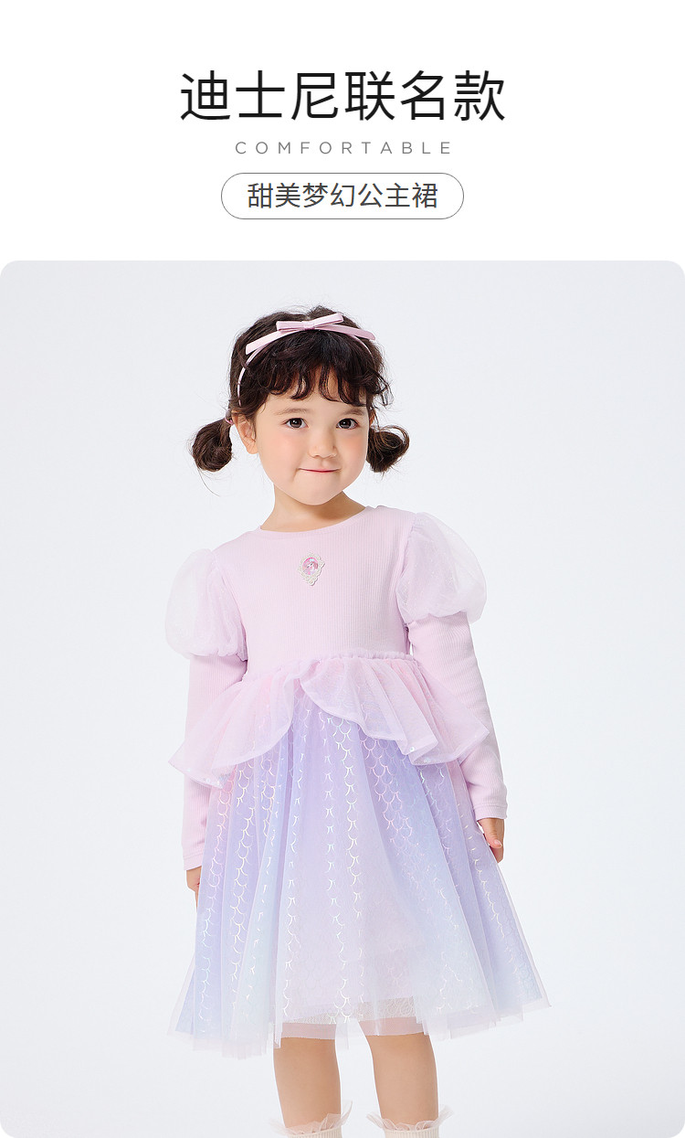 迪士尼公主渐变连衣裙儿童裙子童装女童小童公主裙网纱宝宝春款 401477