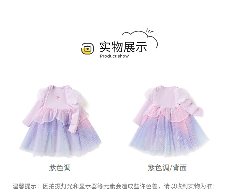 商品名称:迪士尼公主渐变连衣裙儿童裙子童装女童小童公主裙网纱宝宝春款 401477