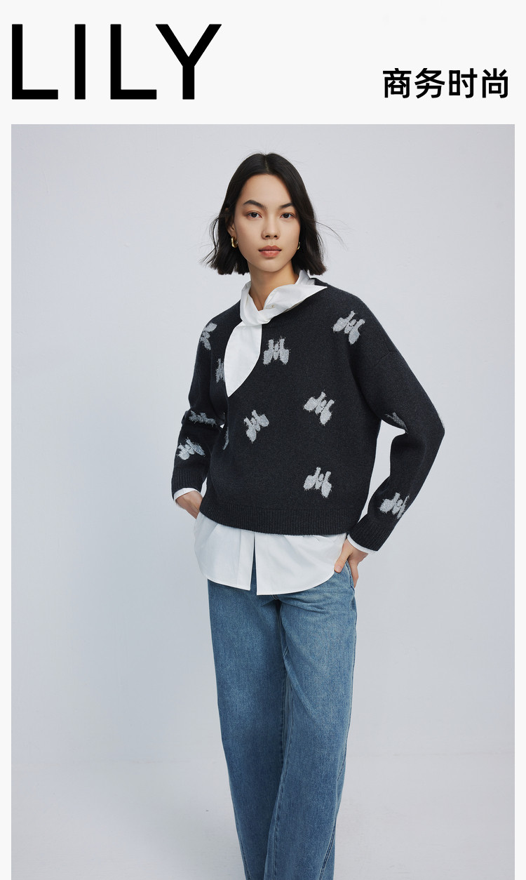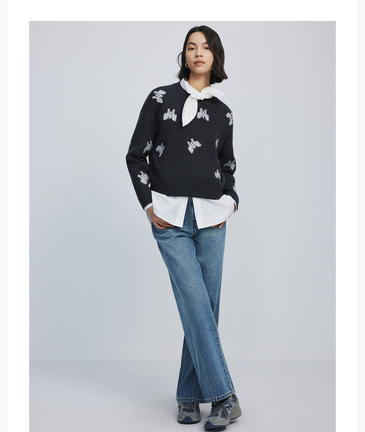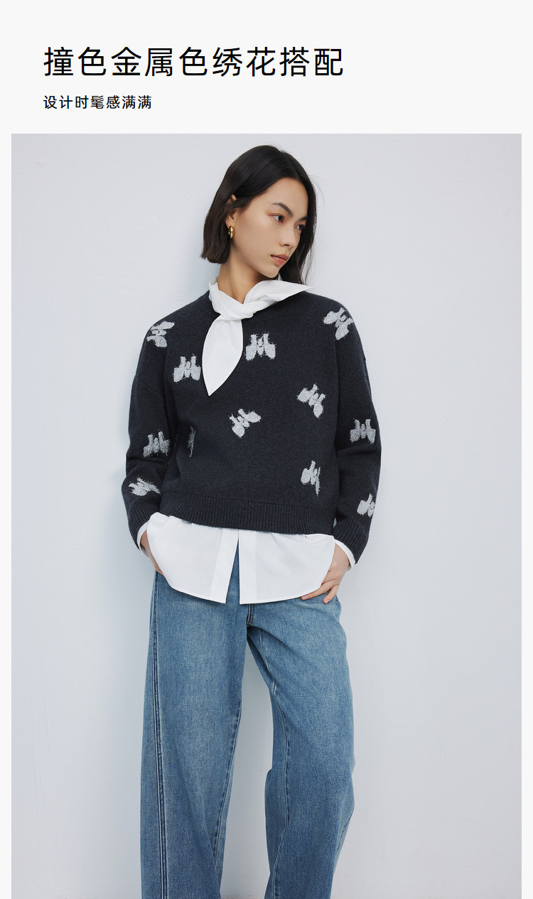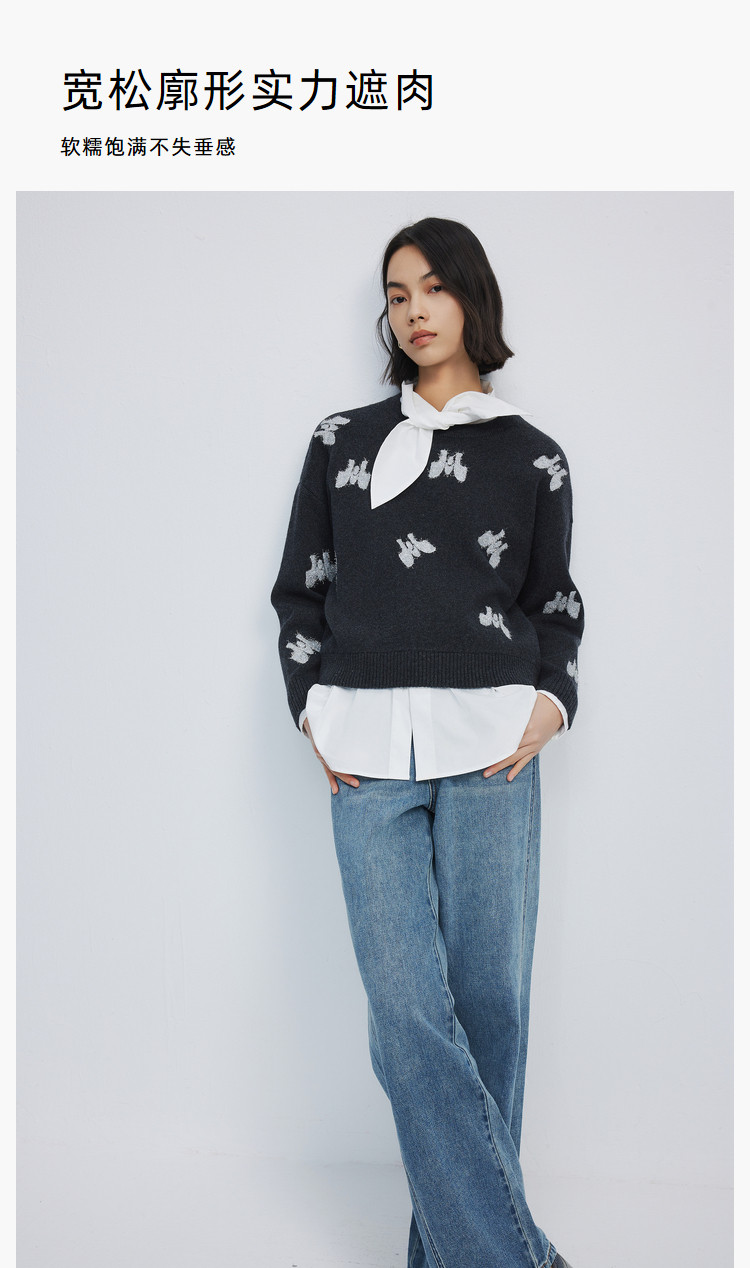 【春季款】含绵羊毛别致趣味时尚通勤款休闲宽松毛针织衫 155739