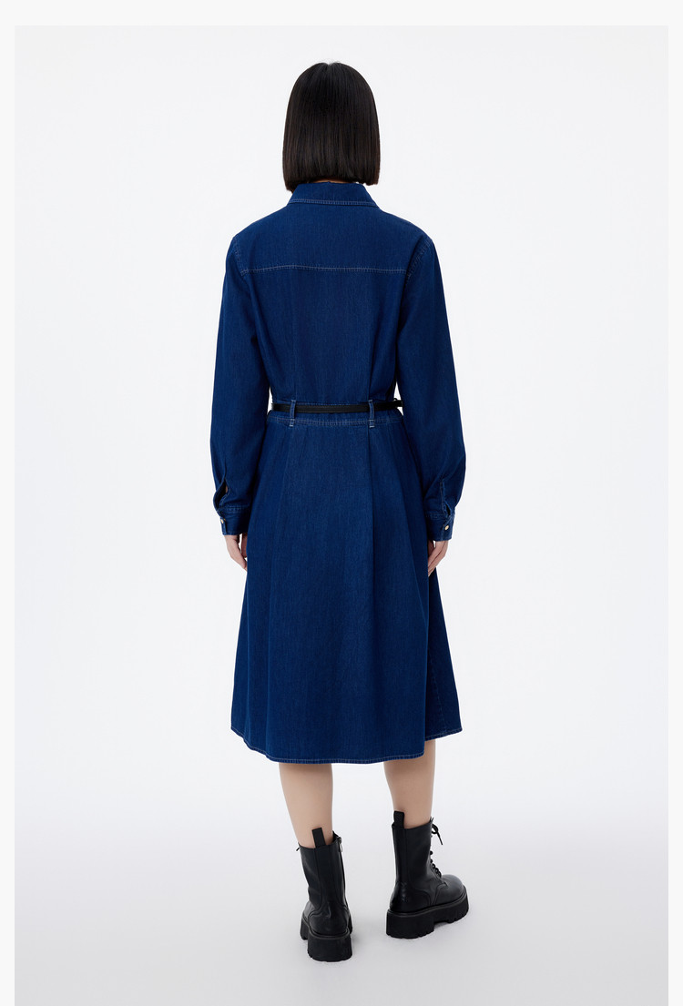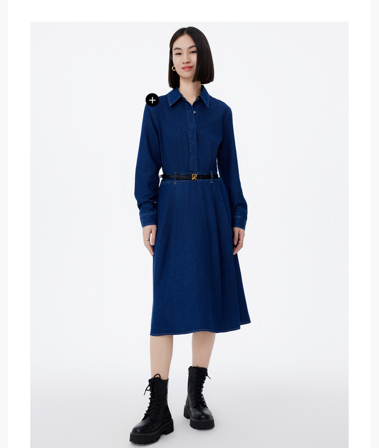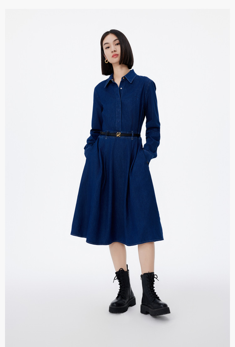 【龙年衣】春季款品舒适全棉A字型牛仔衬衫式长袖连衣裙女 446427