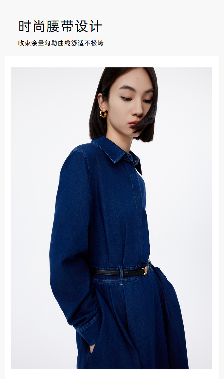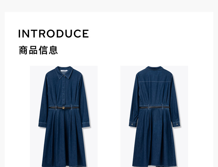 商品名称:【龙年衣】春季款品舒适全棉A字型牛仔衬衫式长袖连衣裙女 446427