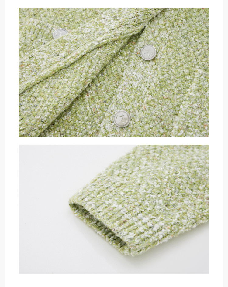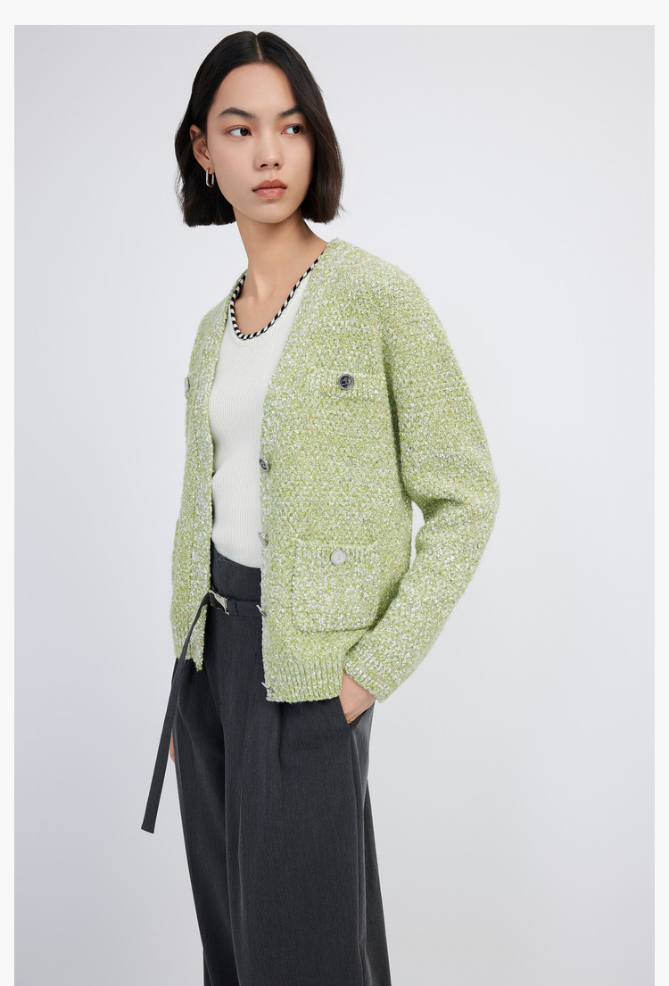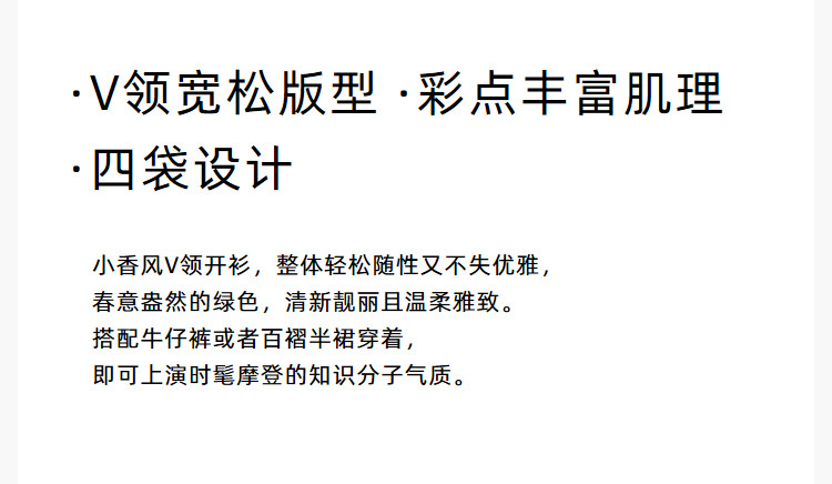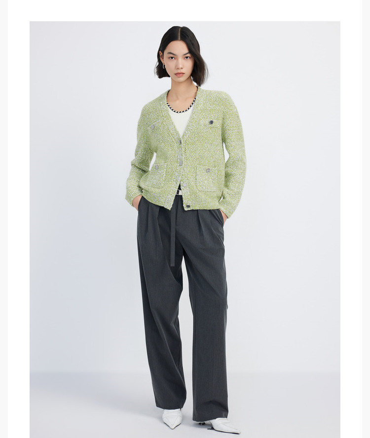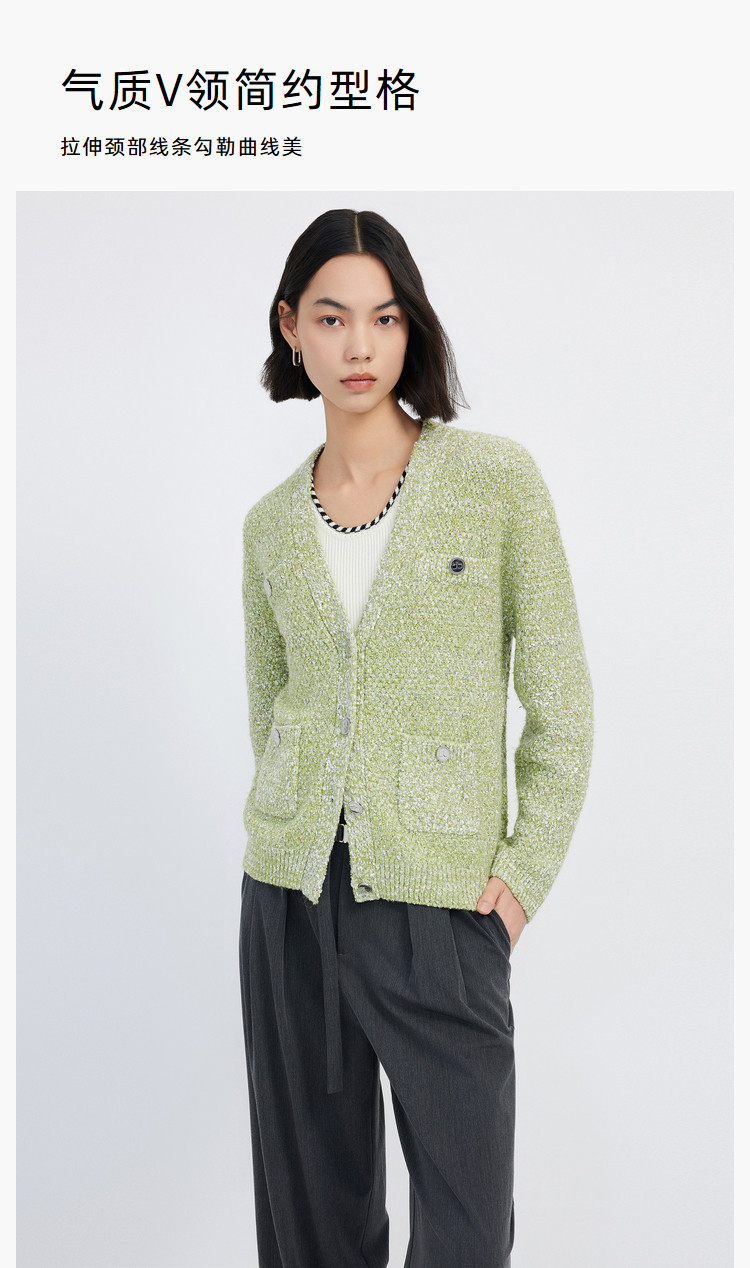 商品名称:【薄荷曼波】春季款含绵羊毛气质优雅通勤V领复古绿色针织开衫 489819