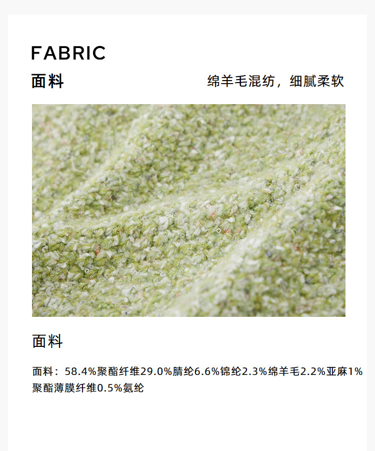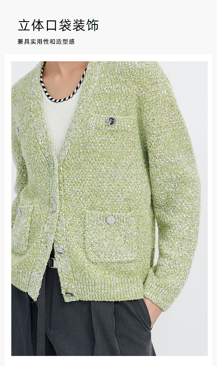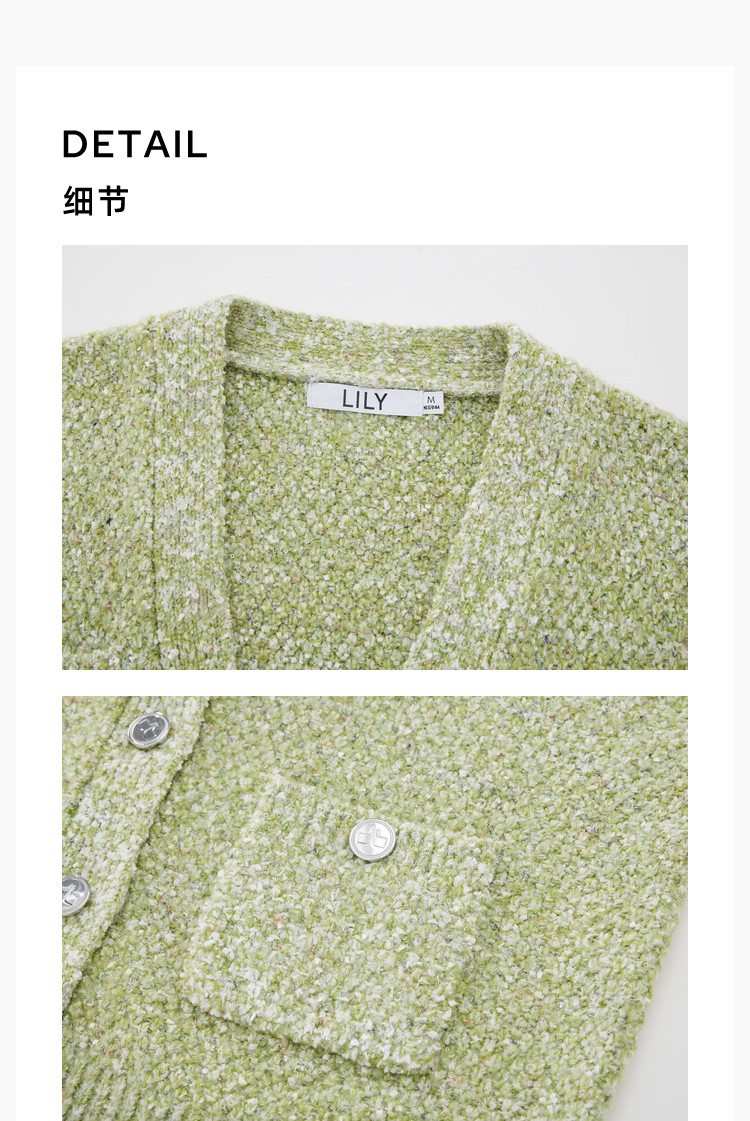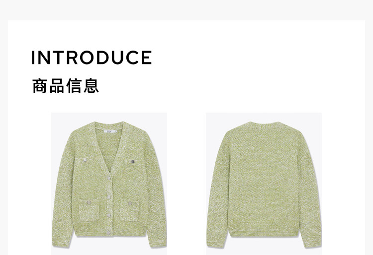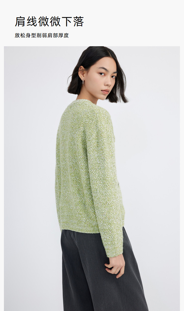 商品名称:【薄荷曼波】春季款含绵羊毛气质优雅通勤V领复古绿色针织开衫 489819