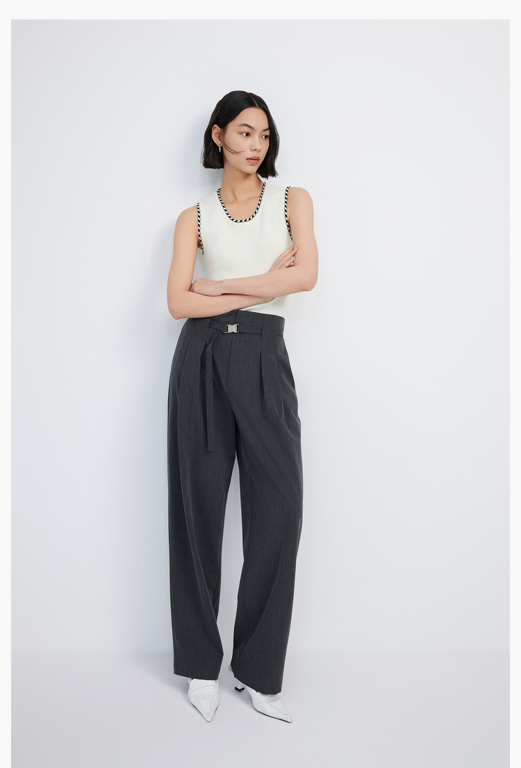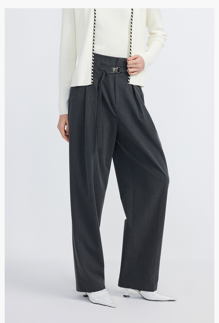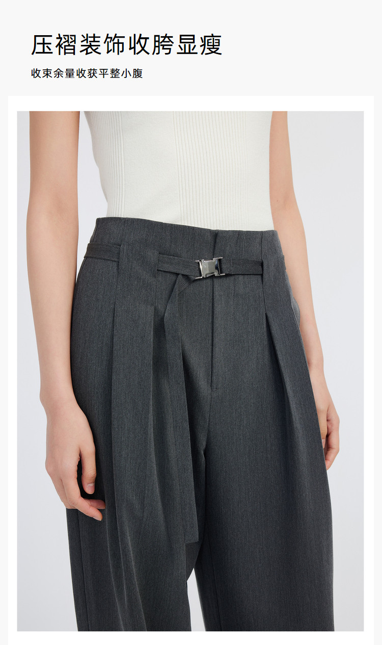 【春季款】都市通勤款宽松垂坠感直筒显瘦高腰西装休闲裤女 568539