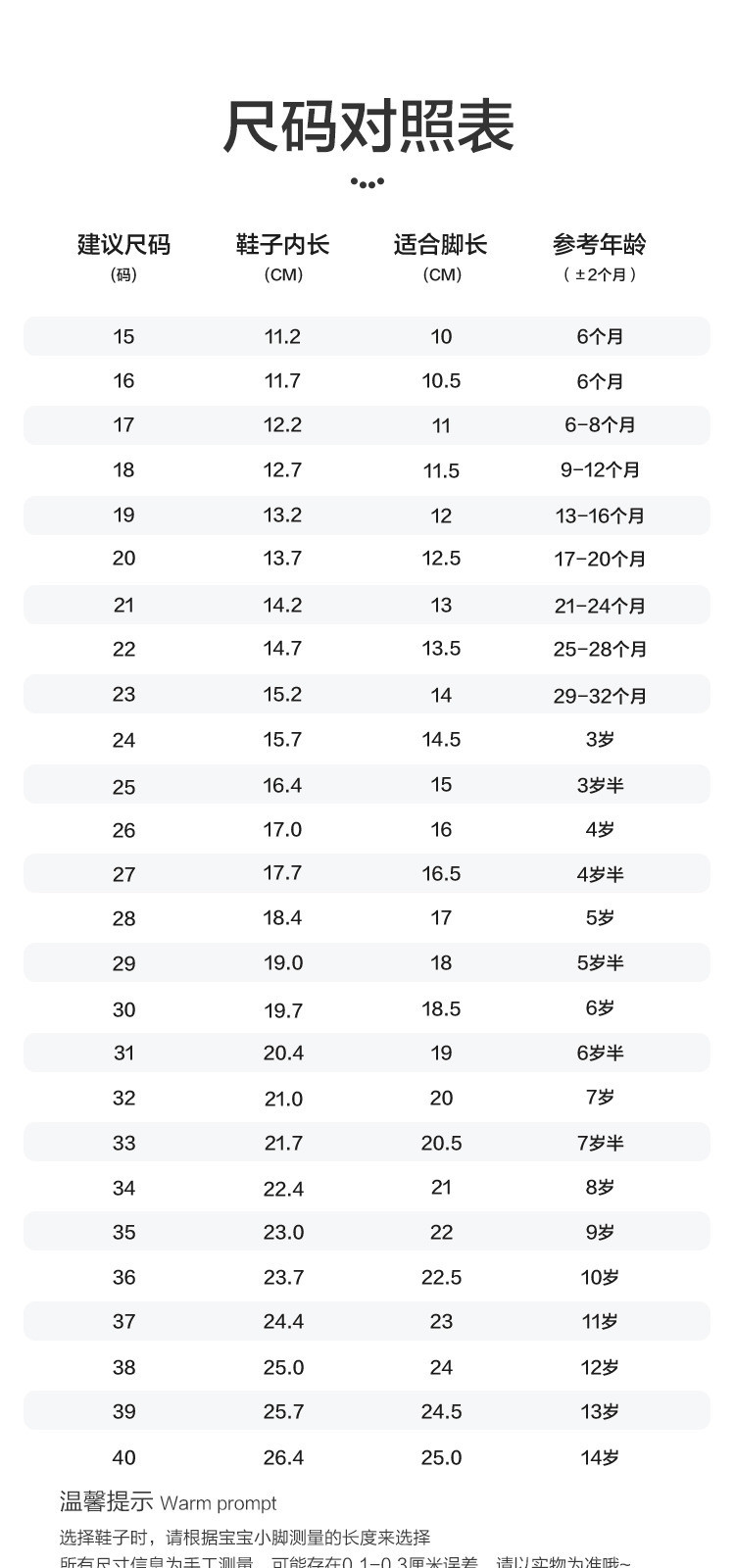 | 30码(脚长18.5/内长19.7) | 30 | 18.5cm | 19.7cm |