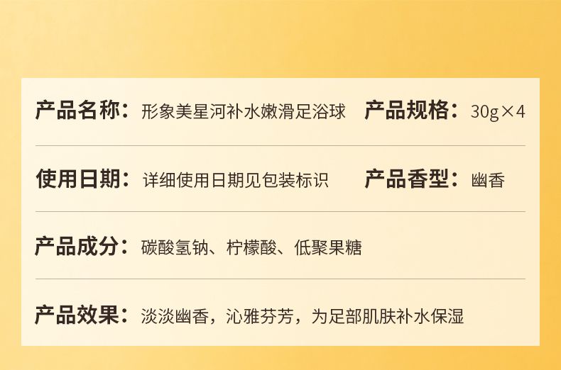商品名称:形象美星河补水嫩滑足浴球 30gX4颗