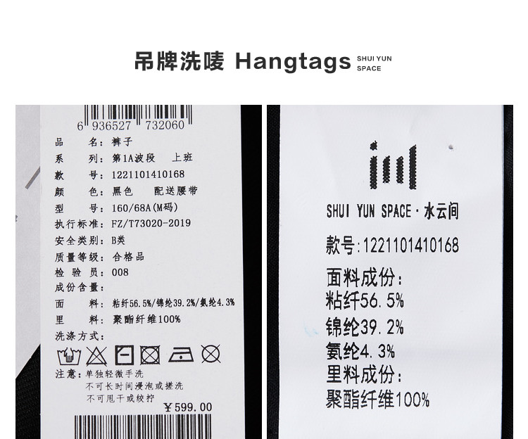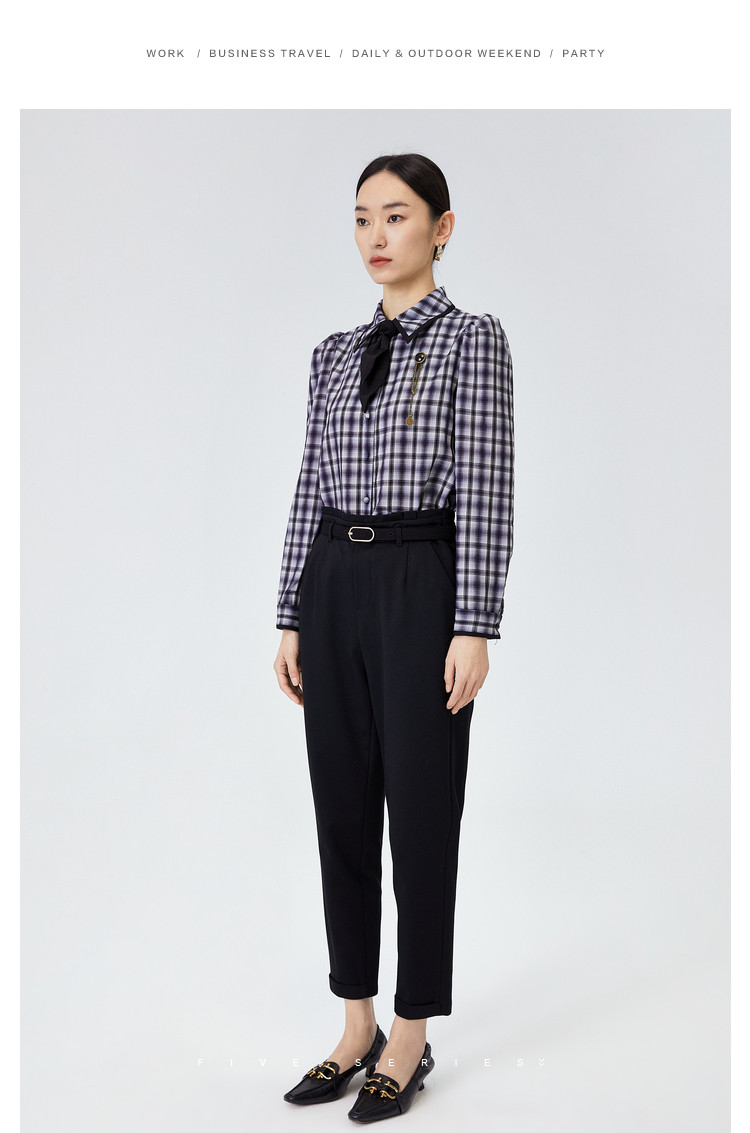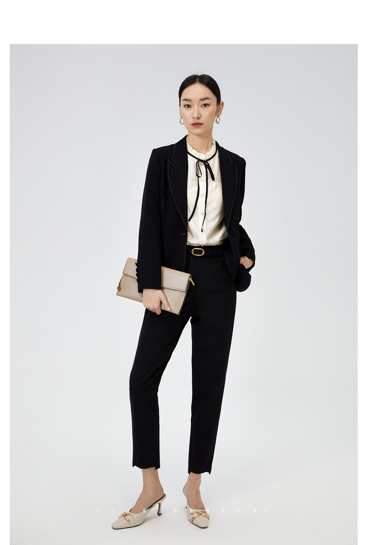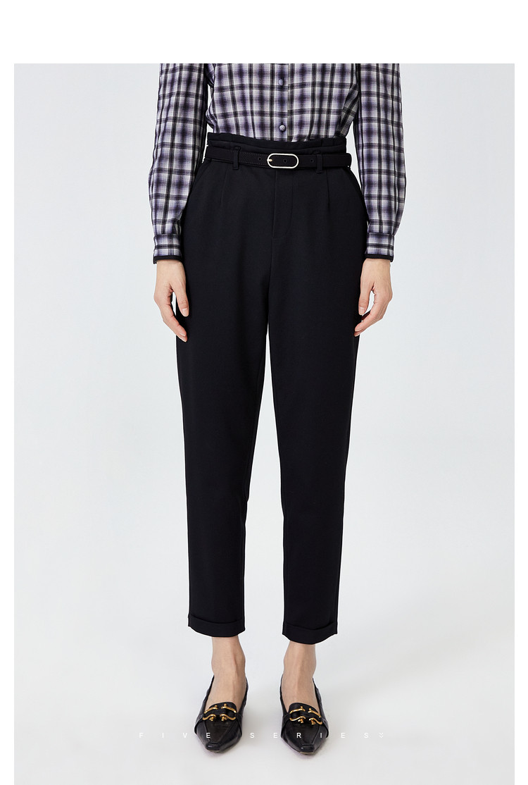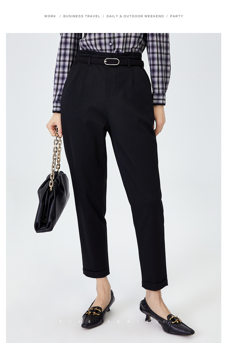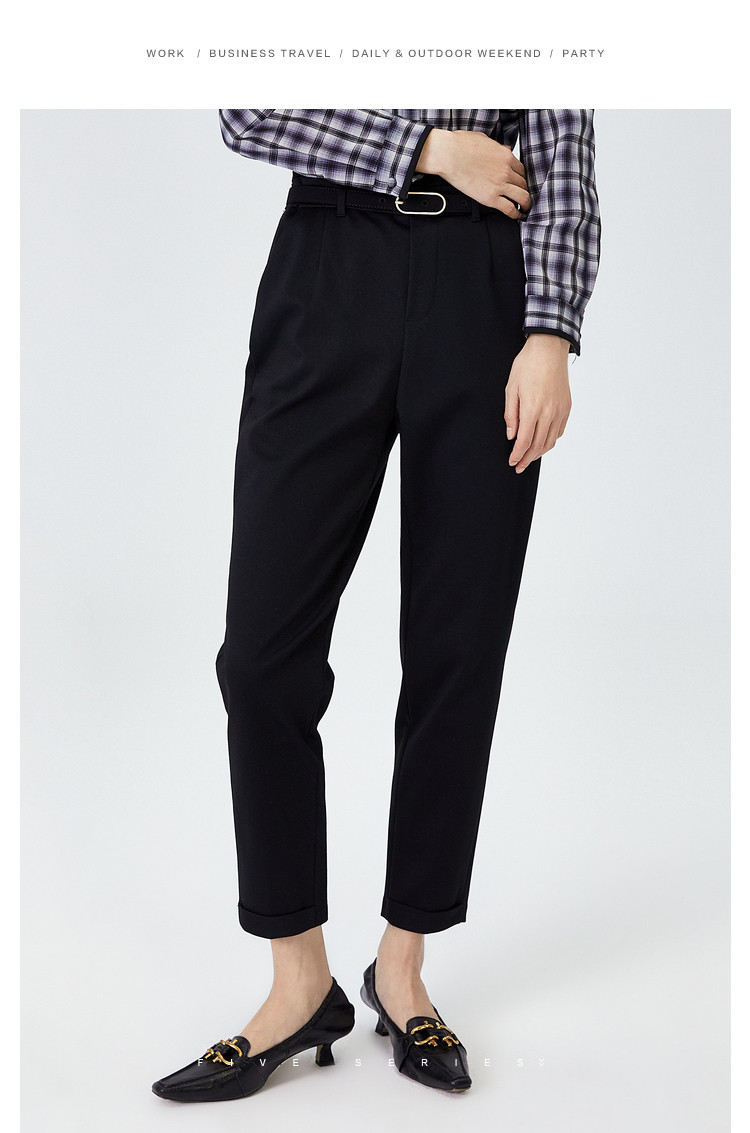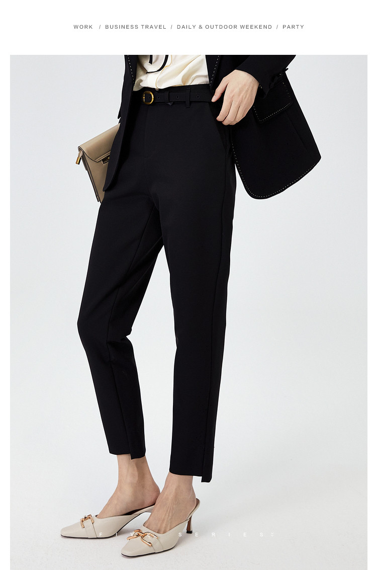 商品名称:【配送腰带】通勤黑色休闲裤女职业简约显瘦百搭垂感烟管裤 031171