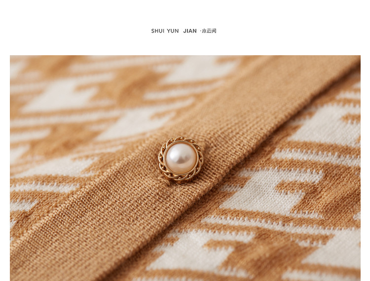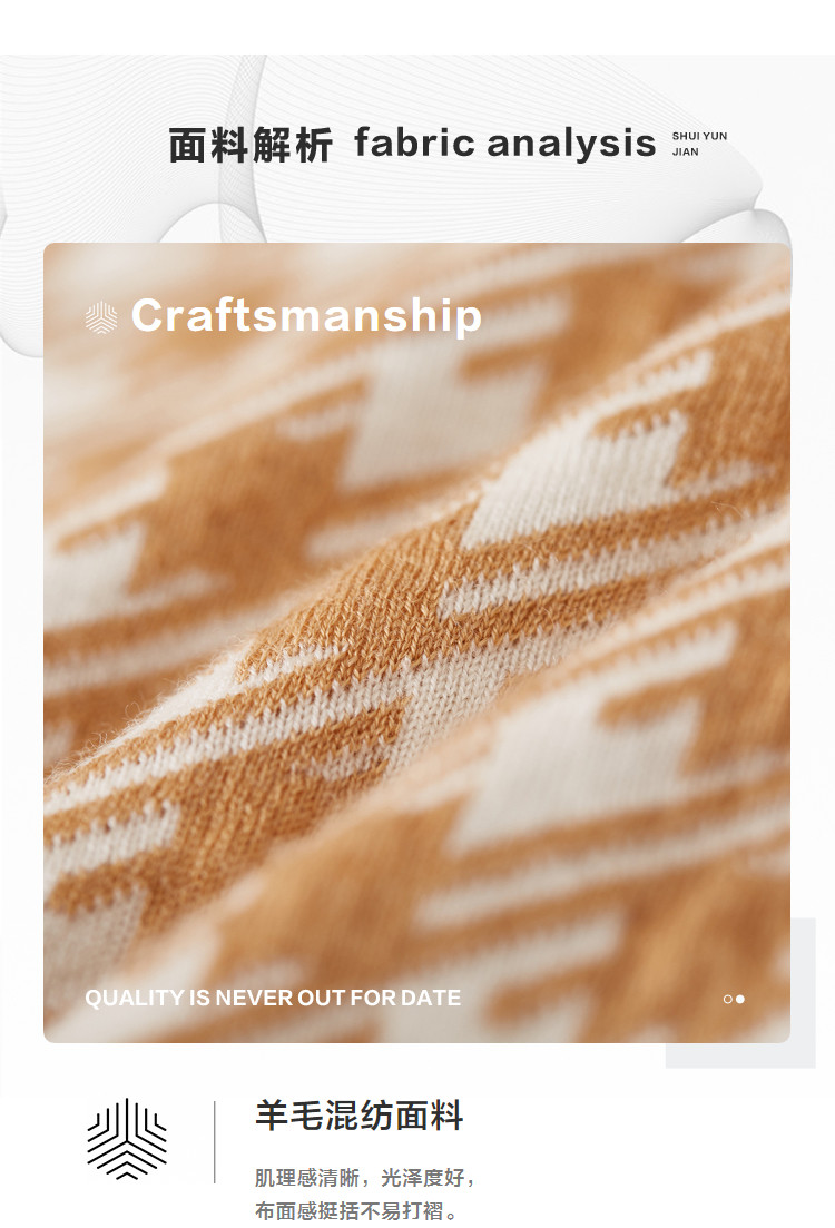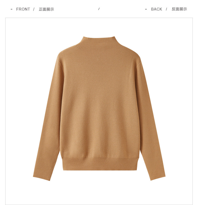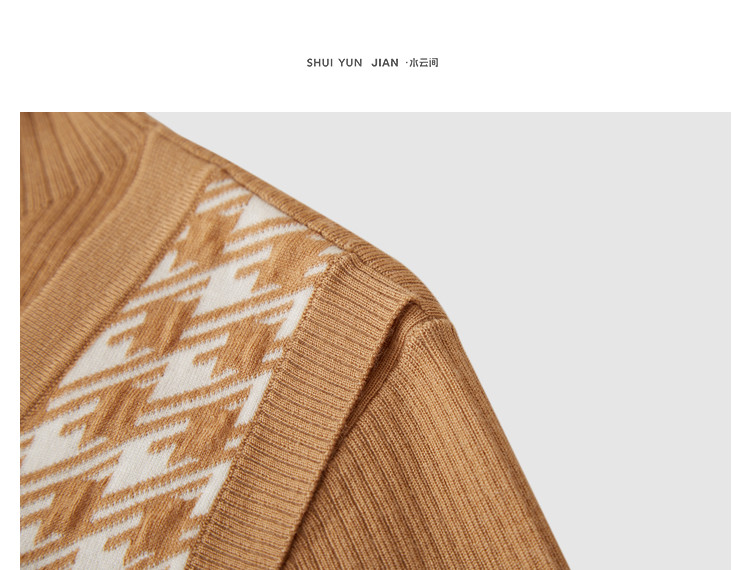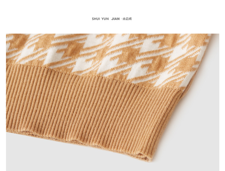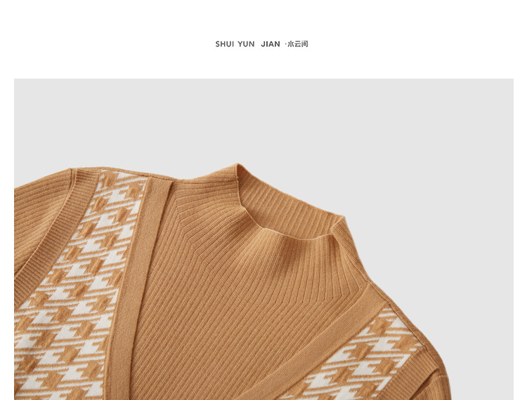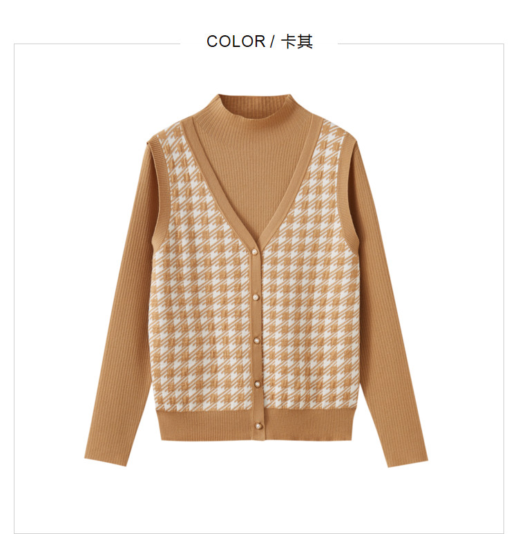 商品名称:卡其色格纹半高领毛衣女春秋设计感减龄拼接假两件针织衫上衣女 919299
