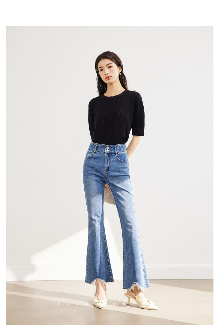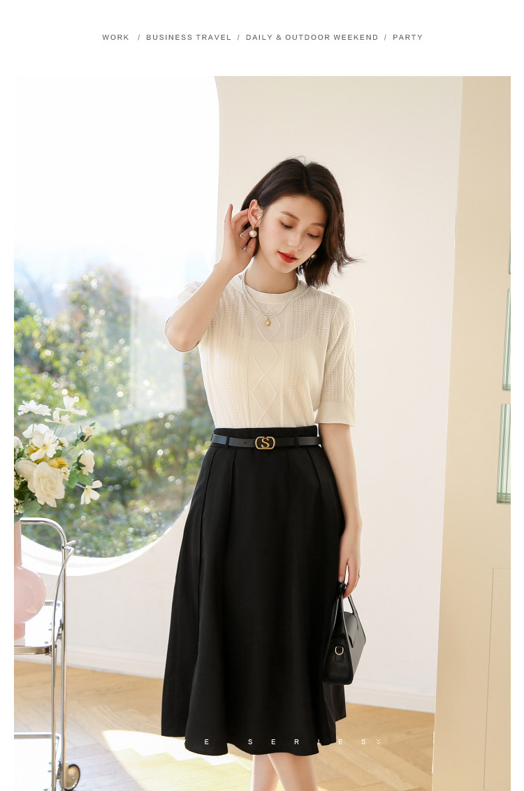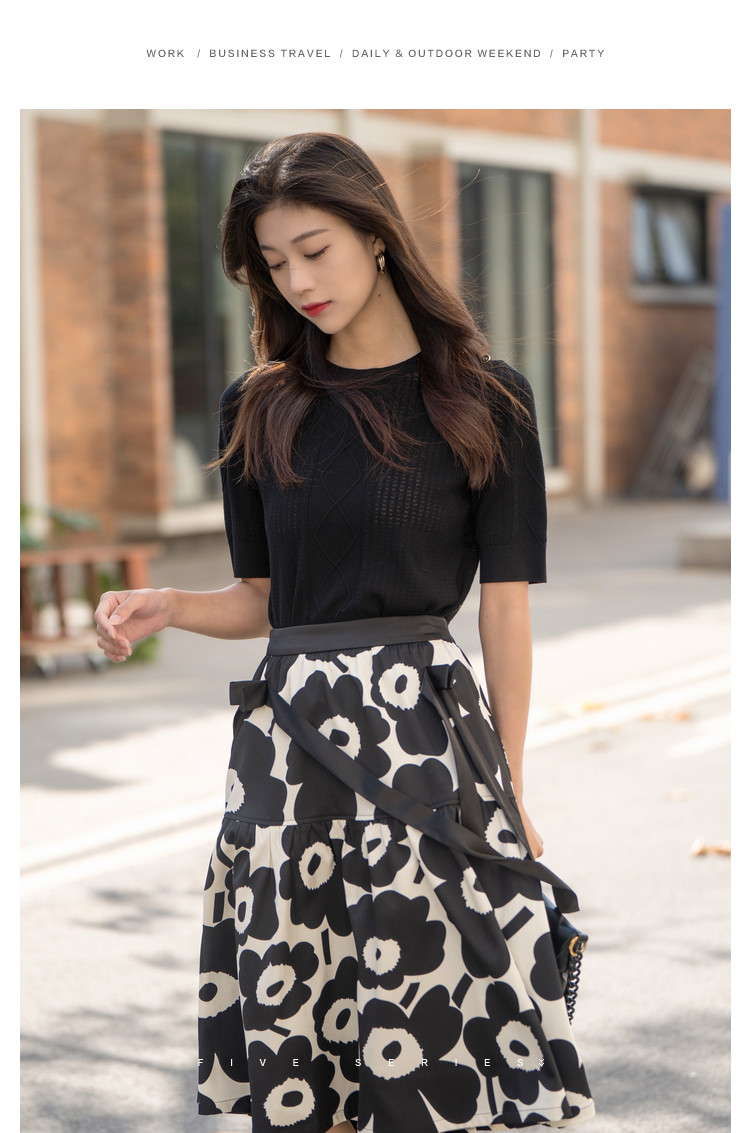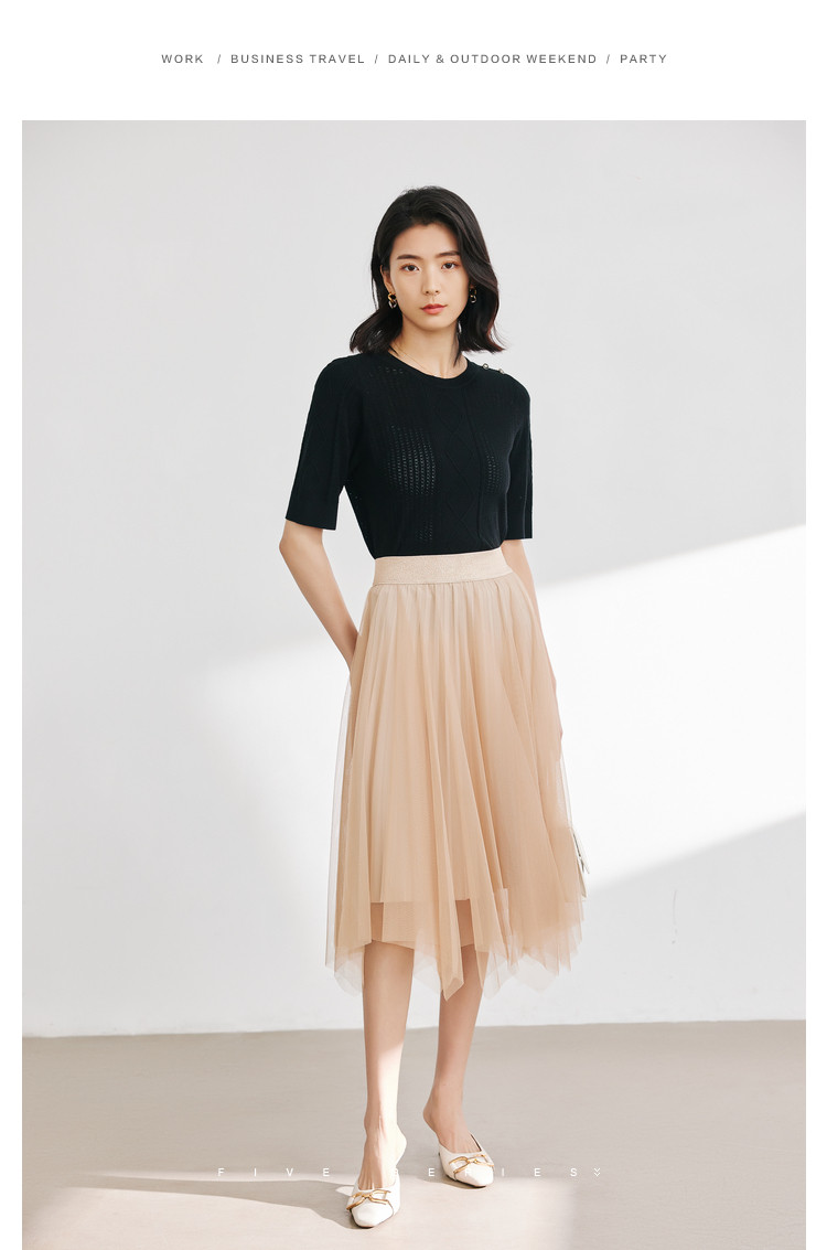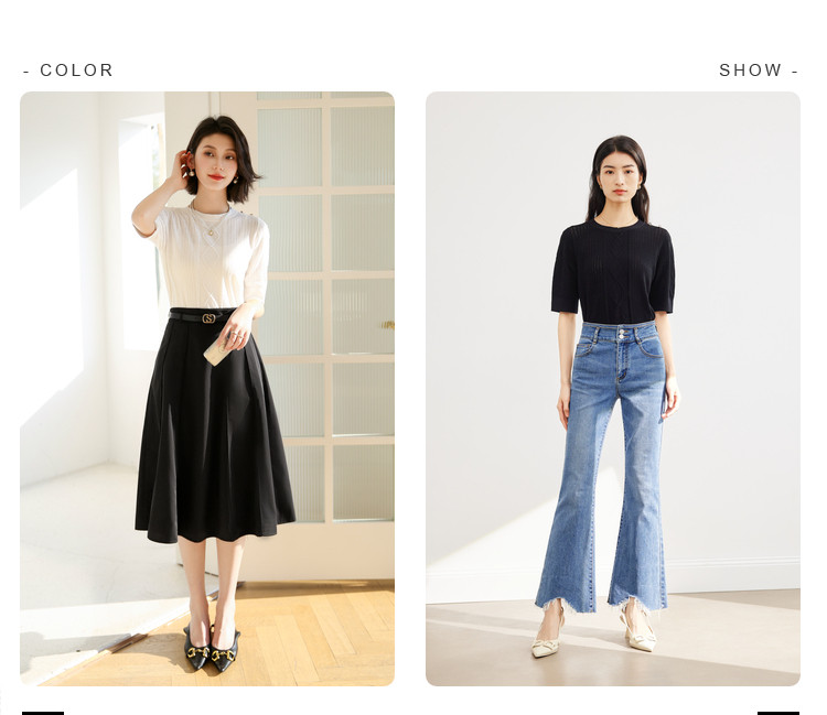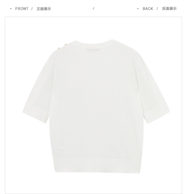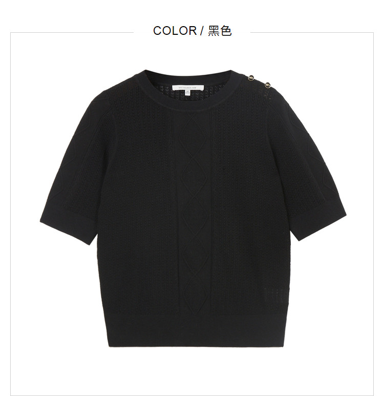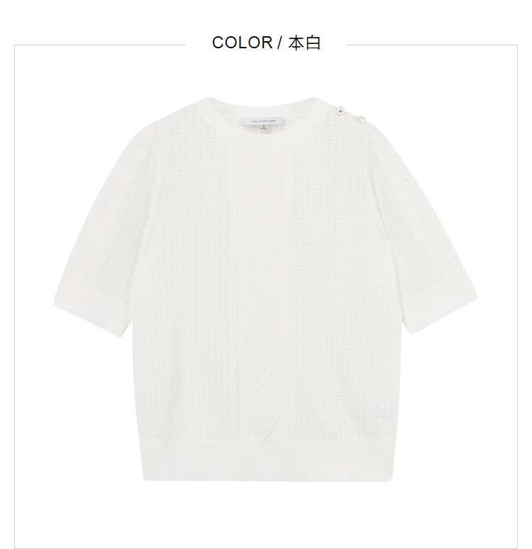 商品名称:五分袖圆领针织衫女夏款显瘦百搭镂空设计感上衣女 599875
