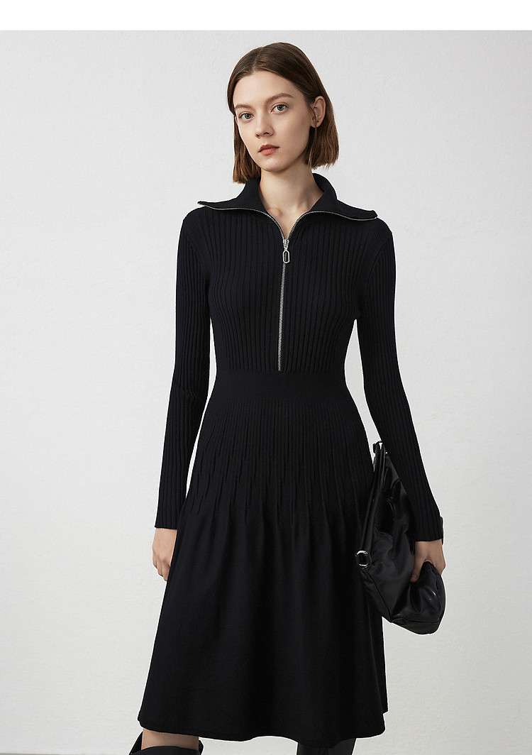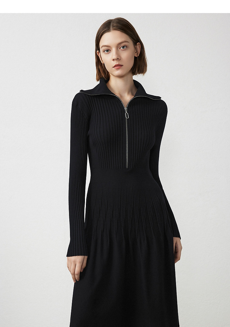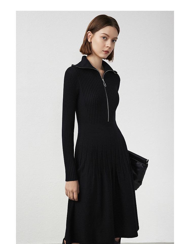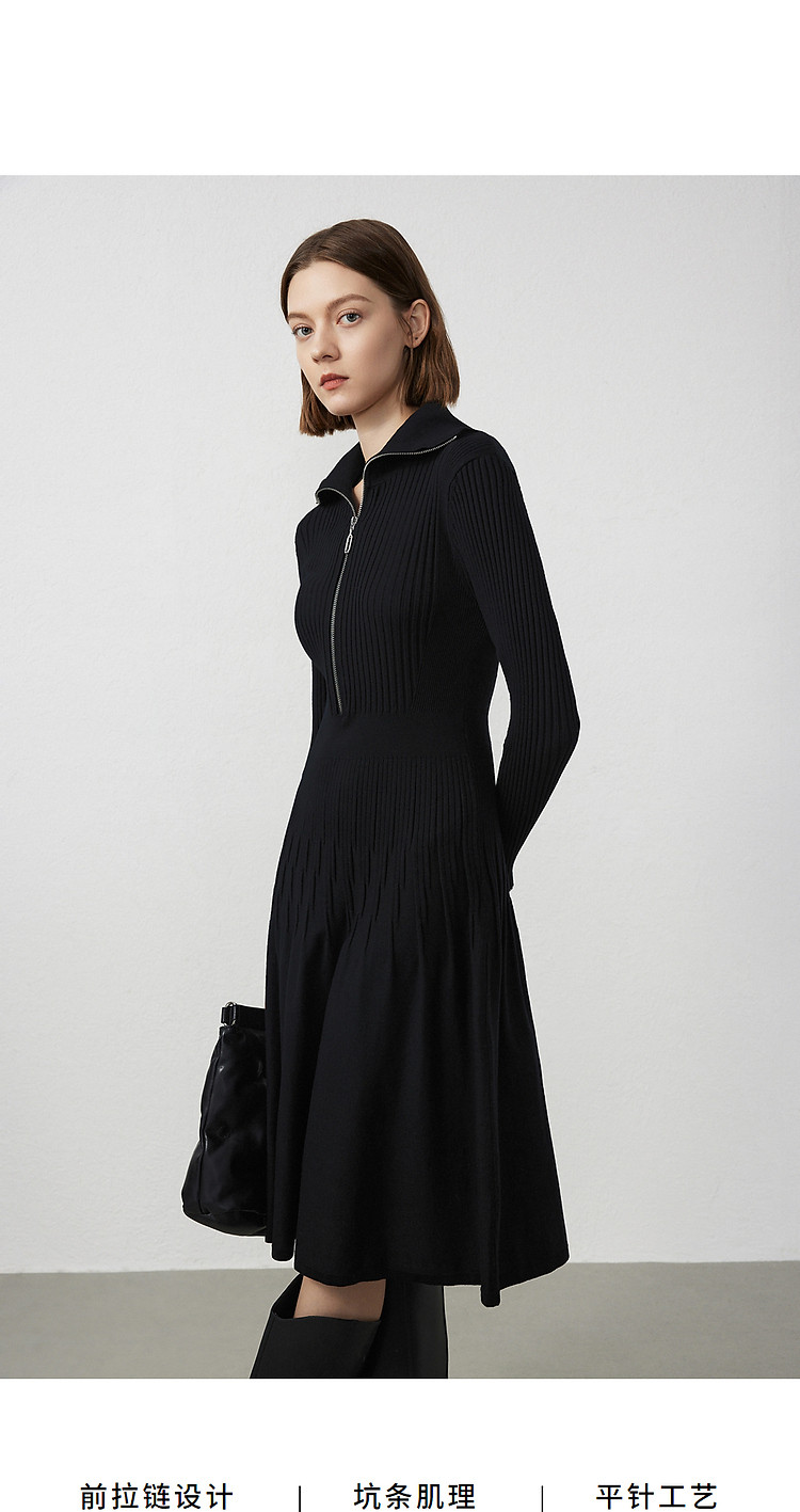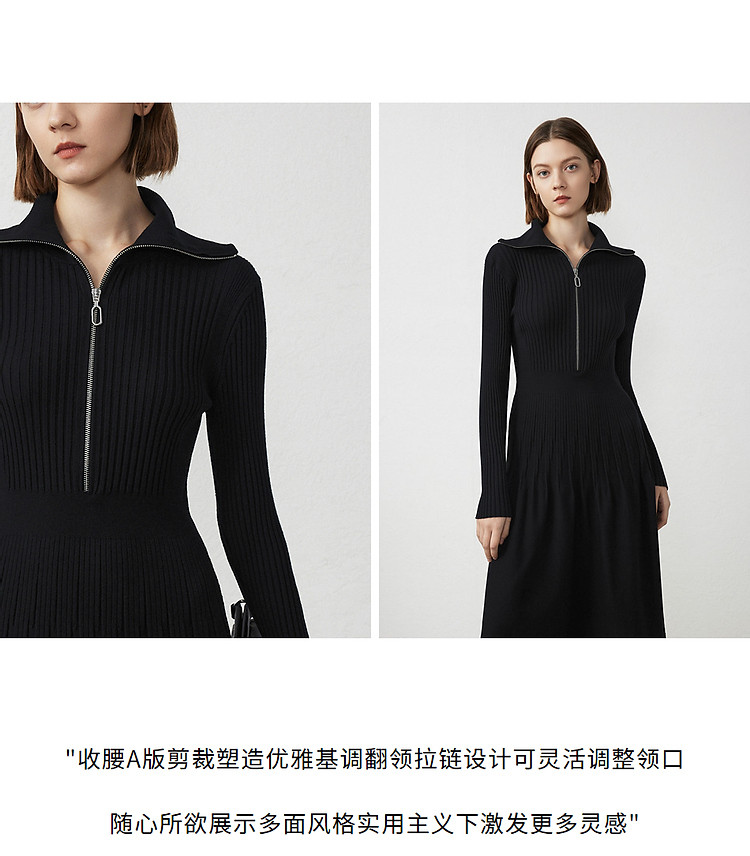 商品名称:法式翻领显瘦高级感针织连衣裙气质小黑裙春秋季 526809