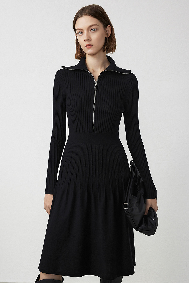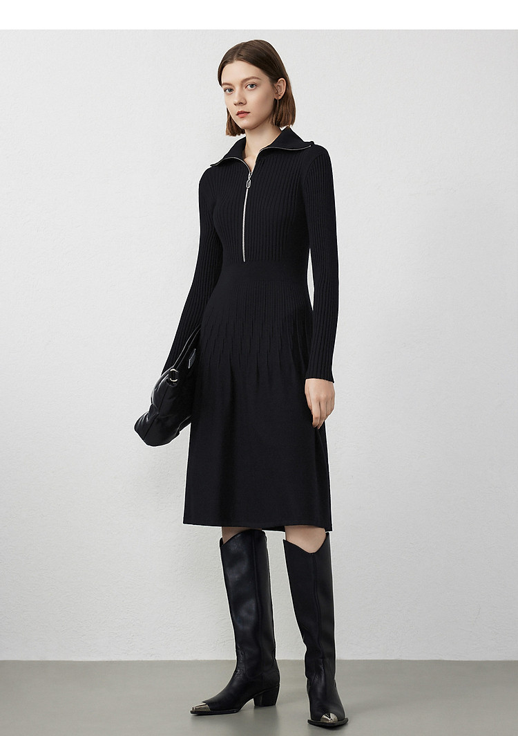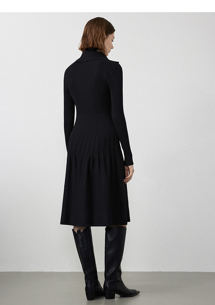 法式翻领显瘦高级感针织连衣裙气质小黑裙春秋季 526809
