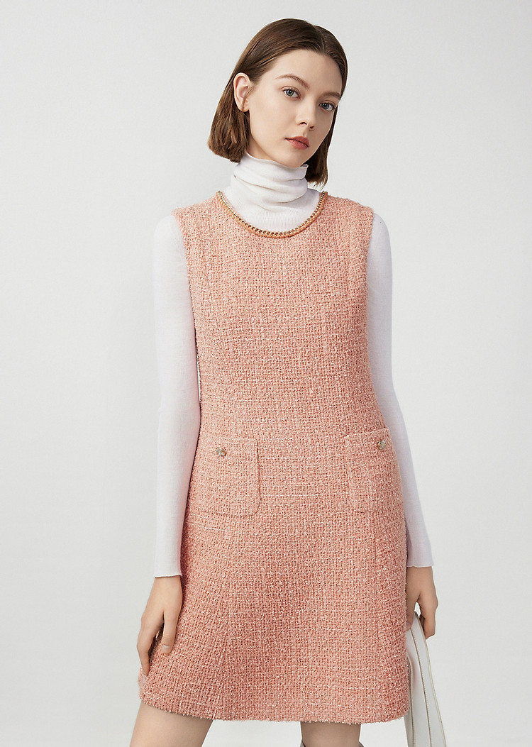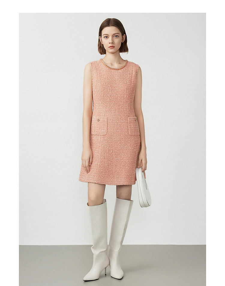 法式粗花呢小香风无袖连衣裙高级感通勤裙子女春秋款 208921