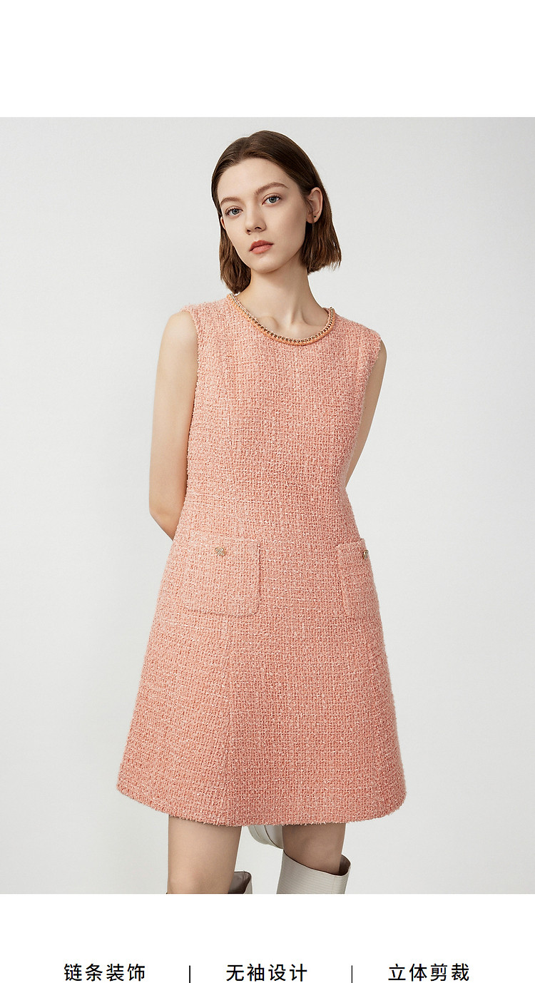 商品名称:法式粗花呢小香风无袖连衣裙高级感通勤裙子女春秋款 208921