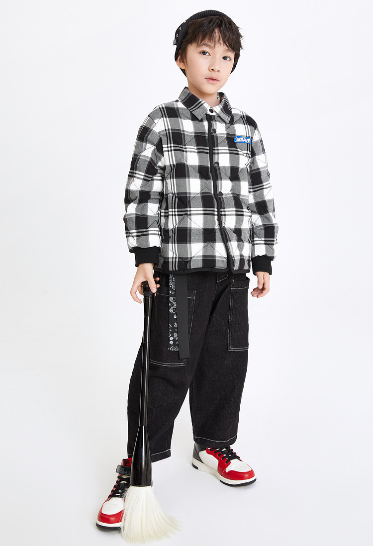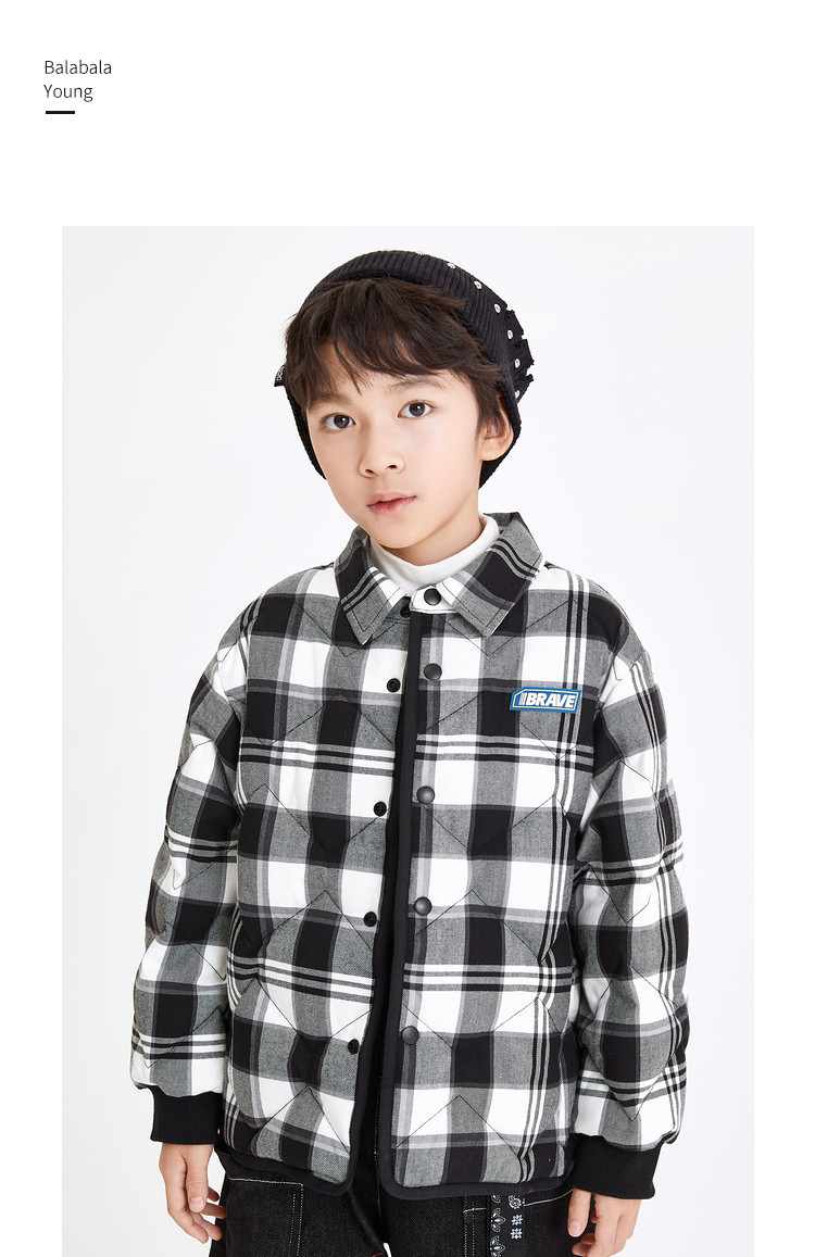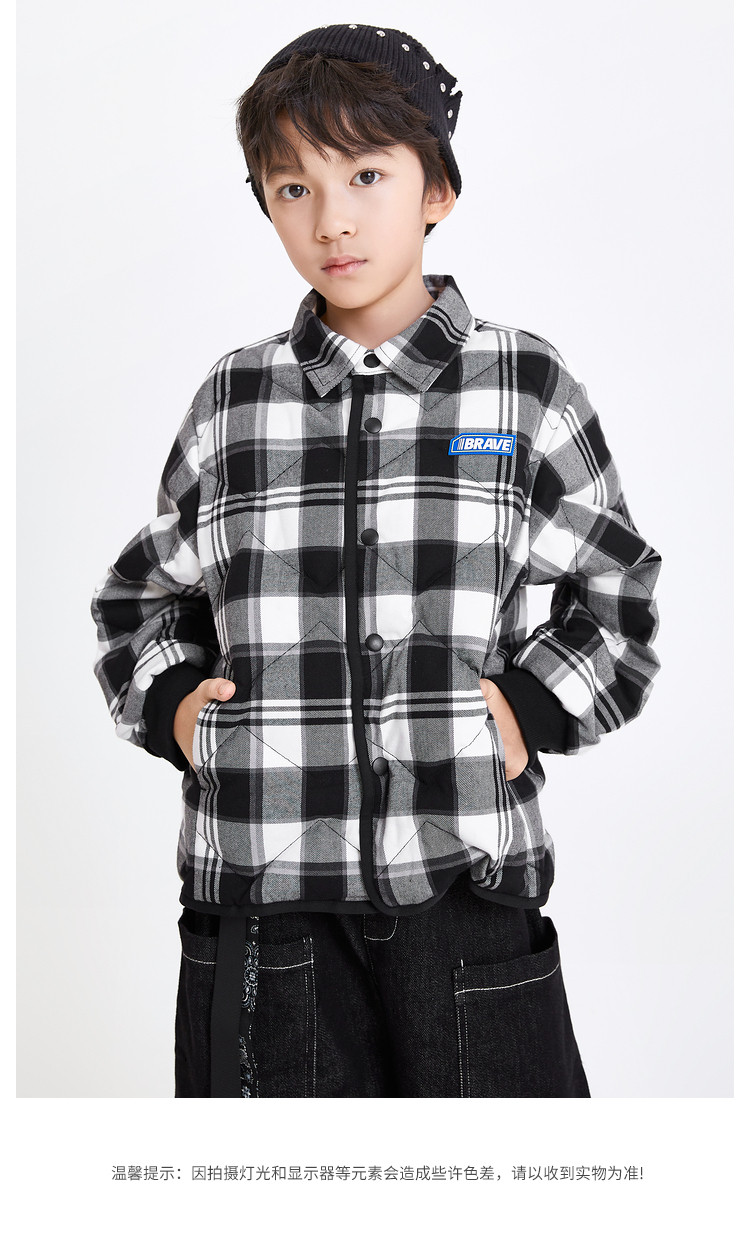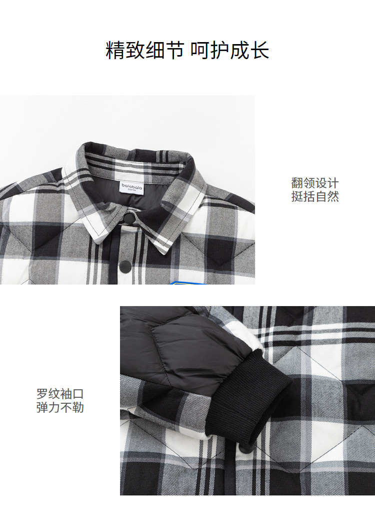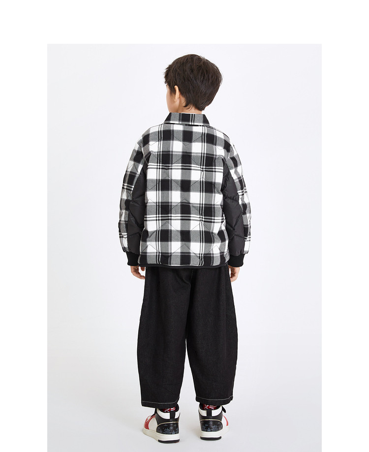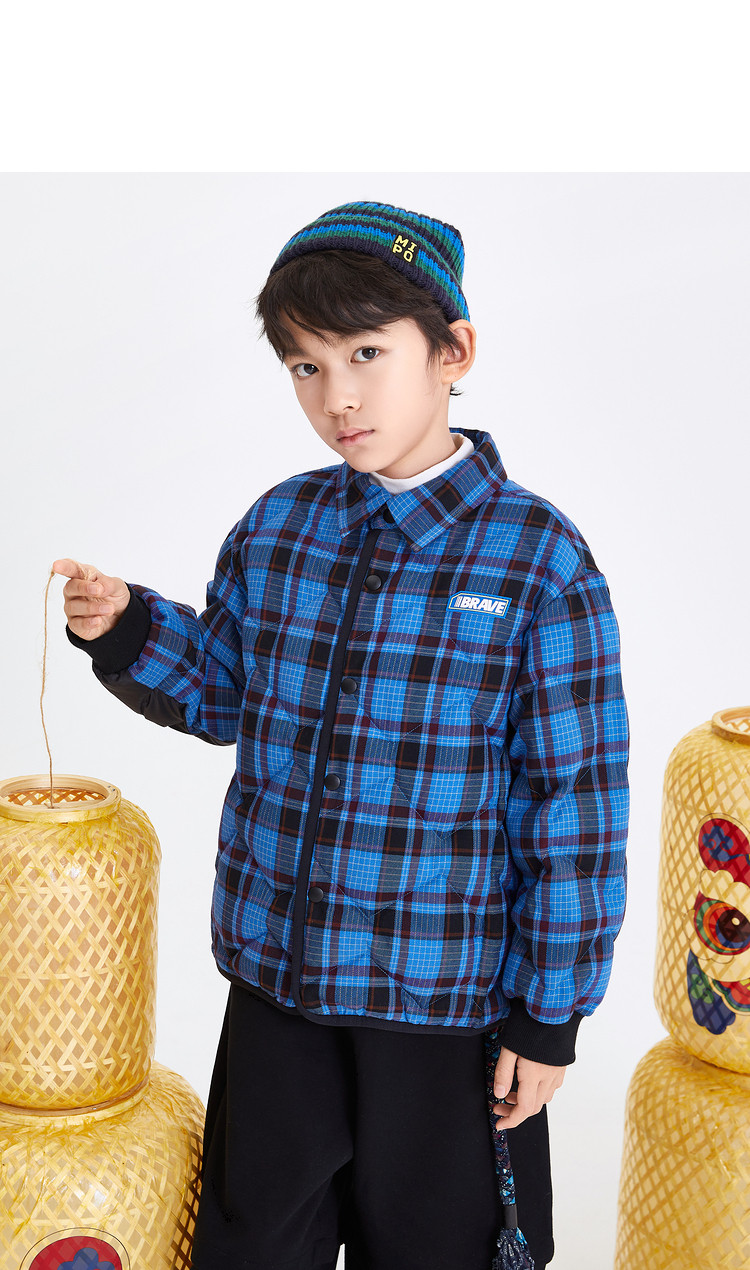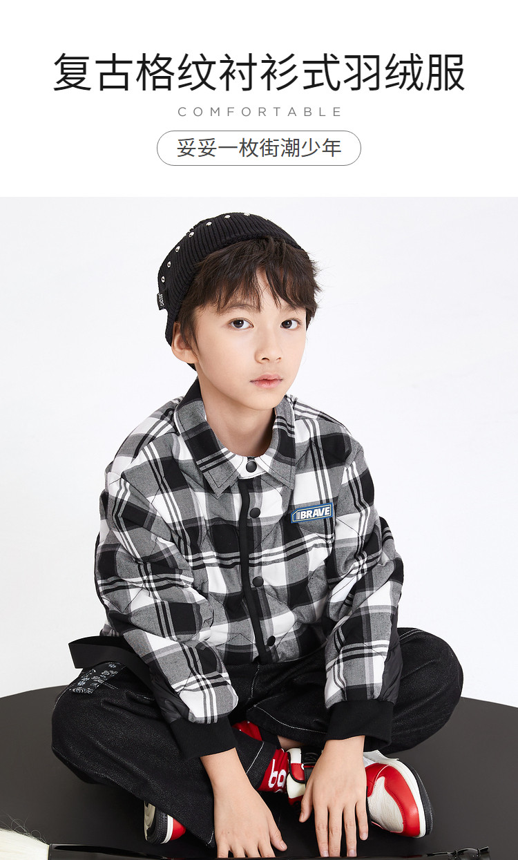 商品名称:复古格纹衫式儿童羽绒服男童女童春秋冬格纹衬衫外套衣服宝宝童装 759813